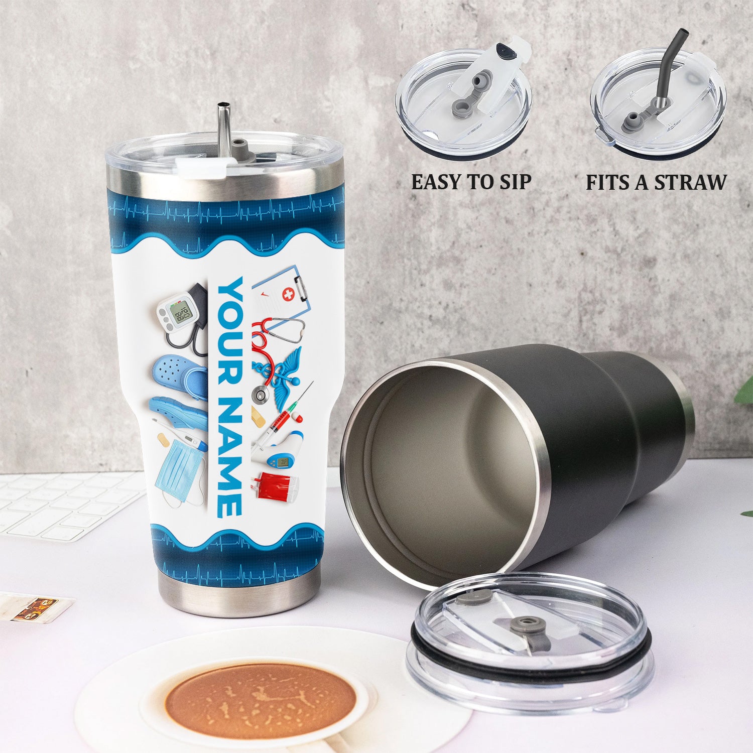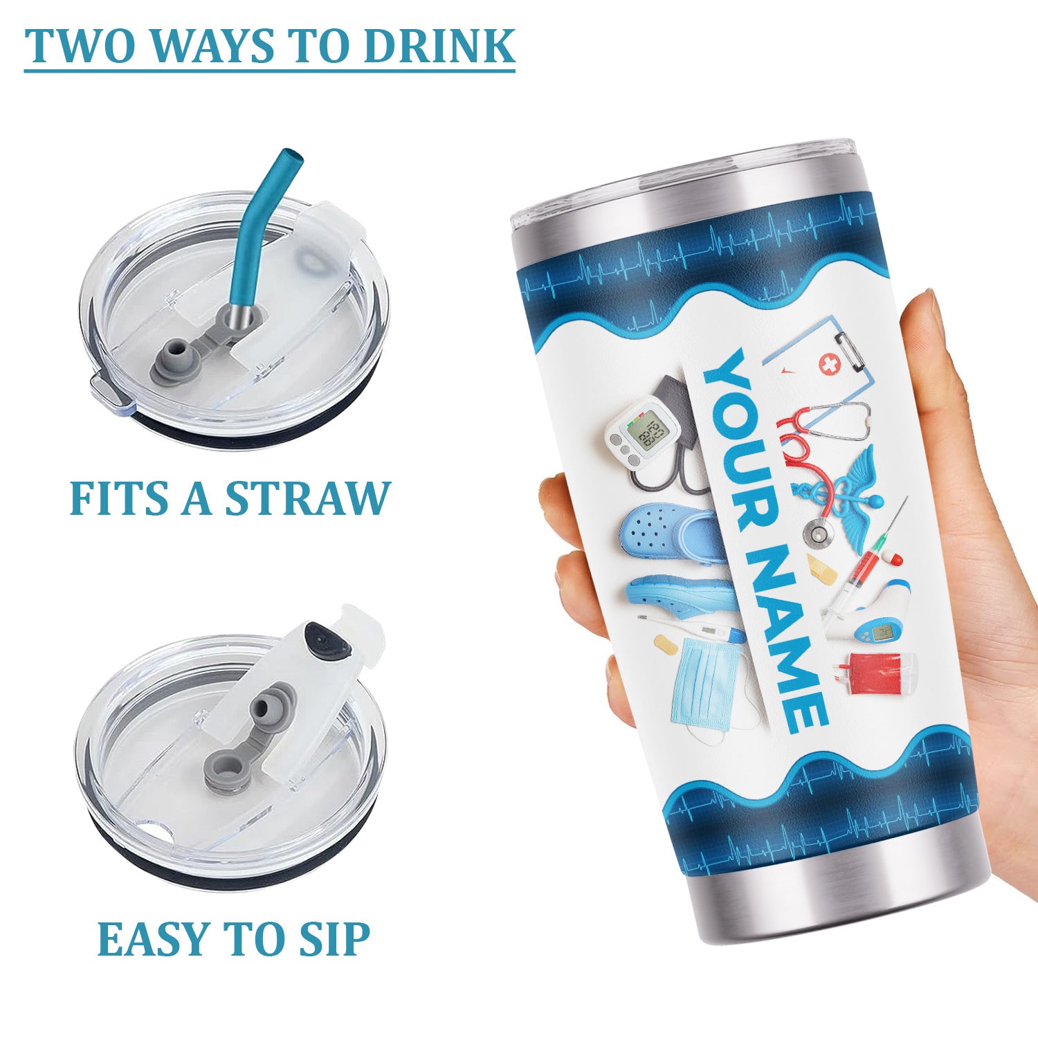 - Premium Stainless Steel Construction: Crafted from premium stainless steel, this tumbler is built to last through even the busiest hospital shifts. Durable, rust-resistant, and easy to clean, it's made for everyday use by hardworking nurses.