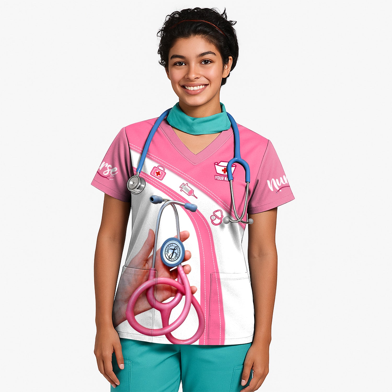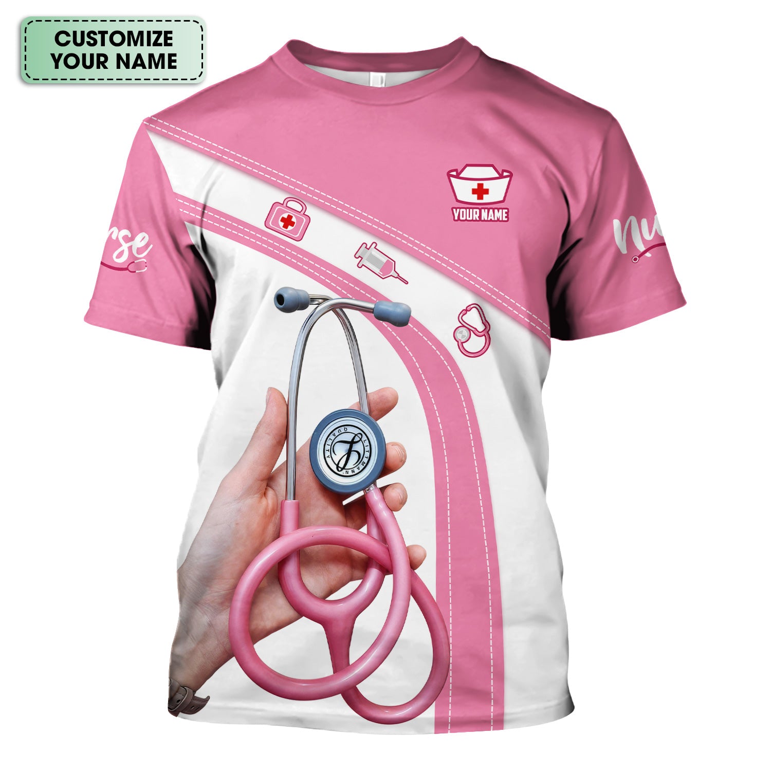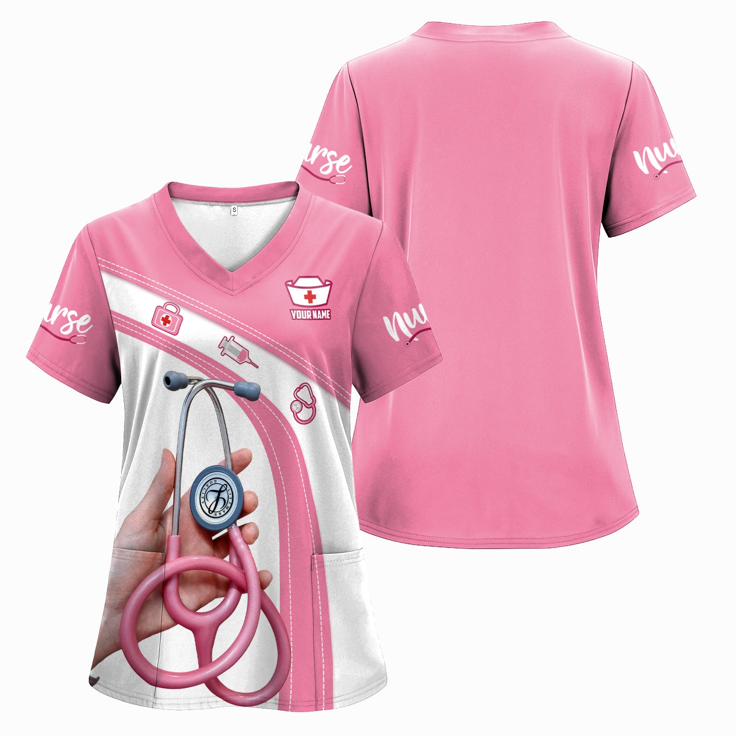 Personalized Nurse Shirt for Women - Pink Stethoscope Gift for RN CNA LPN - Custom Name Medical Uniform Tee