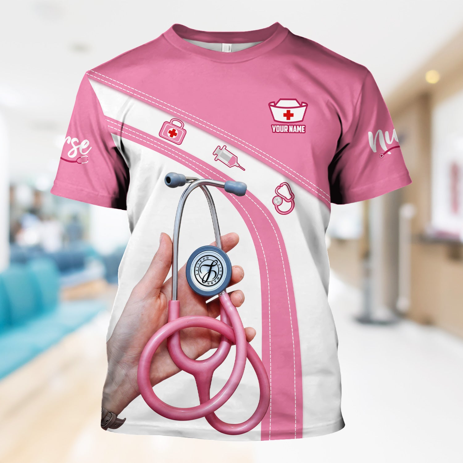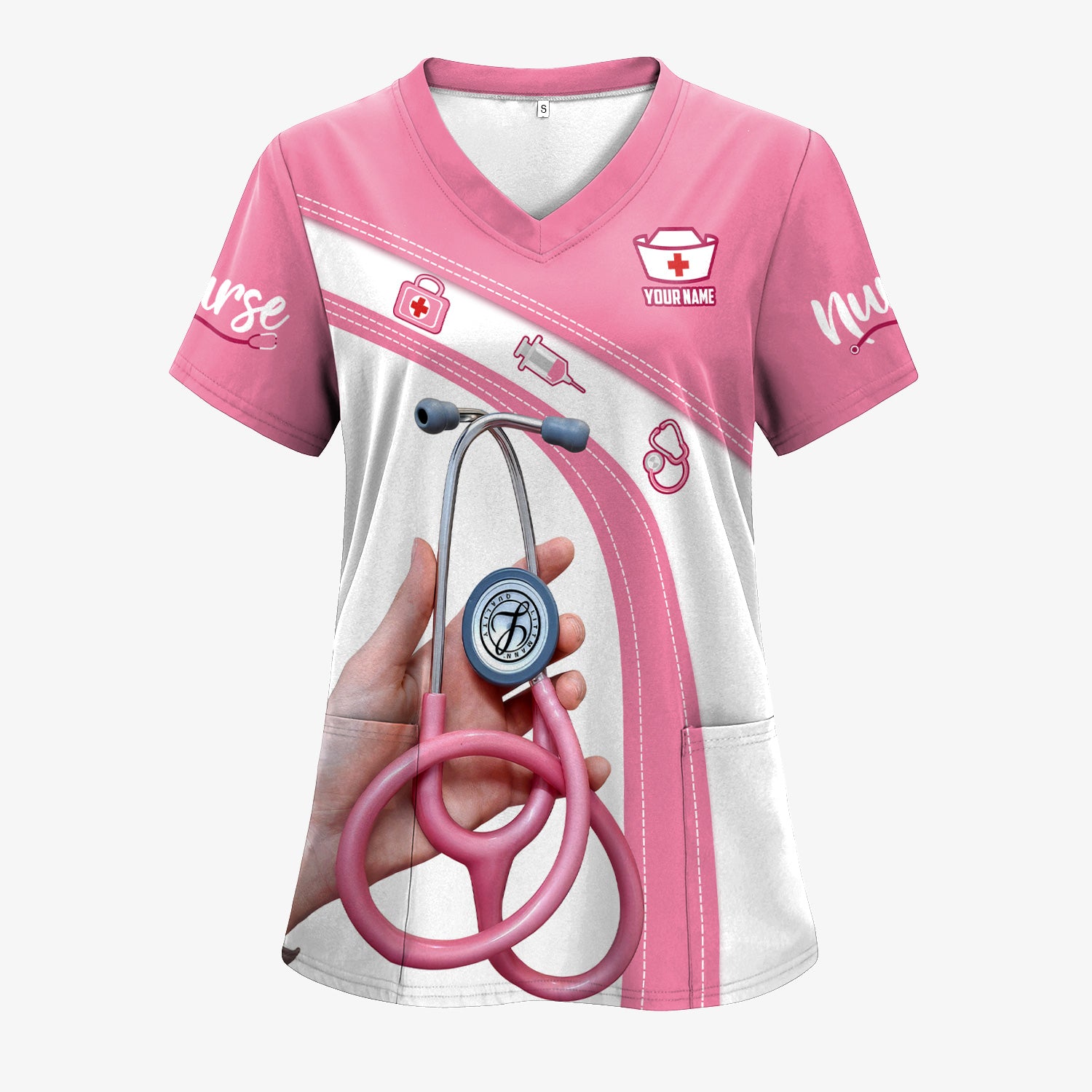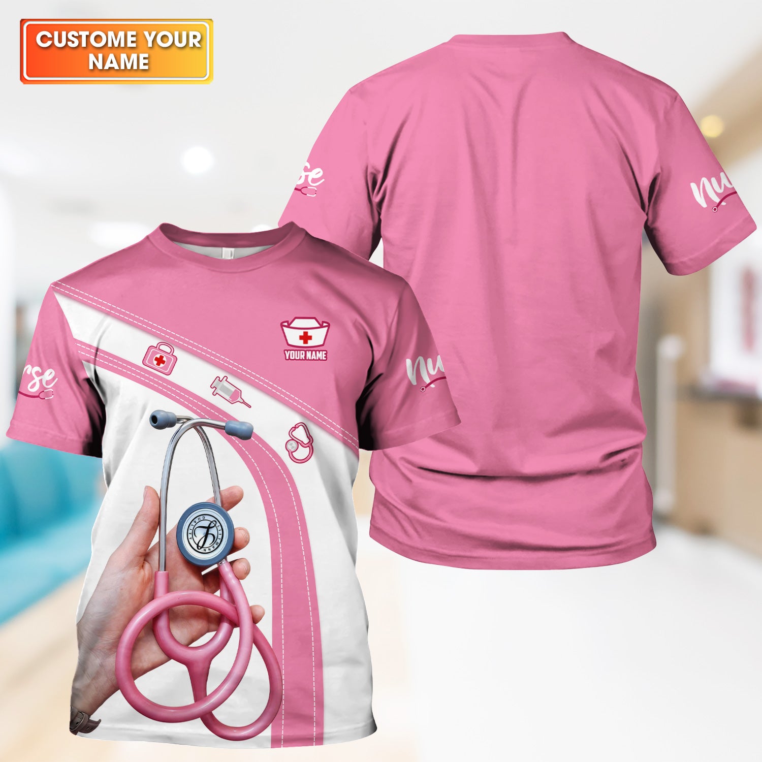 Personalized Nurse Shirt for Women - Pink Stethoscope Gift for RN CNA LPN - Custom Name Medical Uniform Tee