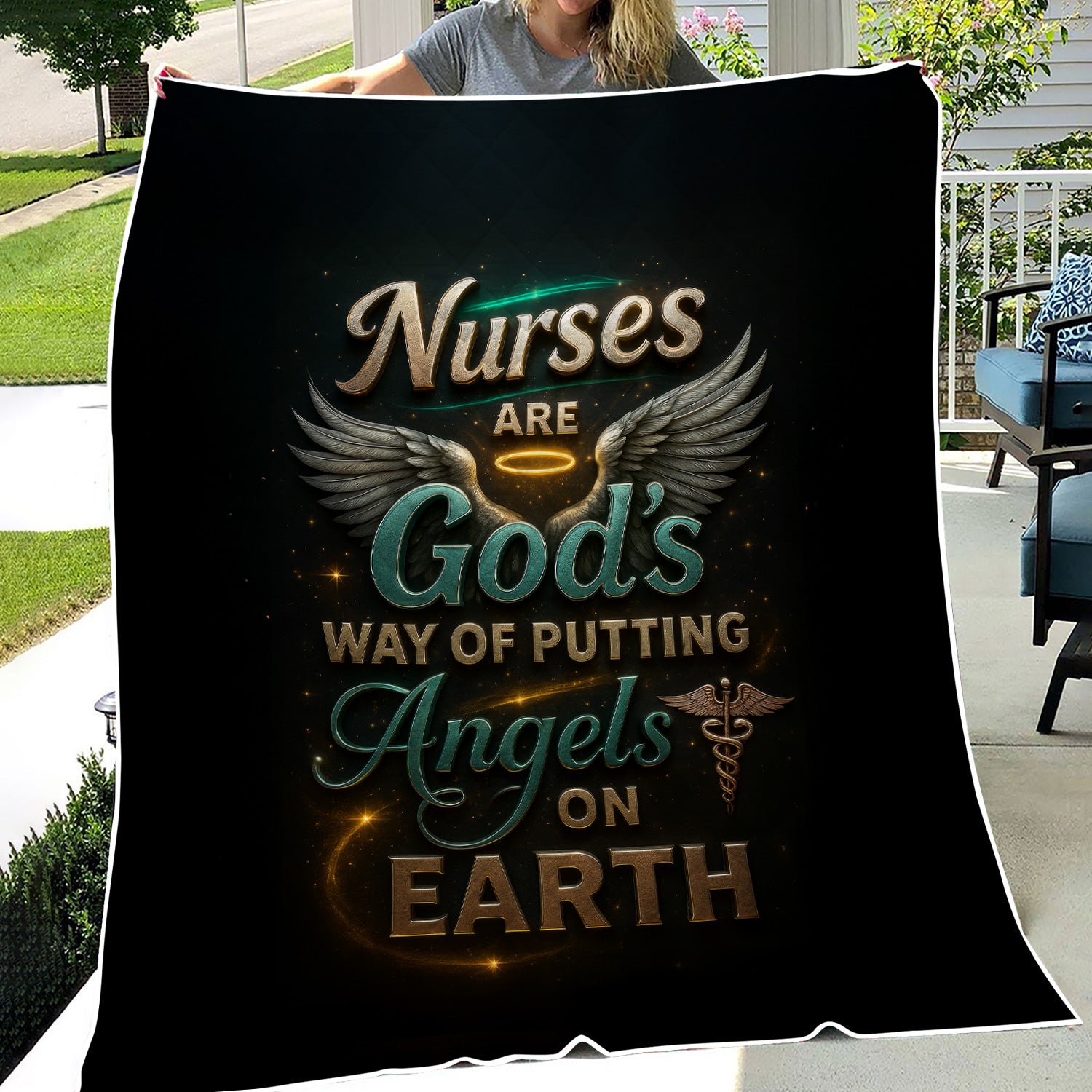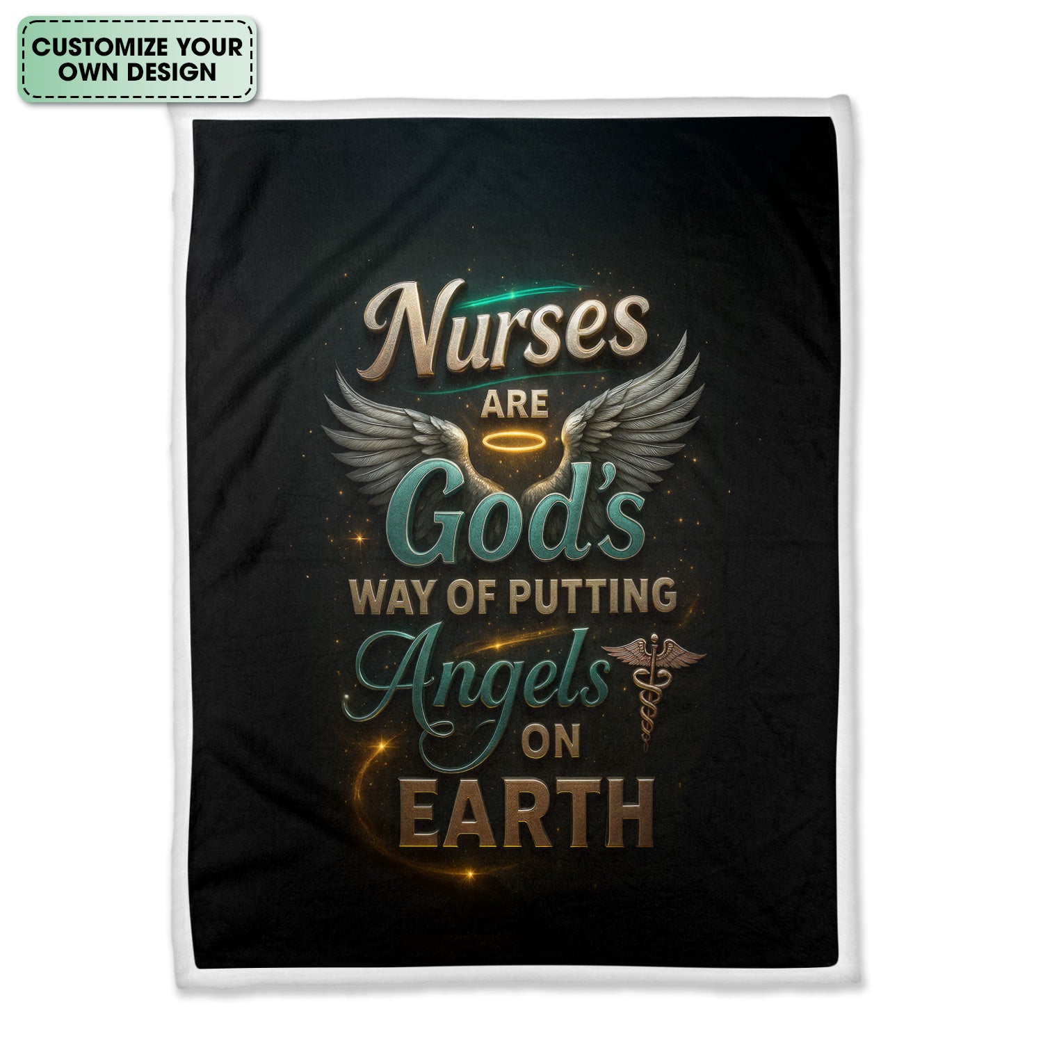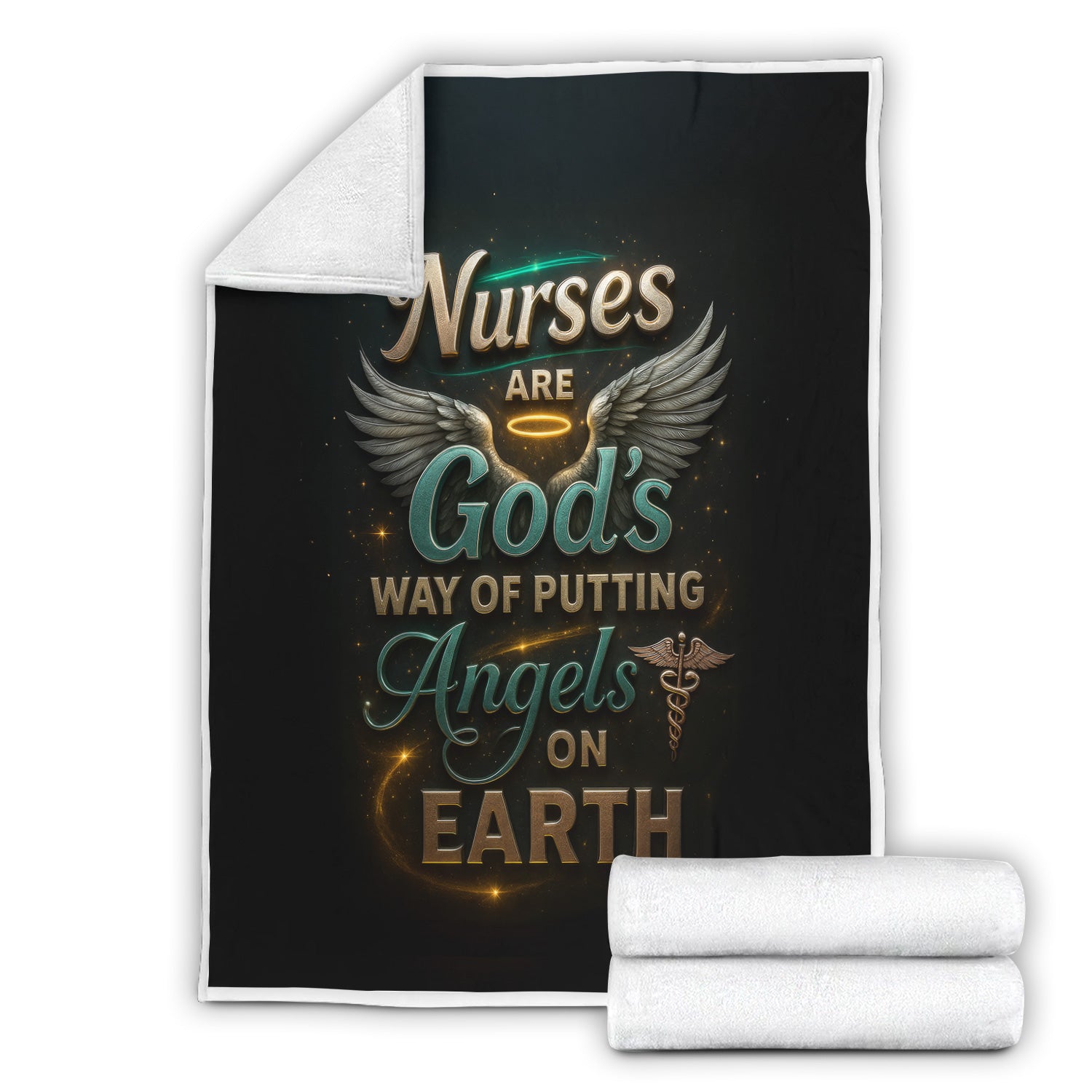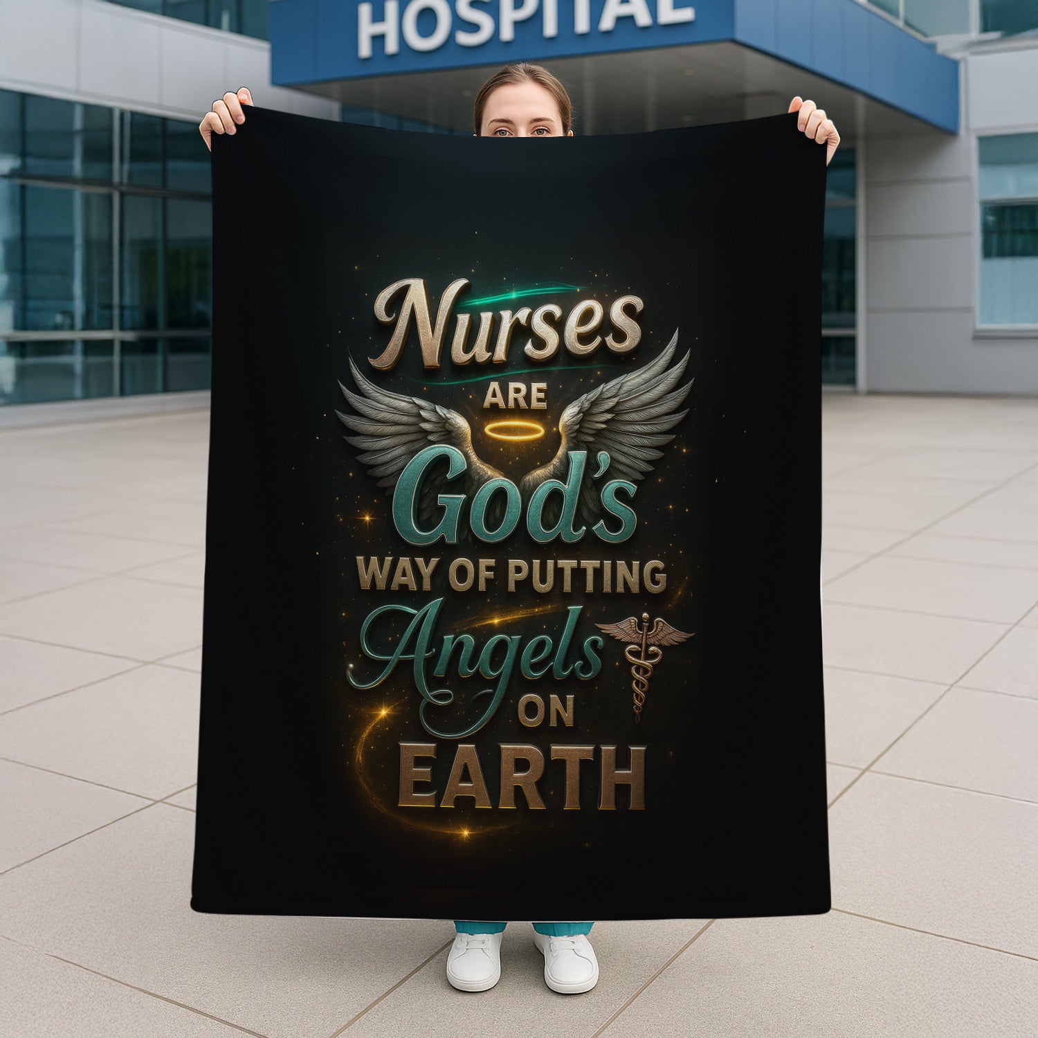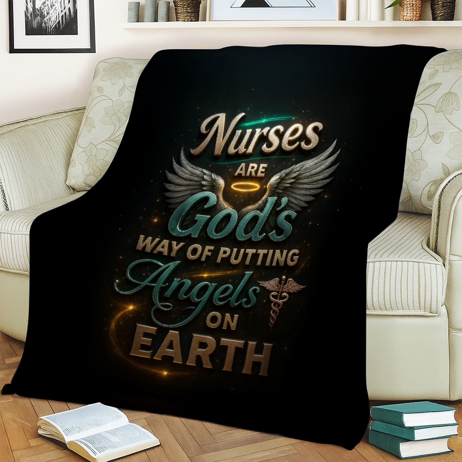 Personalized Religious Nurse Throw Blanket - Angels on Earth Quote - Inspirational Gift for RN, CNA, LPN