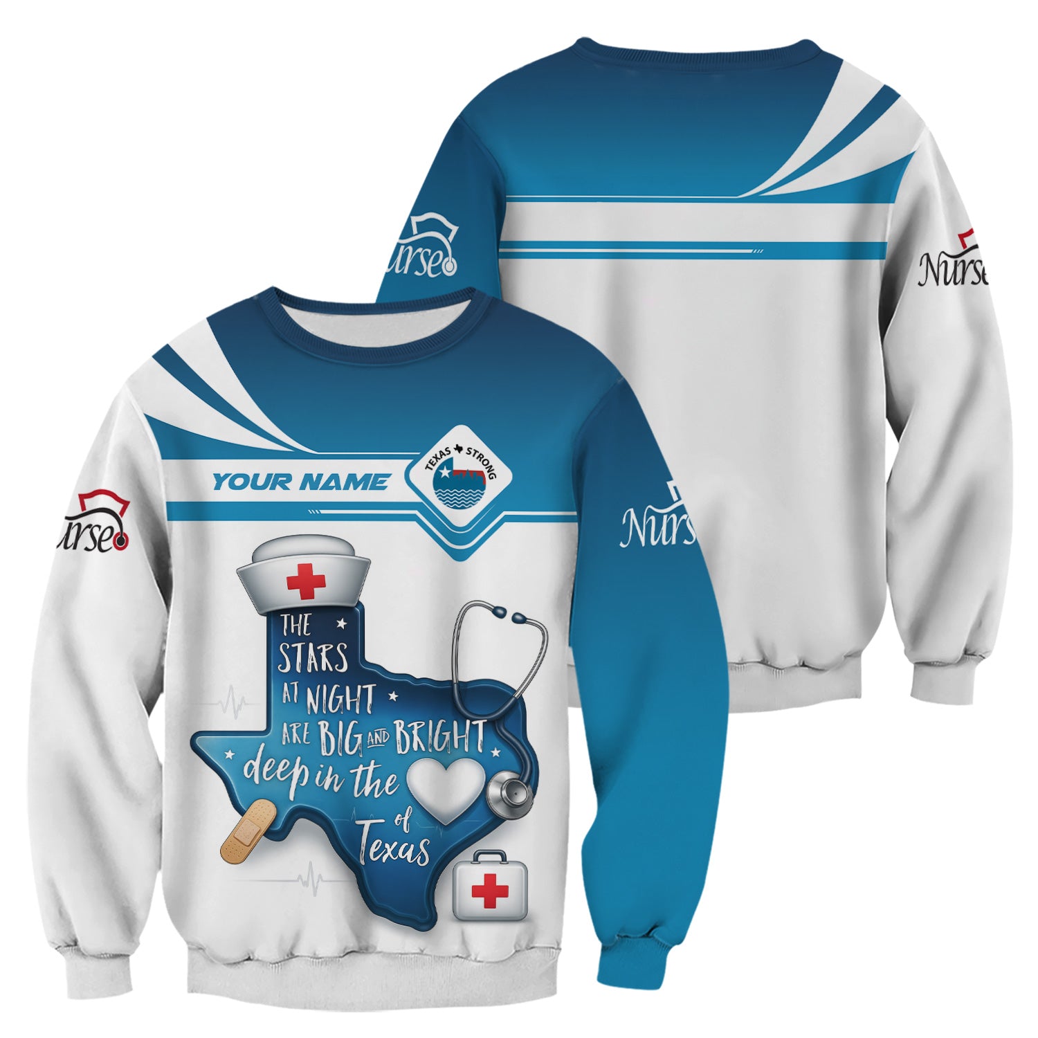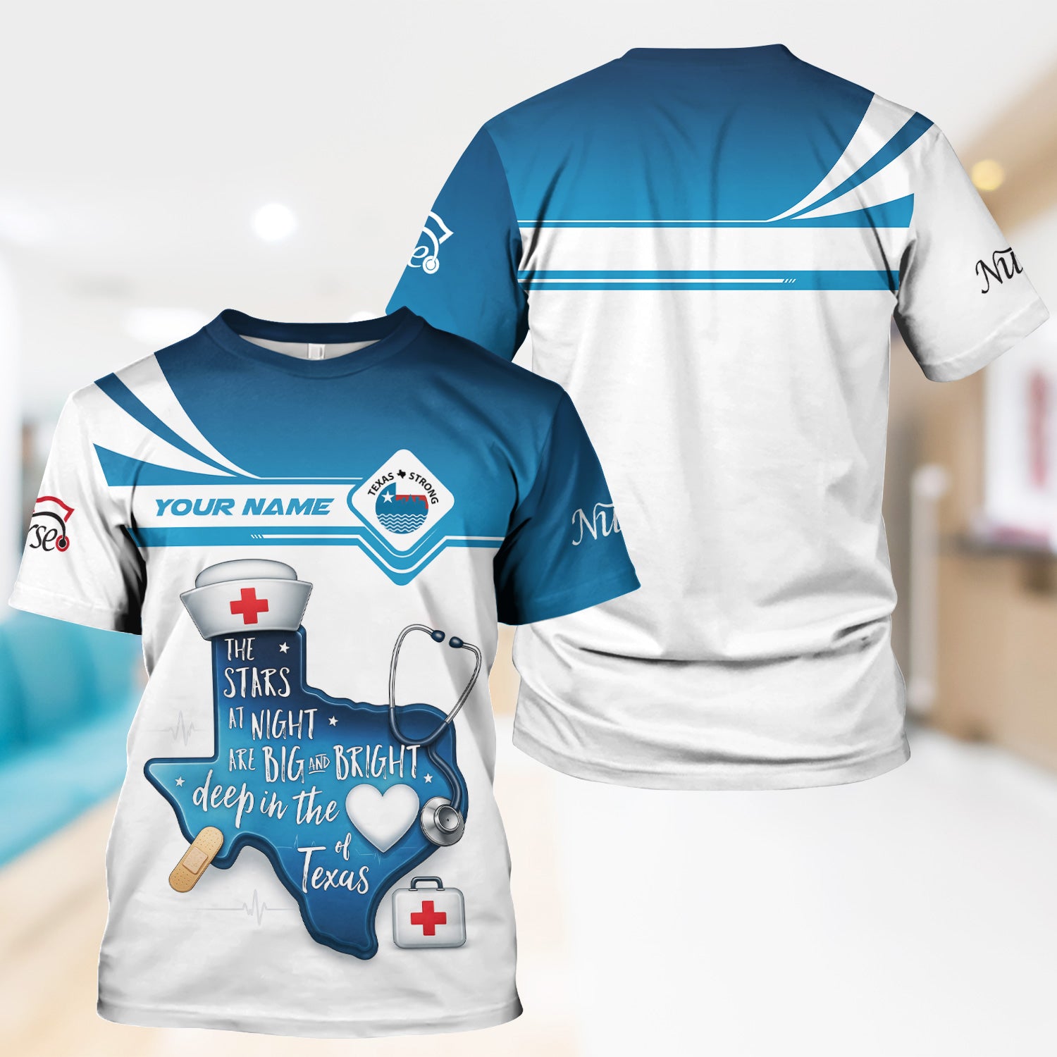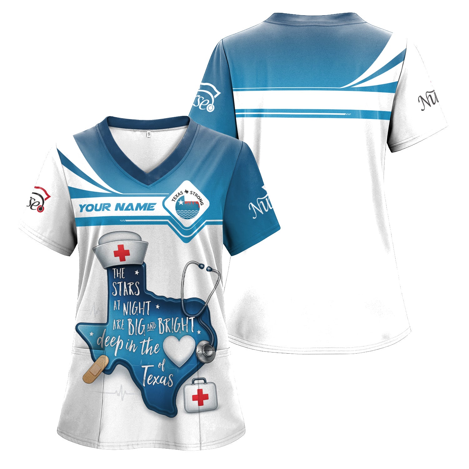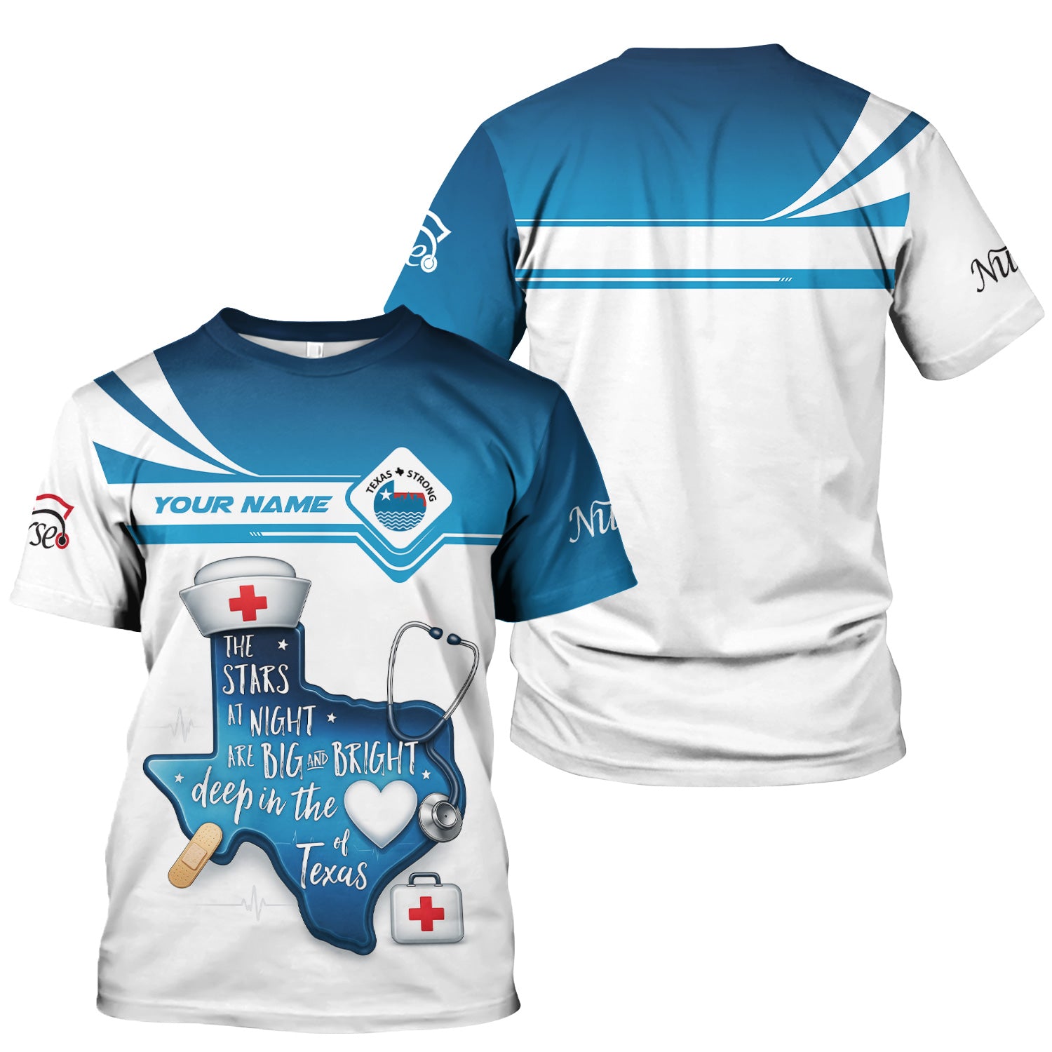 Personalized Texas Nurse T-shirt - Custom Name & Stethoscope Design - Inspirational 'Stars at Night' Quote - Perfect for RN, CNA, LPN Healthcare Workers