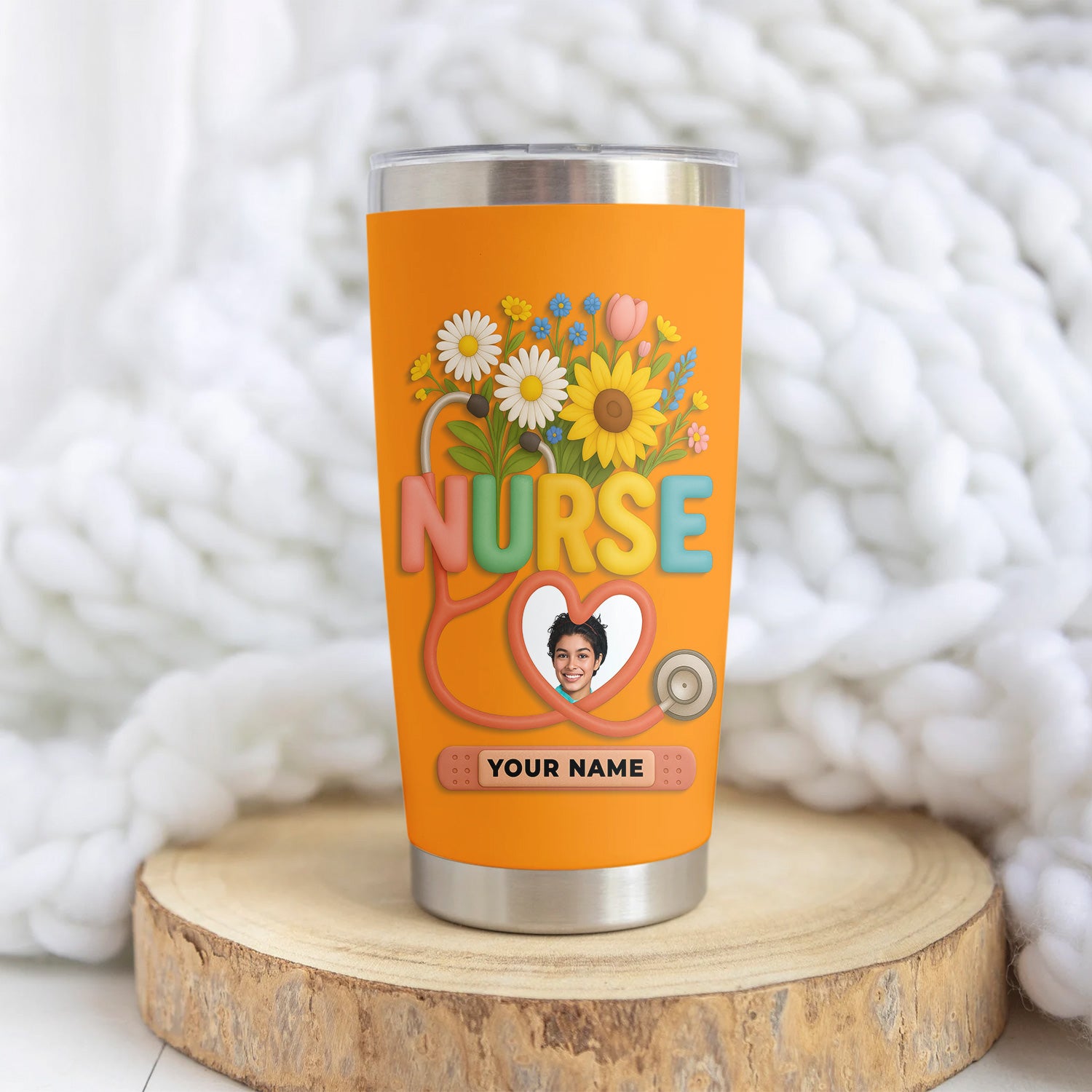 Personalized Thank You Nurse Tumbler - Nursing Is a Work of Heart with Floral Stethoscope Design - Meaningful Gift for RN CNA LPN