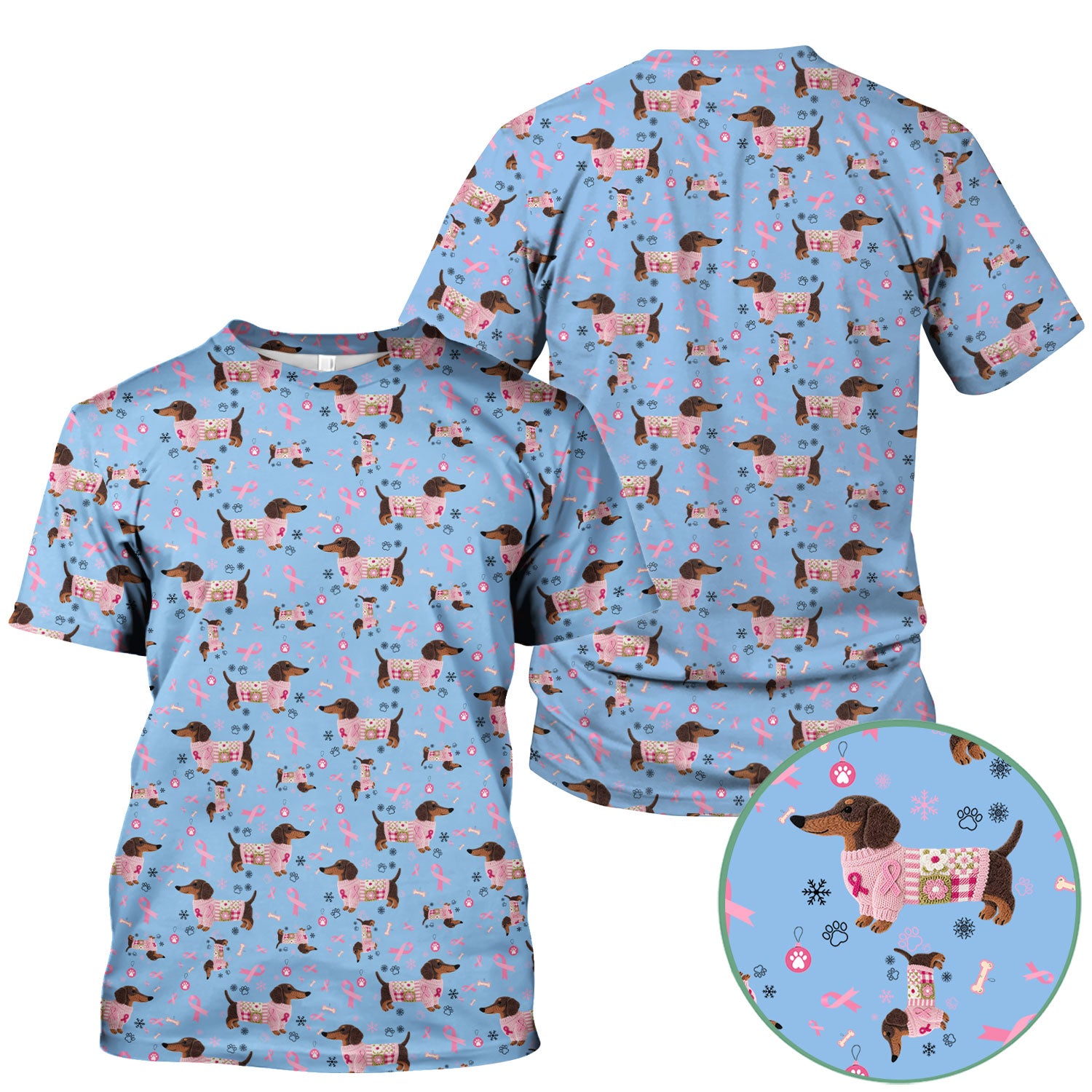 Pink Dachshund Breast Cancer Awareness Scrub Top - Puppy Dog Ribbon Nurse Shirt - Wiener Support Fight Cancer Medical Uniform Gift
