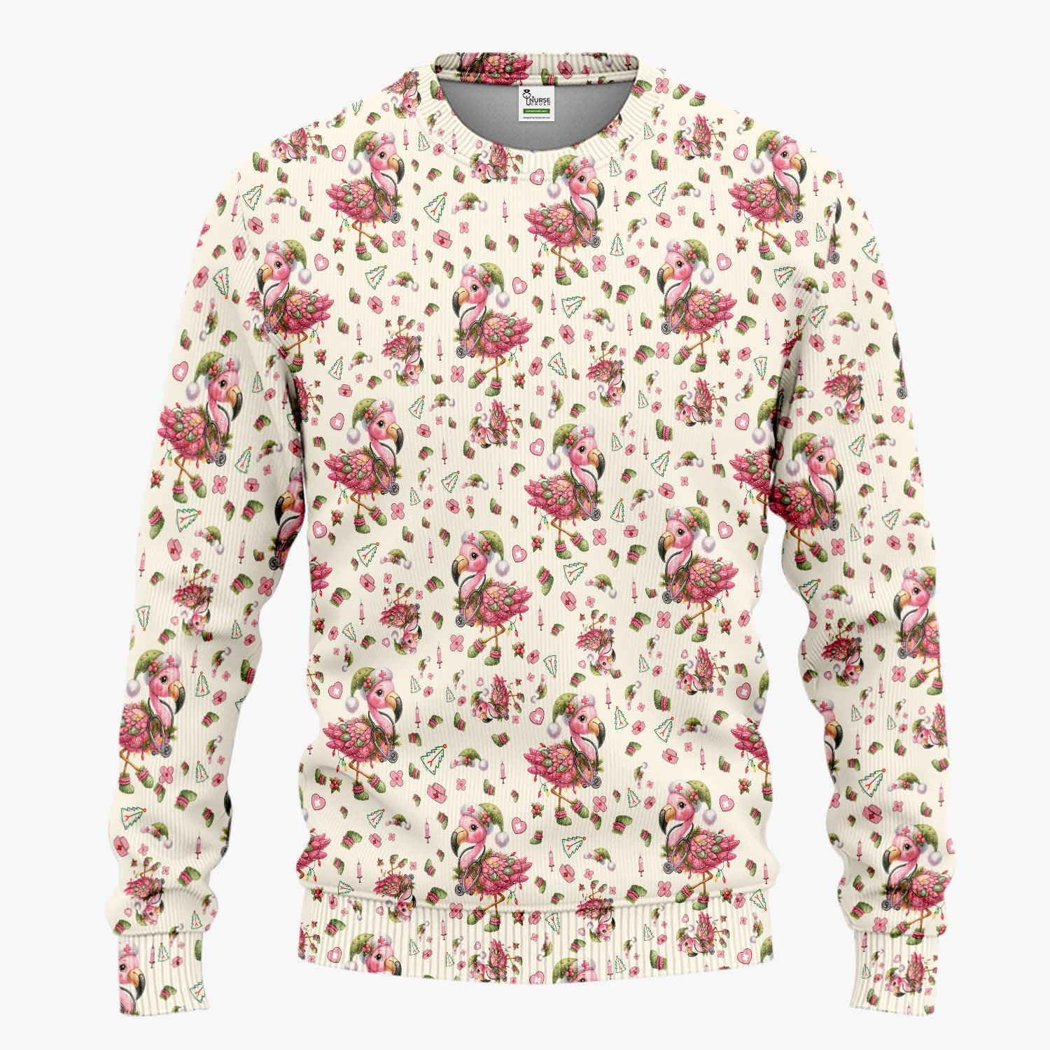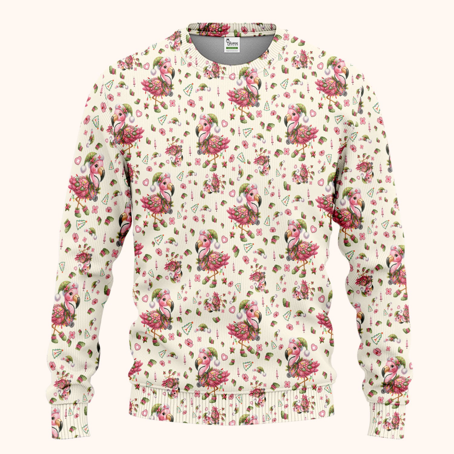 Pink Flamingo Christmas Scrub Set - Cute Flamingo Scrubs Pants and V Neck Top - Fun Christmas Medical Uniform