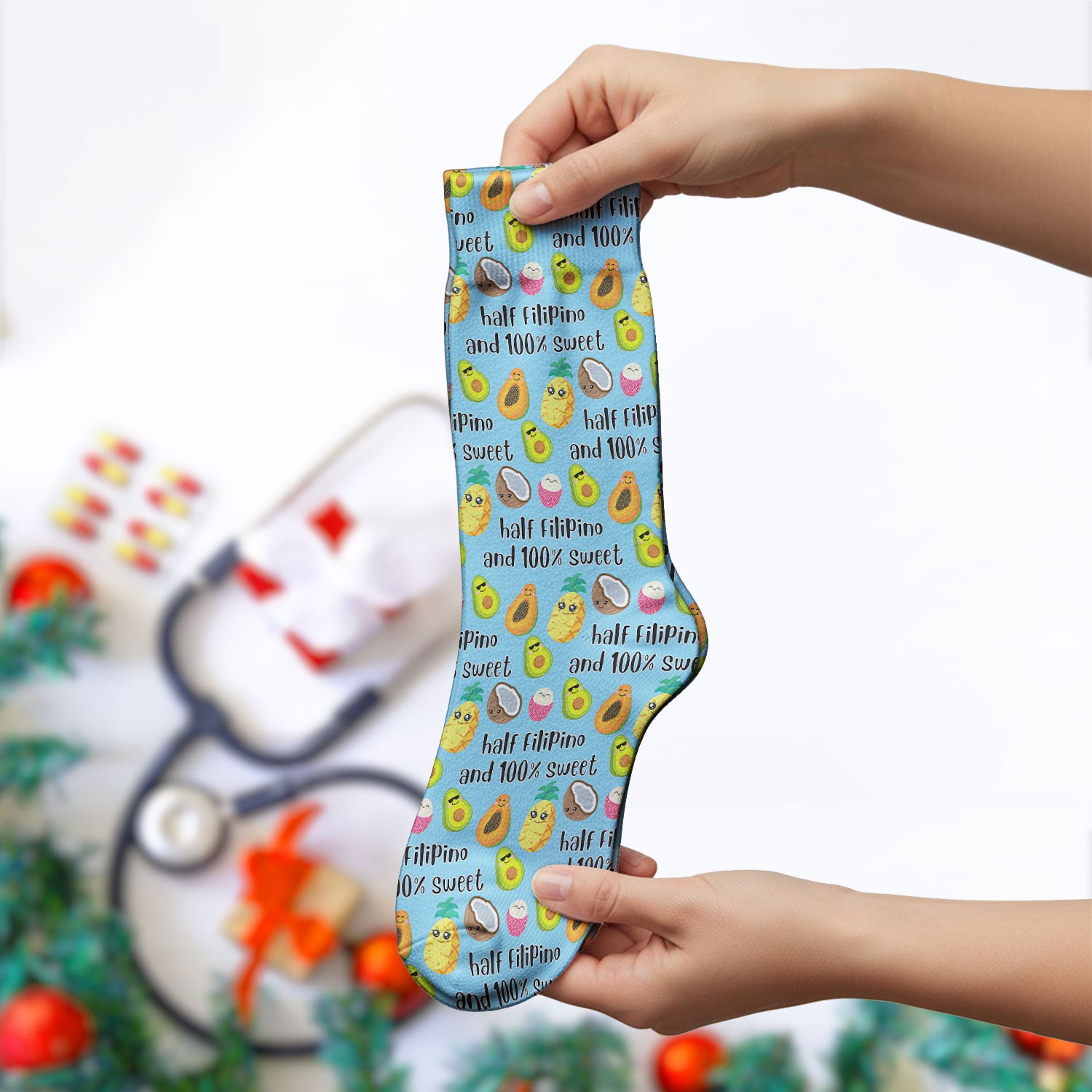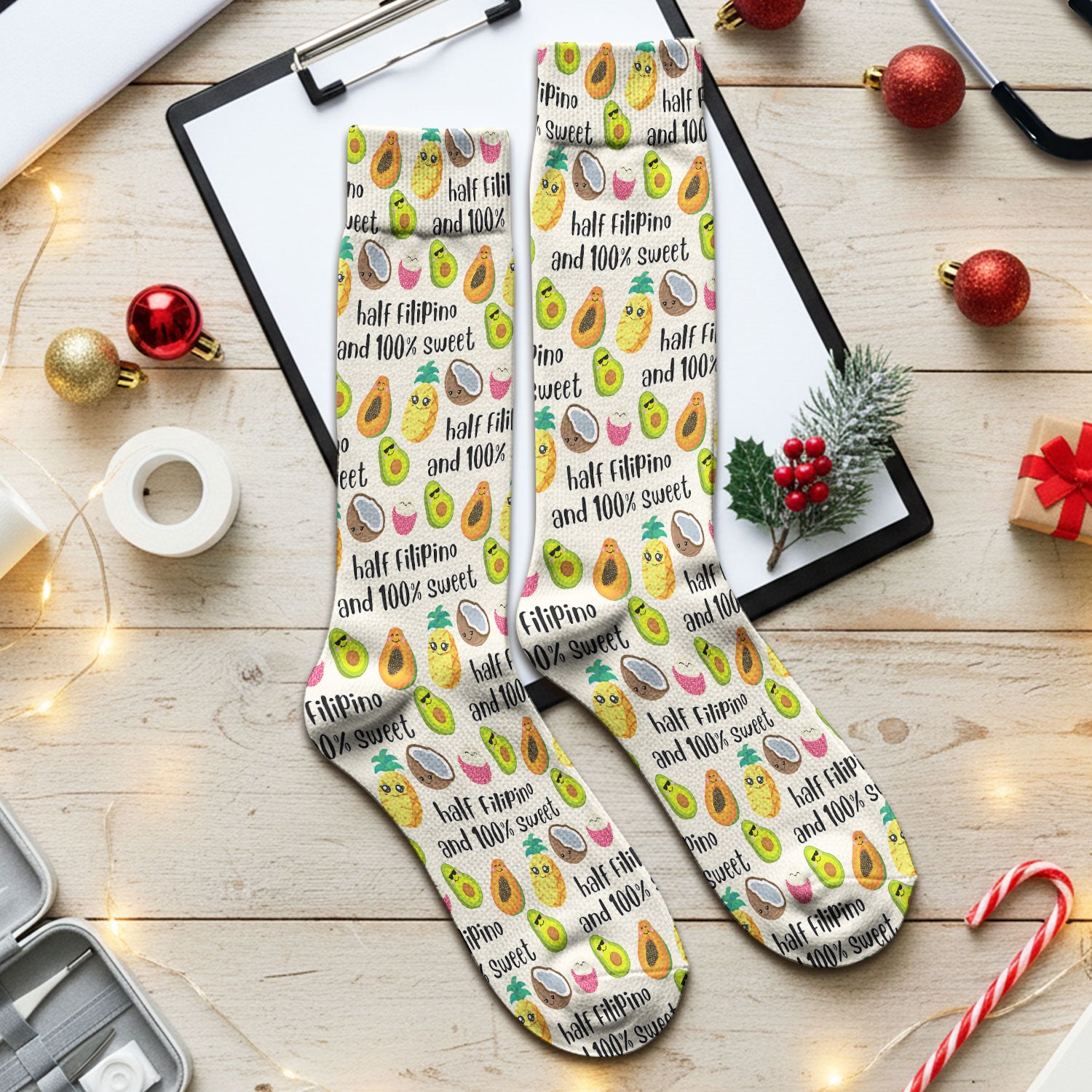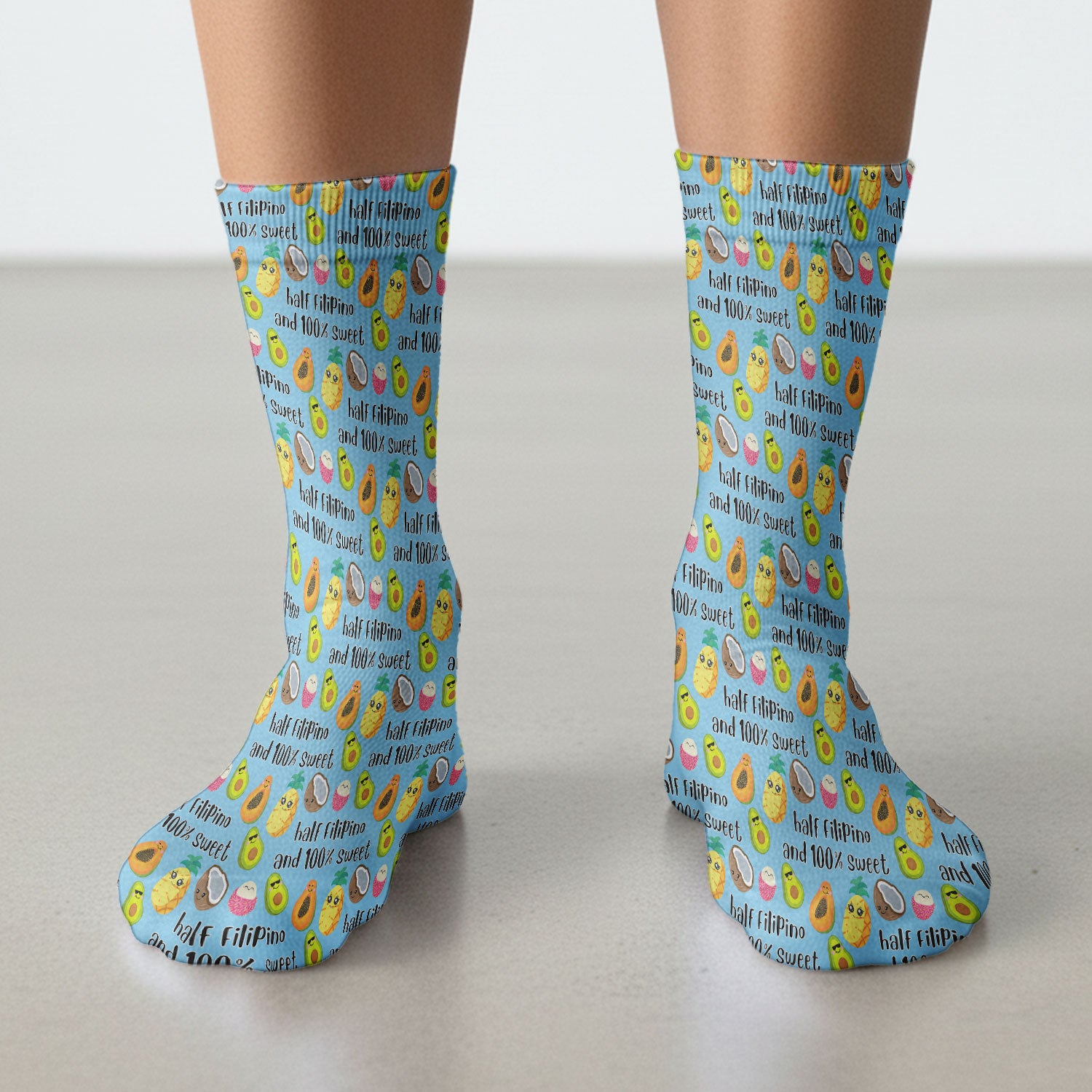 Playful Avocado Fruit Print Filipino Quote Socks, Adult Socks for Men and Women