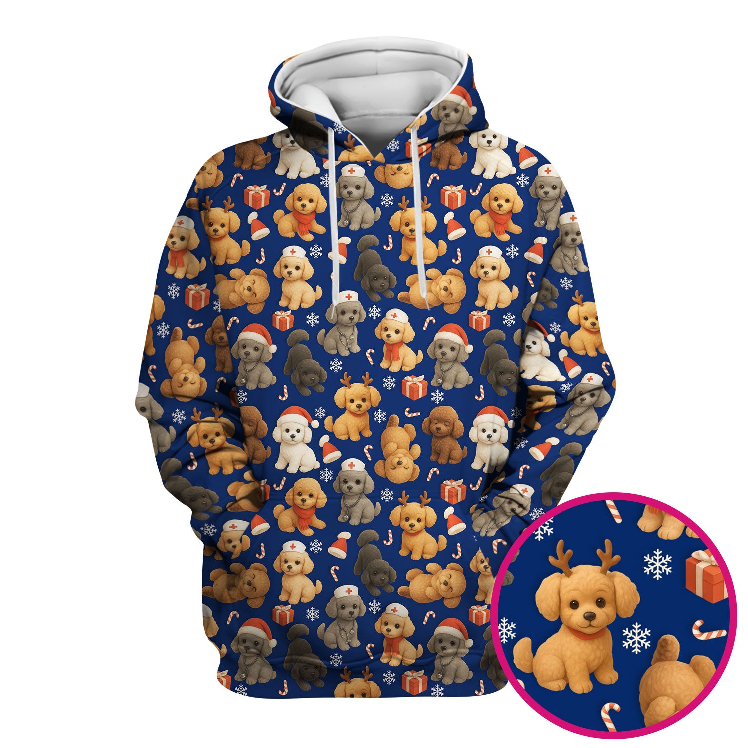 Poodle Scrubs Christmas Edition - Cute Dog Pattern Medical Scrub Top for Women - Holiday Christmas Scrubs with Fun Festive Puppy Print