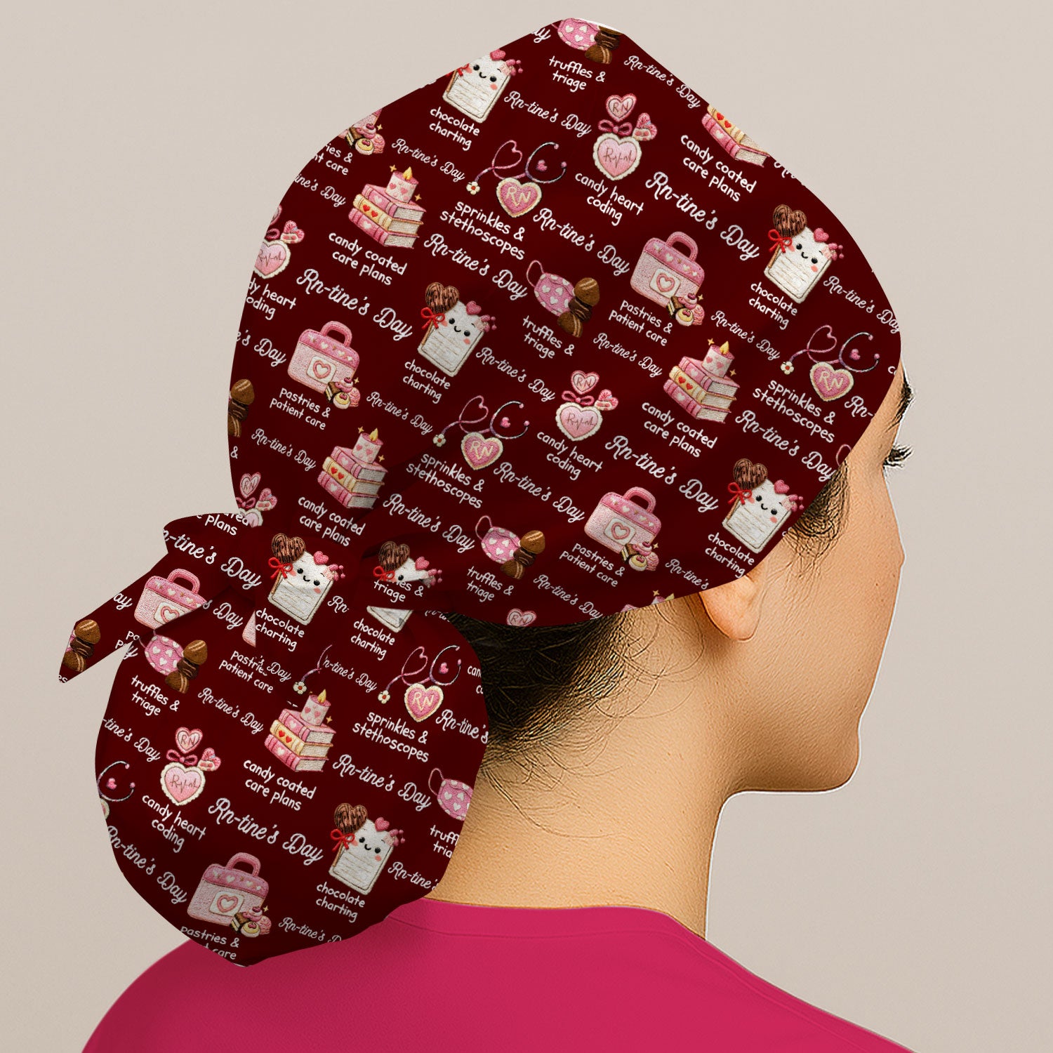 RN Sweets Valentine Stethoscope Pattern Scrub Cap, Surgical Caps for Doctors