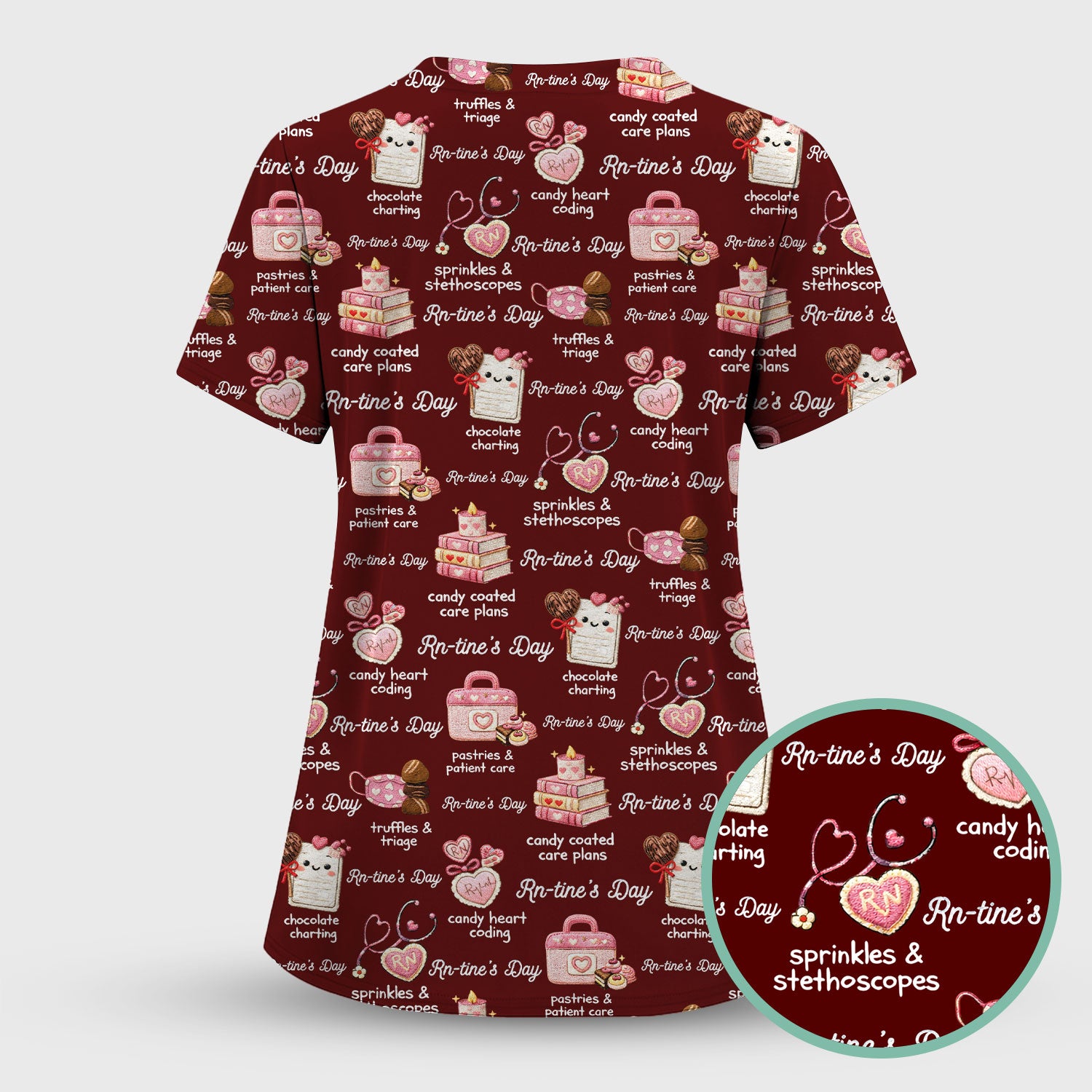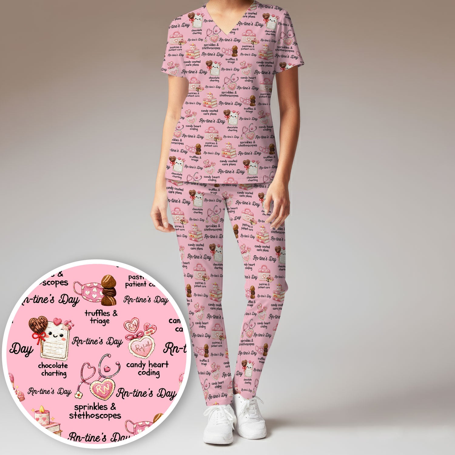 RN Sweets Valentine Stethoscope Scrub Set, Scrub Pants and V Neck Top