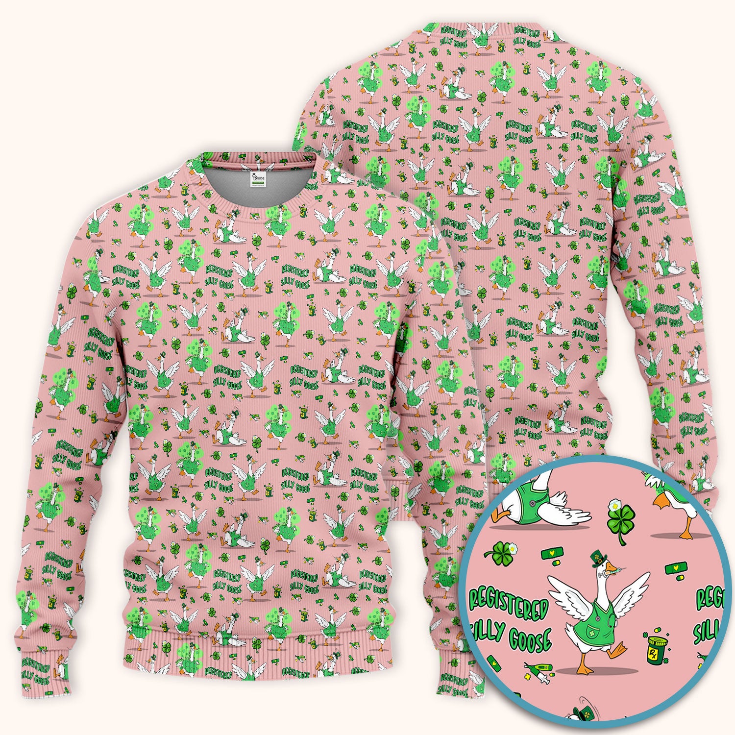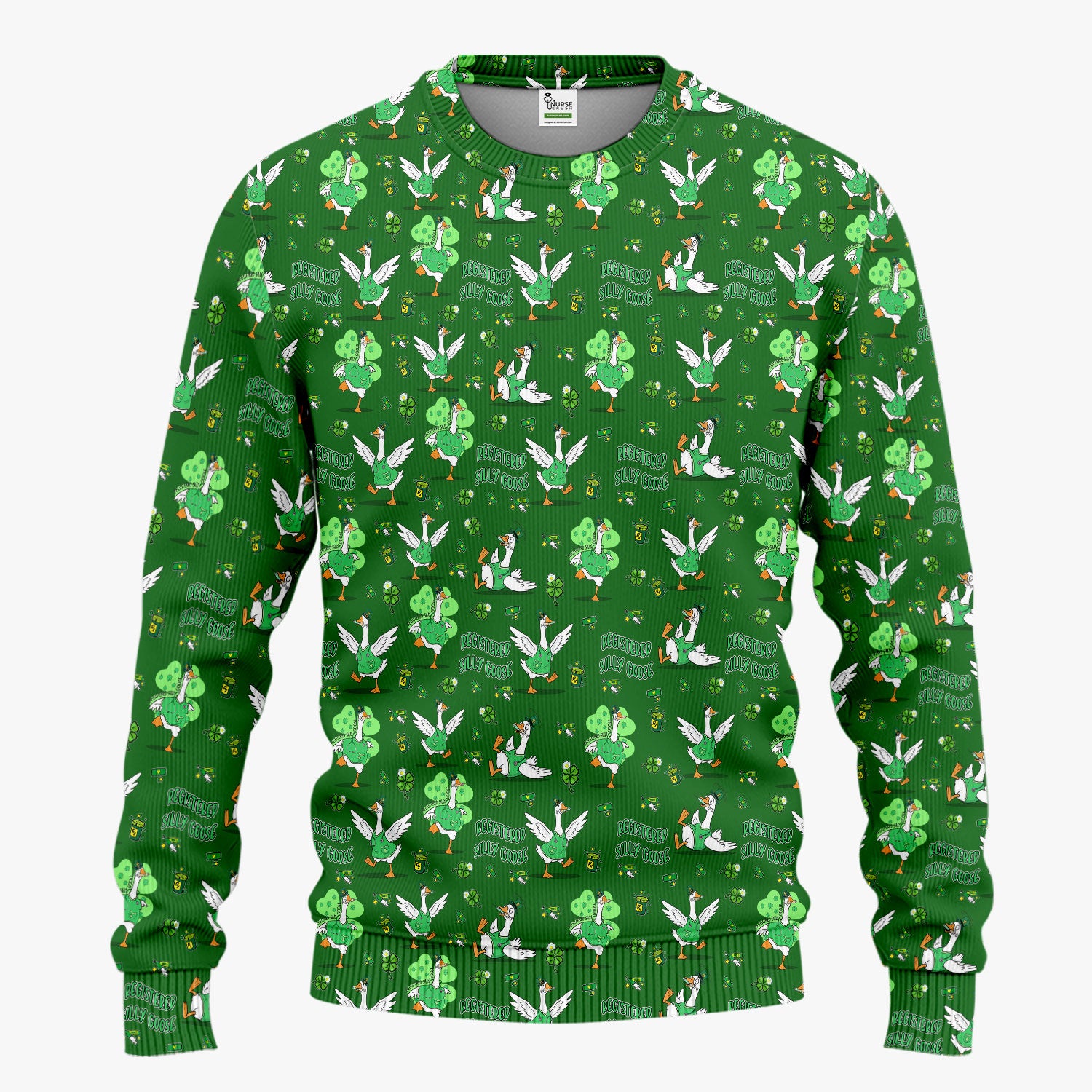 Silly Goose St. Patrick’s Day Scrub Set, Funny Goose Shamrock Pattern Nurse Scrub Shirt, Irish Green Nursing Uniform