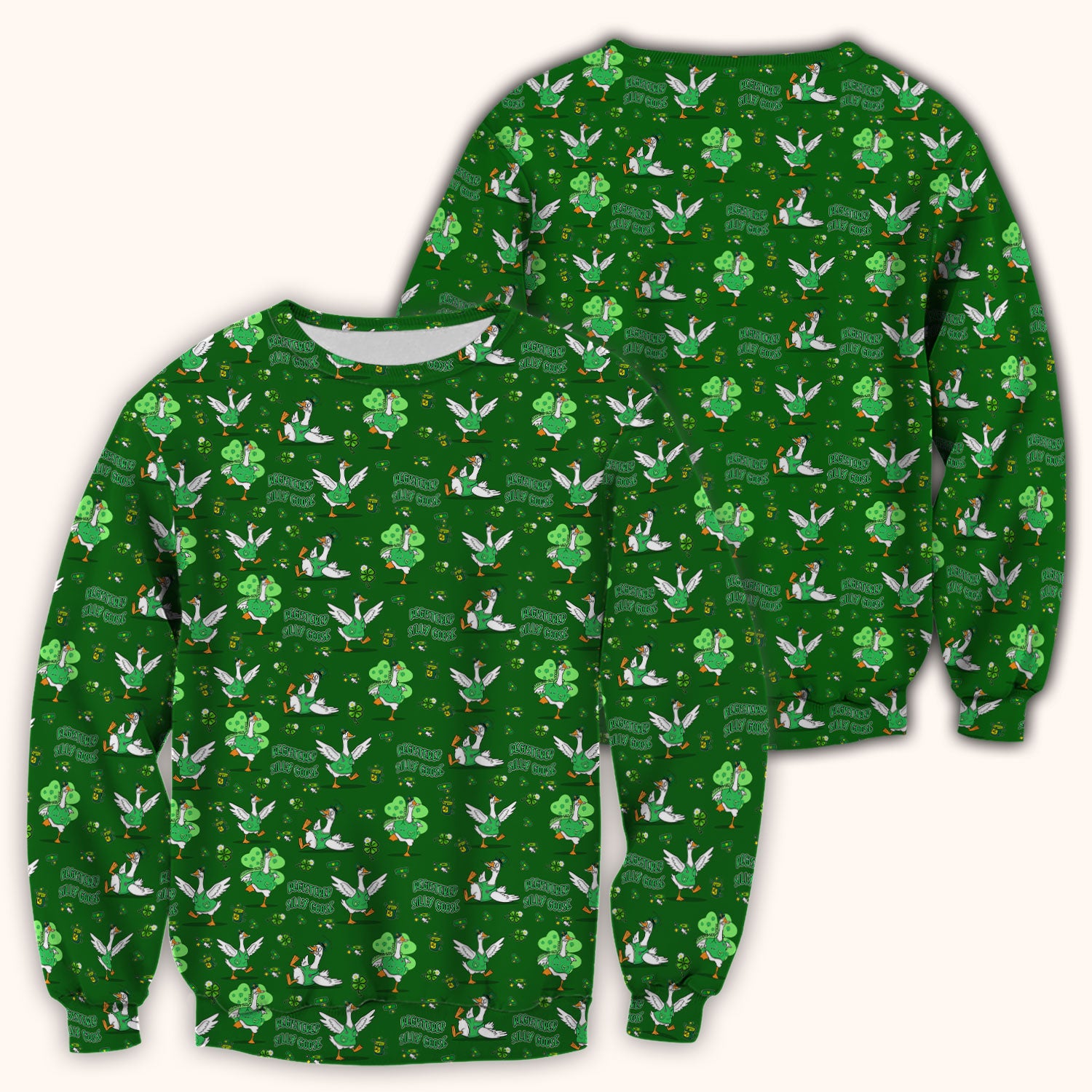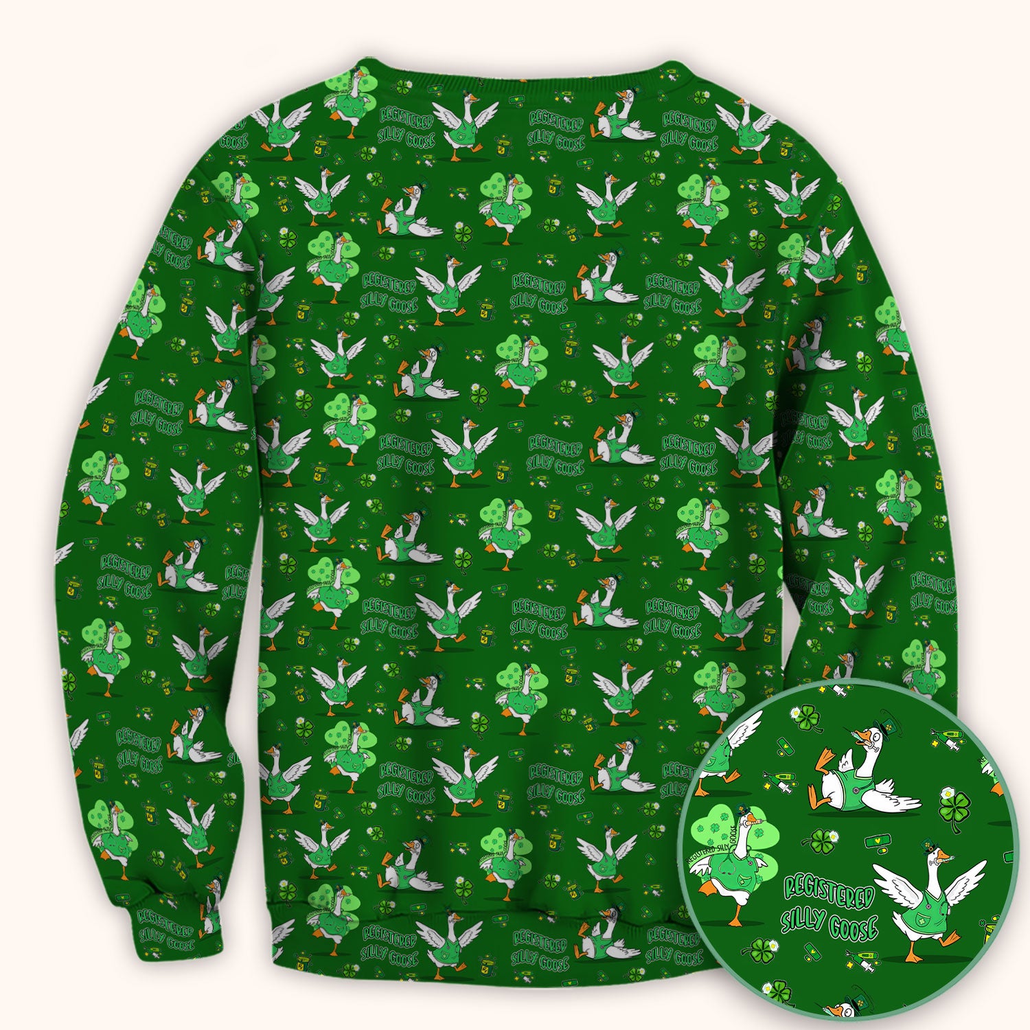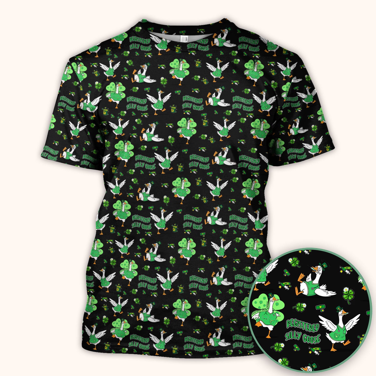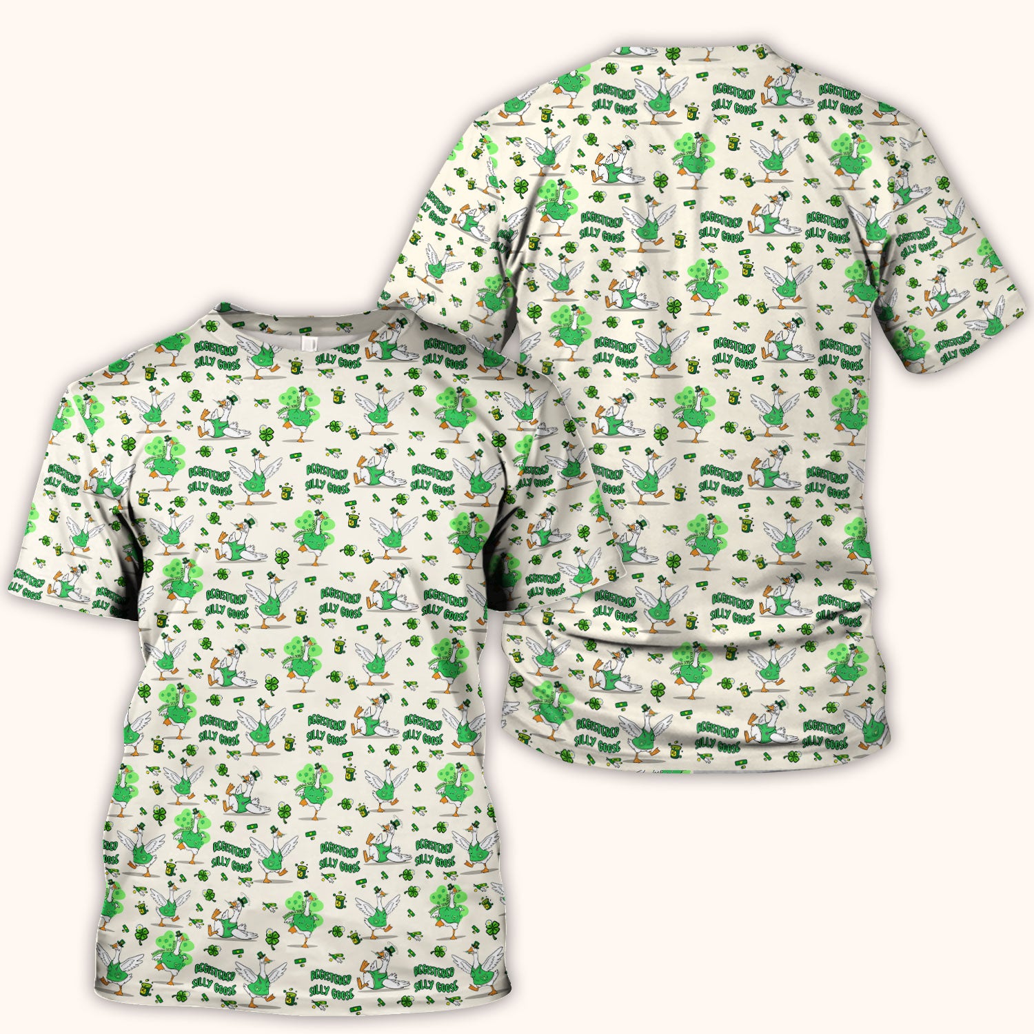 Silly Goose St. Patrick’s Day Scrub Top, Funny Goose Shamrock Pattern Nurse Scrub Shirt, Irish Green Nursing Uniform