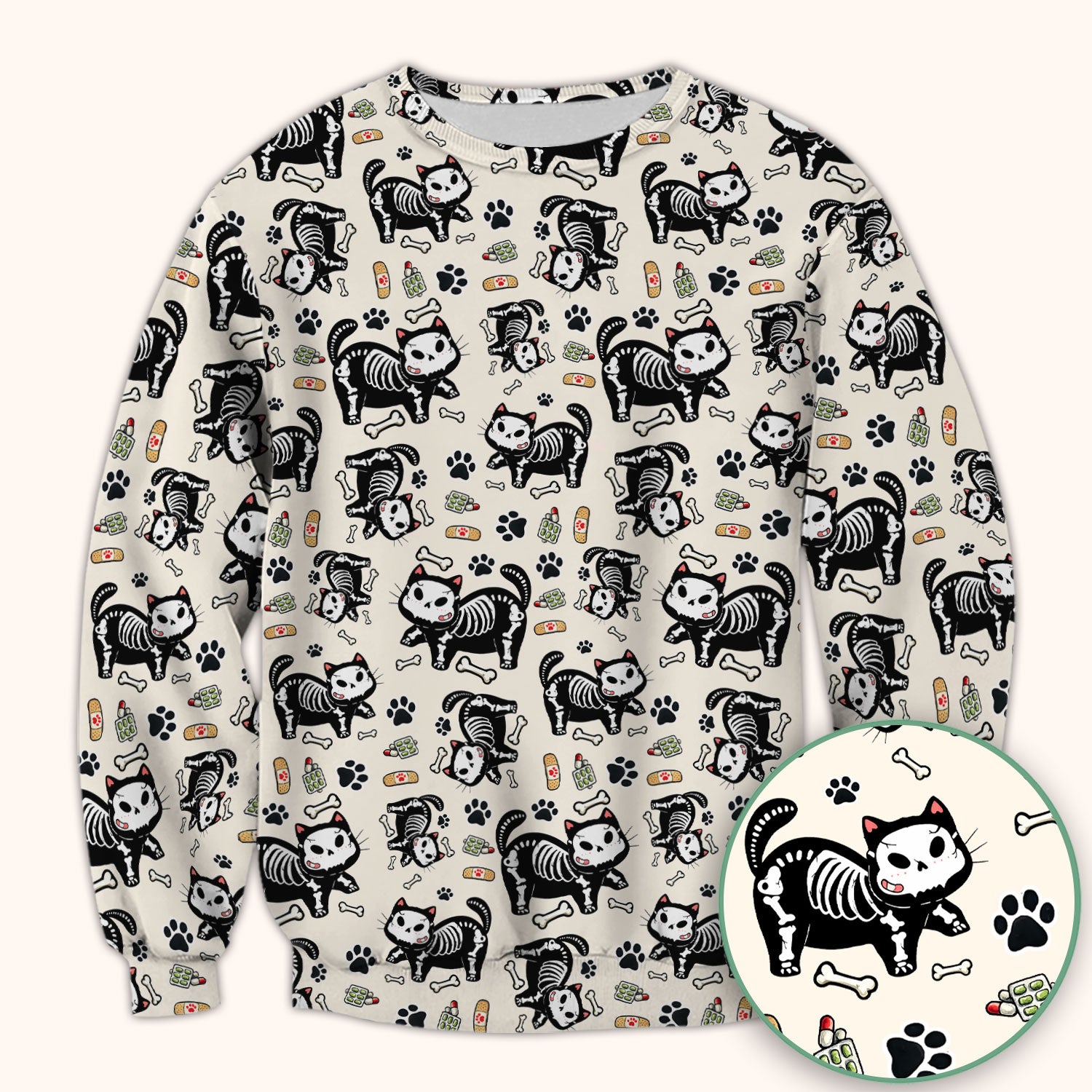 Skeleton Cat Medical Pattern Scrub Top, Comfortable Scrubs for Nurses