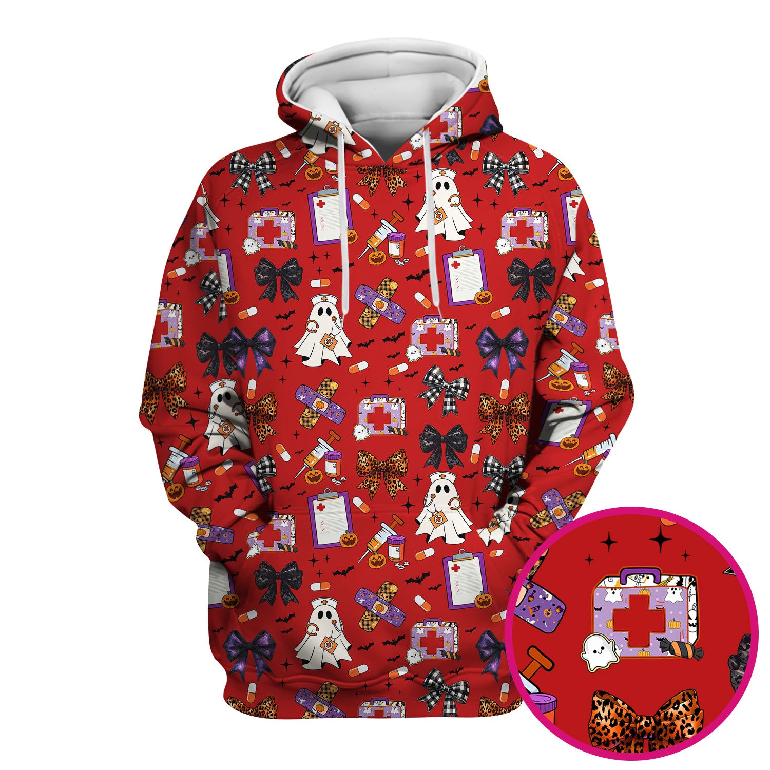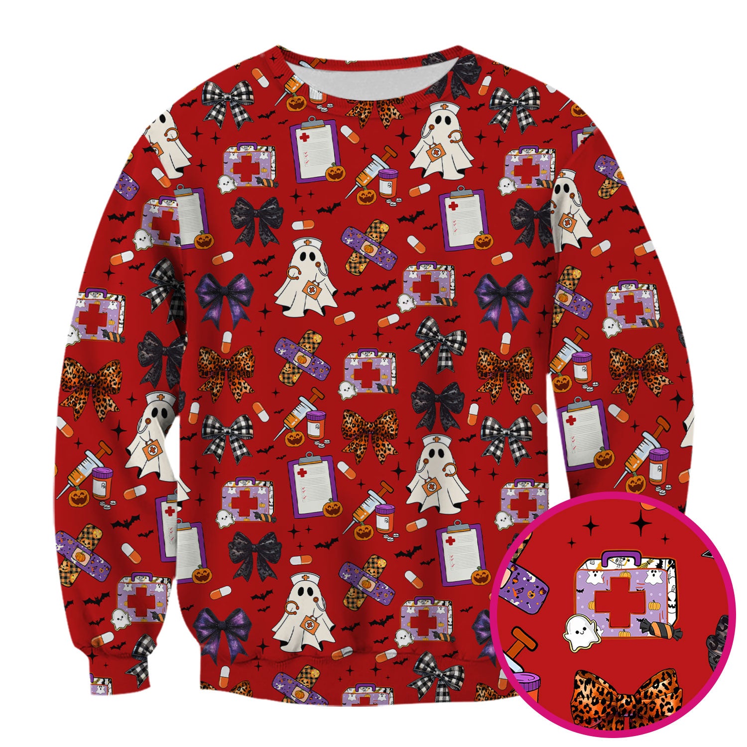Spooky Cute Nurse Scrubs Top - Ghost, Pumpkin & Bow Print - Fun Halloween Medical Shirt for Women Nurses