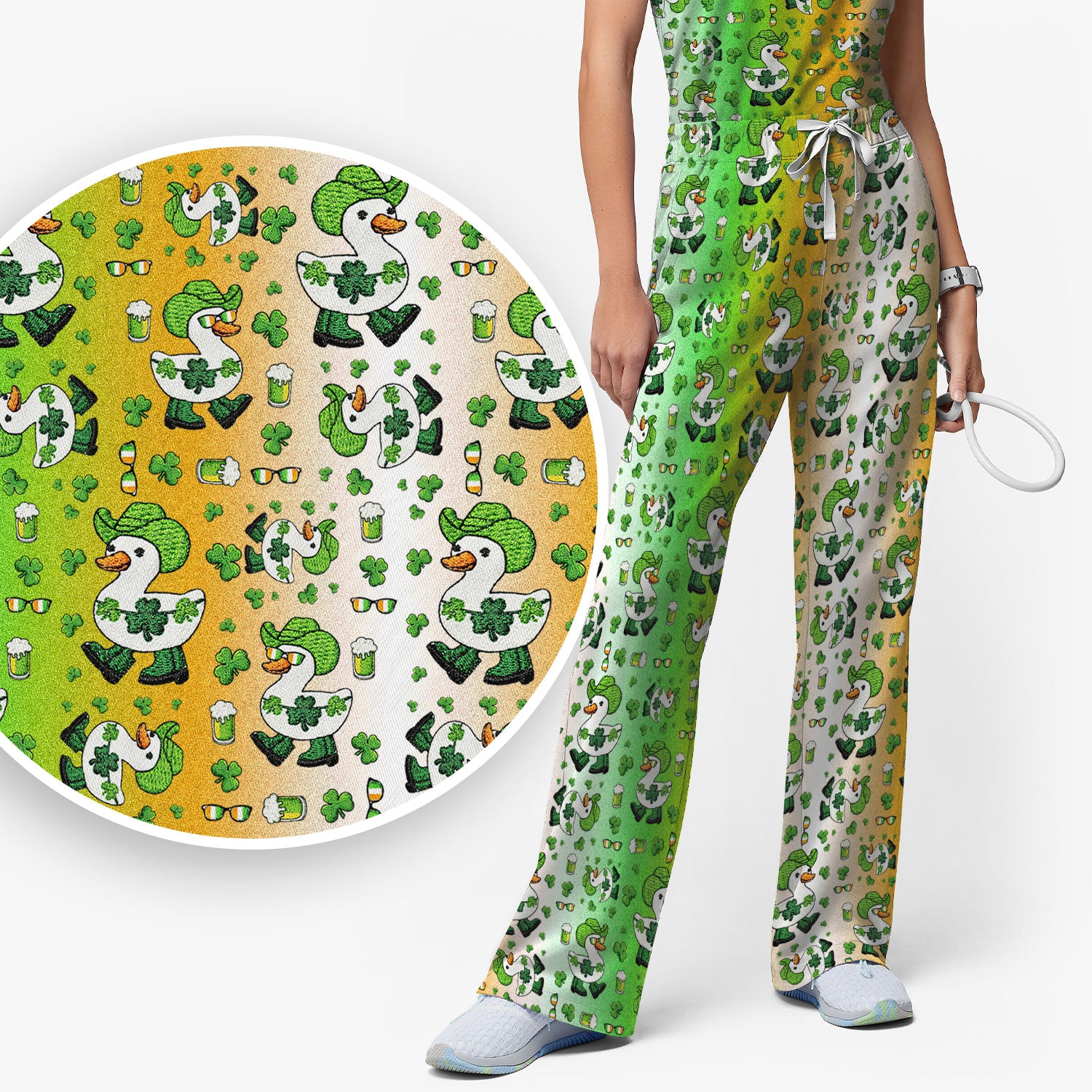 St. Patrick Goose Shamrock Medical Pattern Scrub Set, Breathable Med Uniform