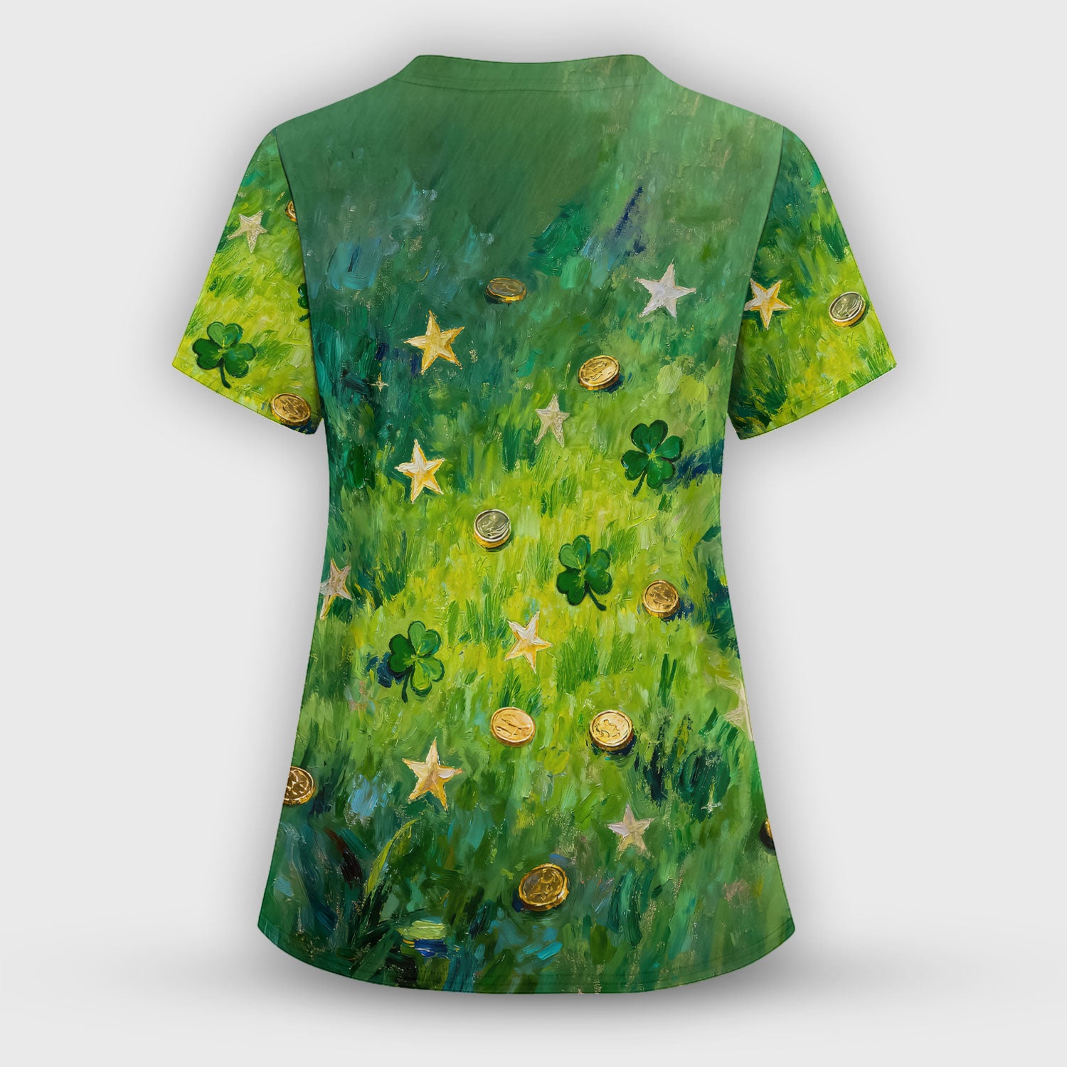 St. Patrick Lucky Shamrock Heart Scrub Top, Comfortable Scrubs for Nurses