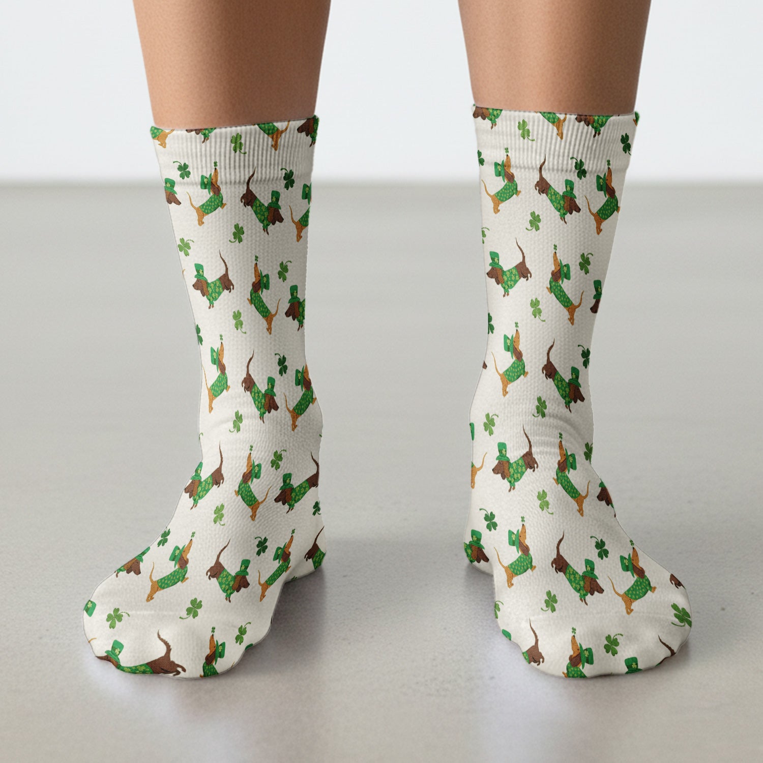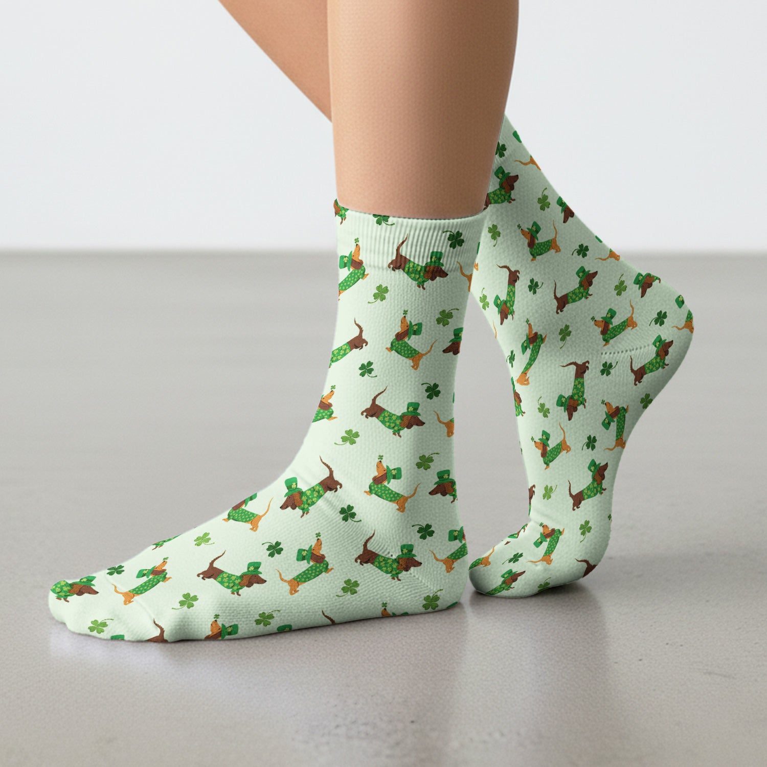 St. Patrick’s Day Dachshund Scrub Socks, Funny Wiener Dog Nurse Sock, Breathable Fabrics Nursing Uniform