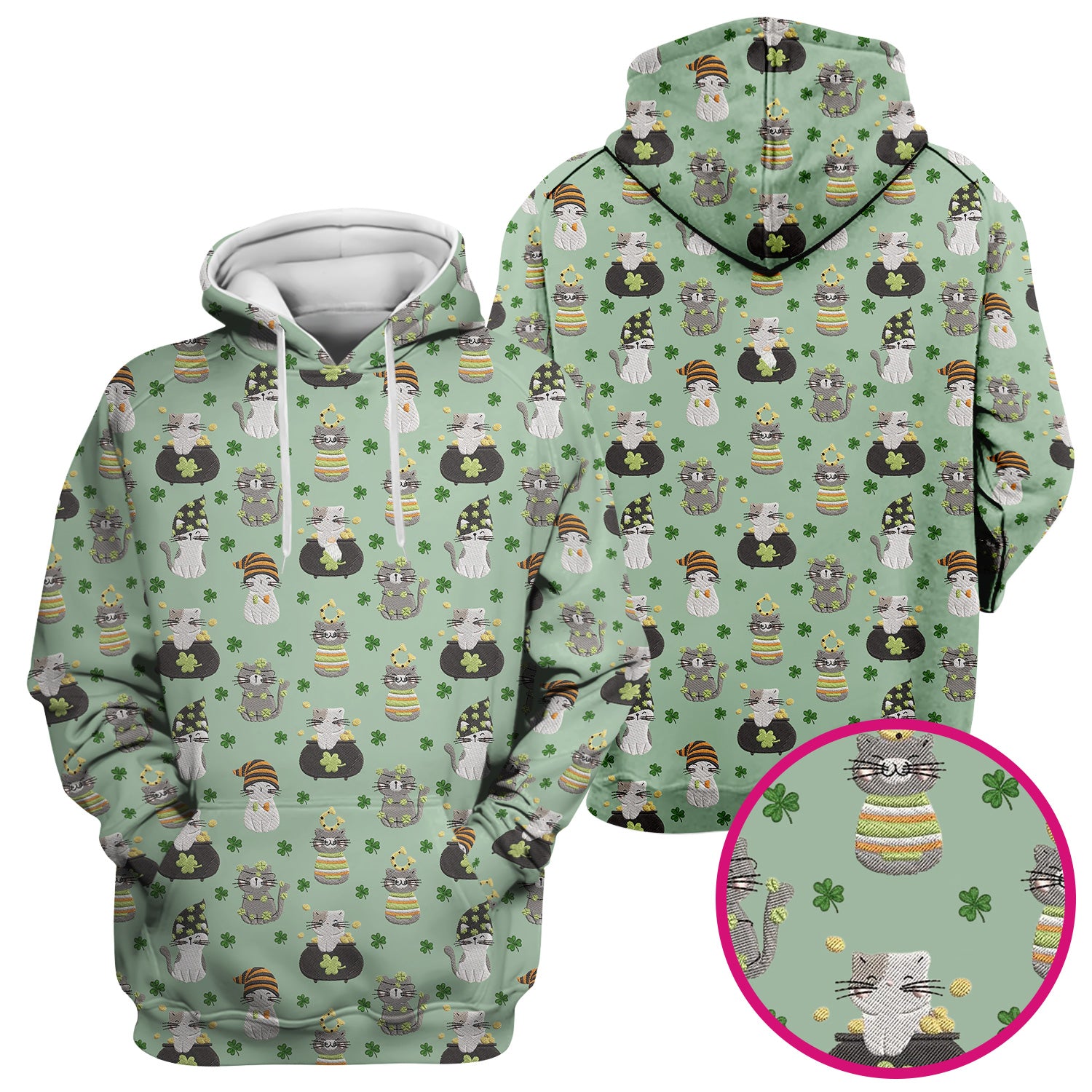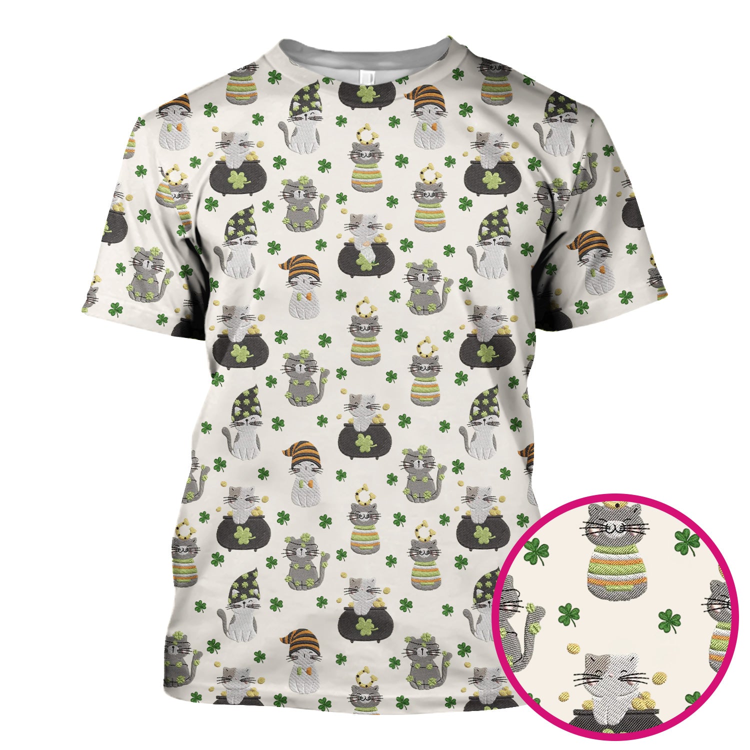 St. Patrick’s Day Scrub Top, Lucky Cat With Shamrock Pattern Shirt, Breathable Fabrics Nursing Uniform