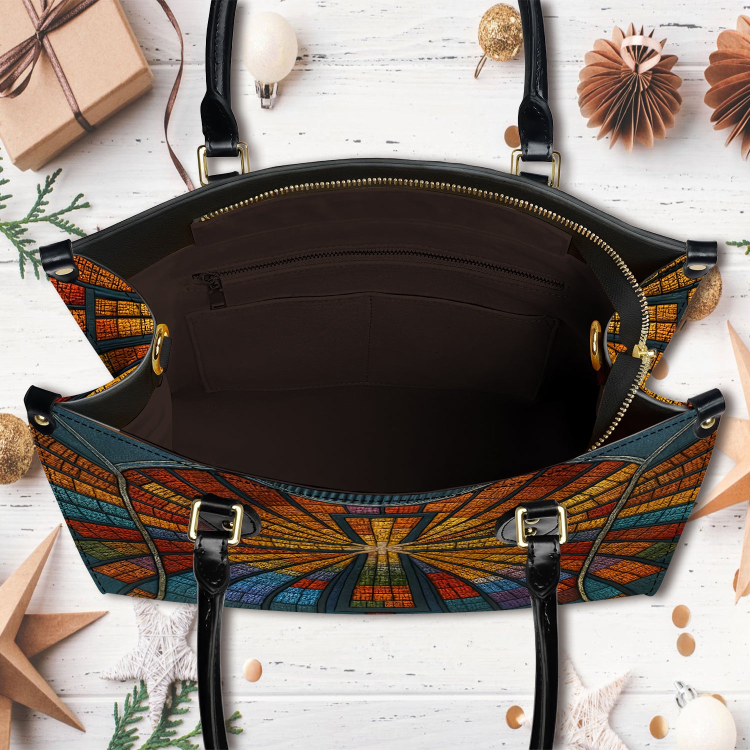 Stained Glass Cross Handbag for Women, Christian Tote Purse with Colorful Church Window Design, Religious Faith Bag Gift