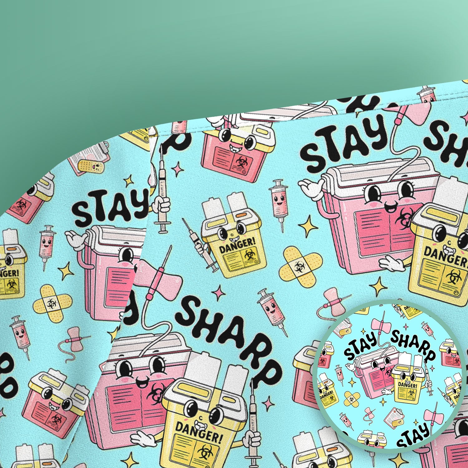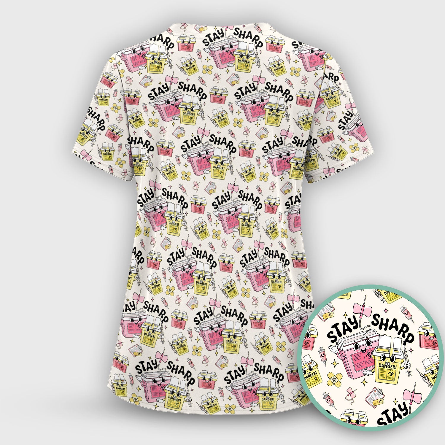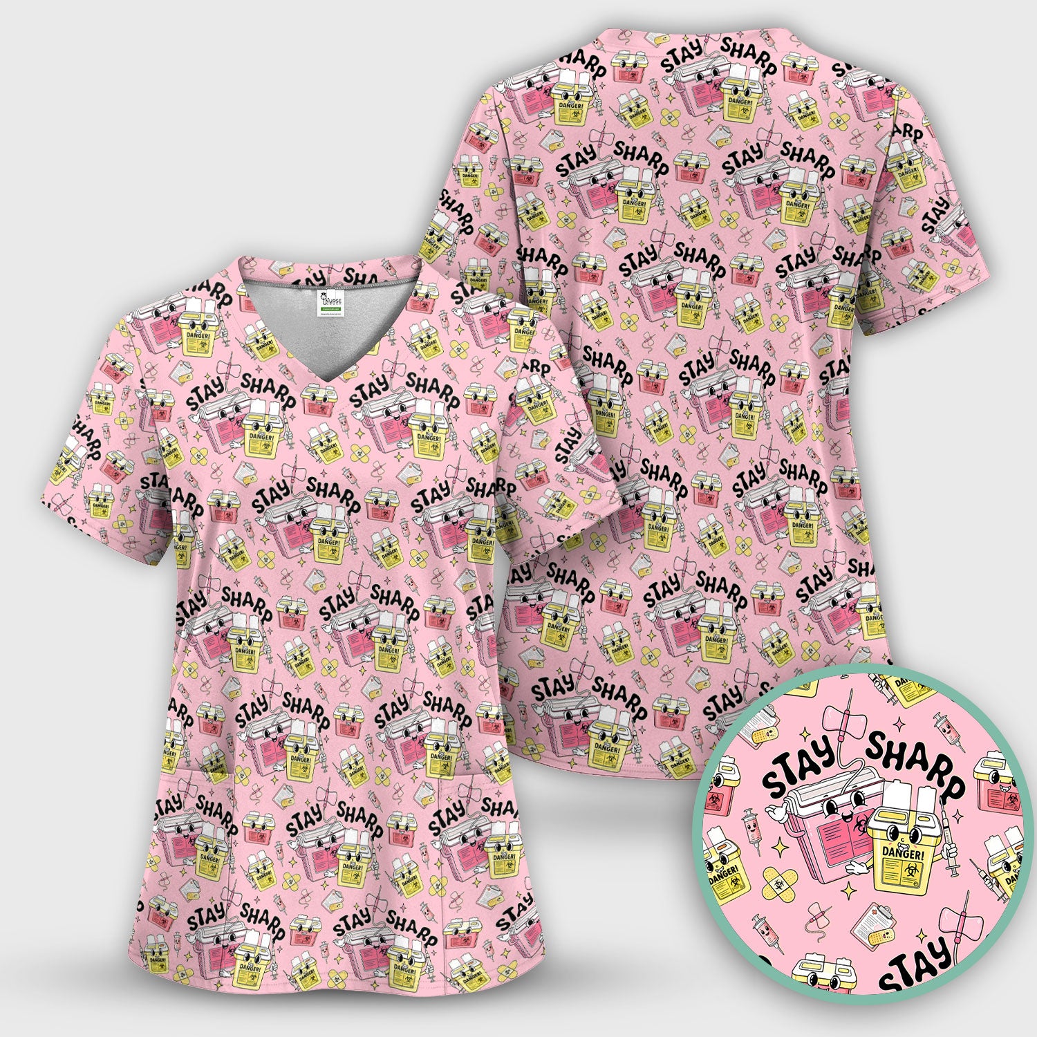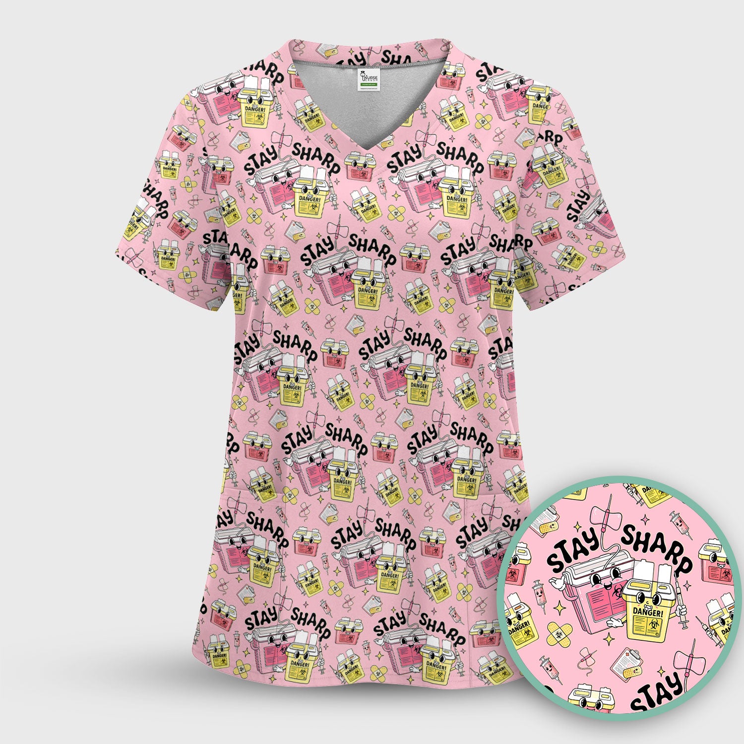 Stay Sharp Nurse Scrub Top, Cute Medical Pattern Scrubs, Breathable Fabrics Nursing Uniform