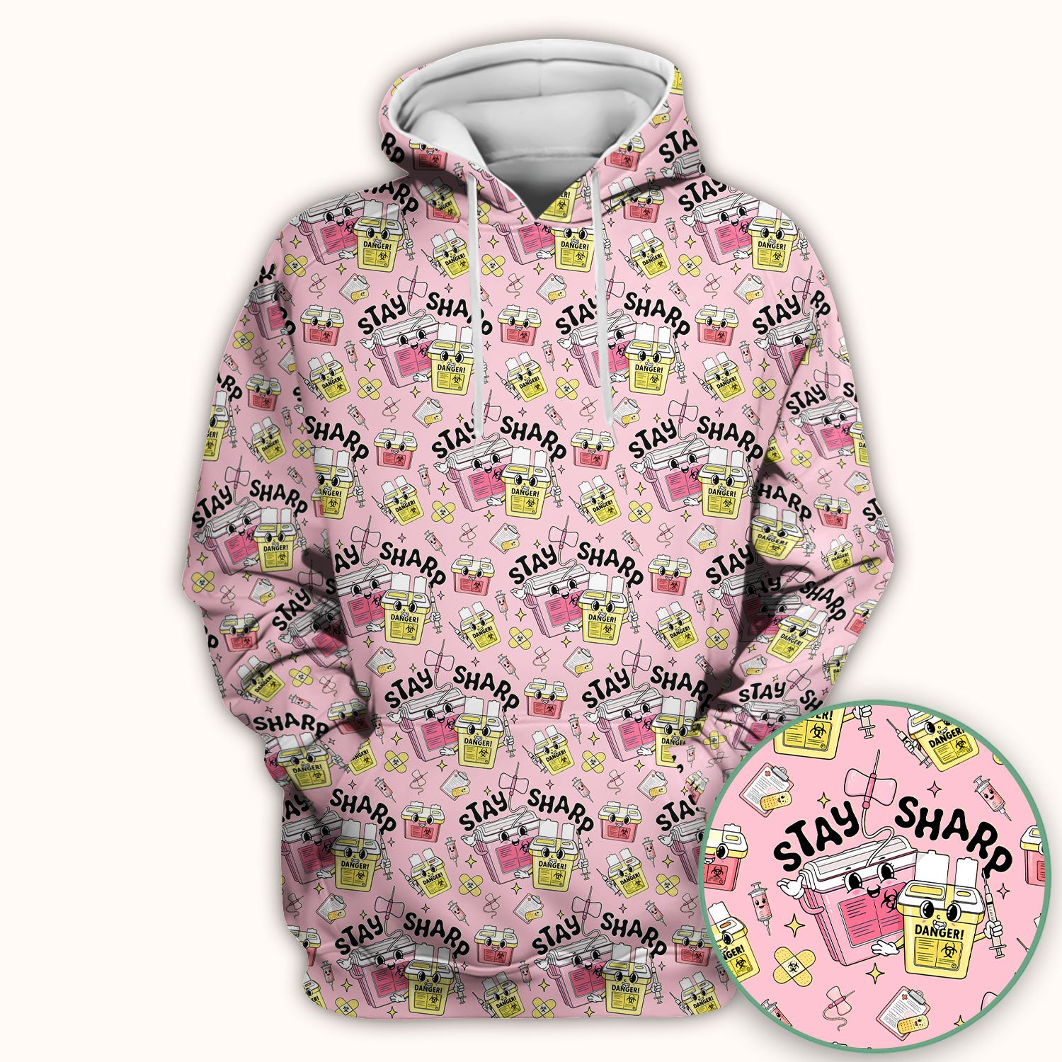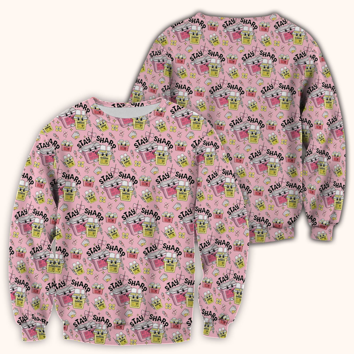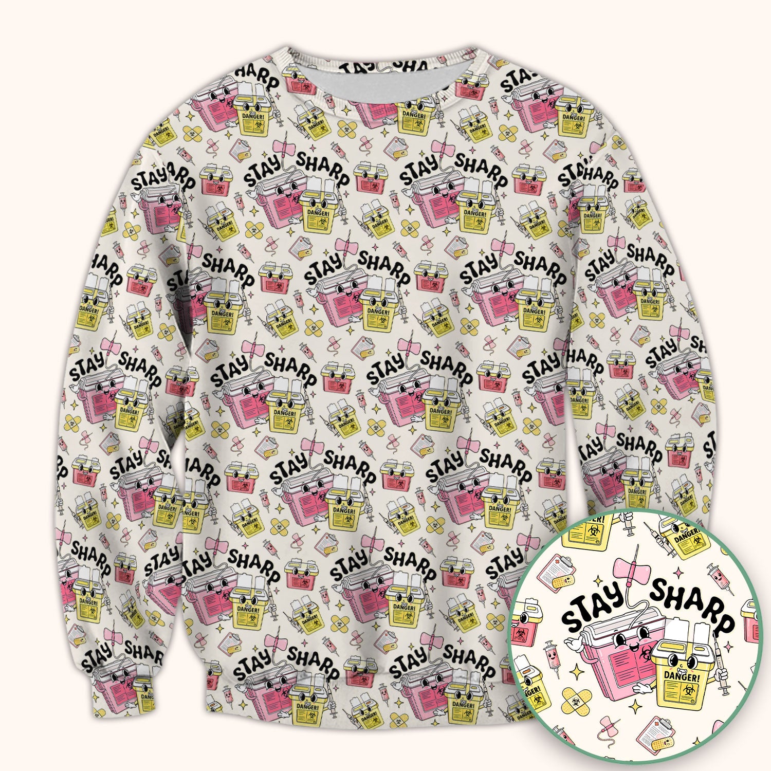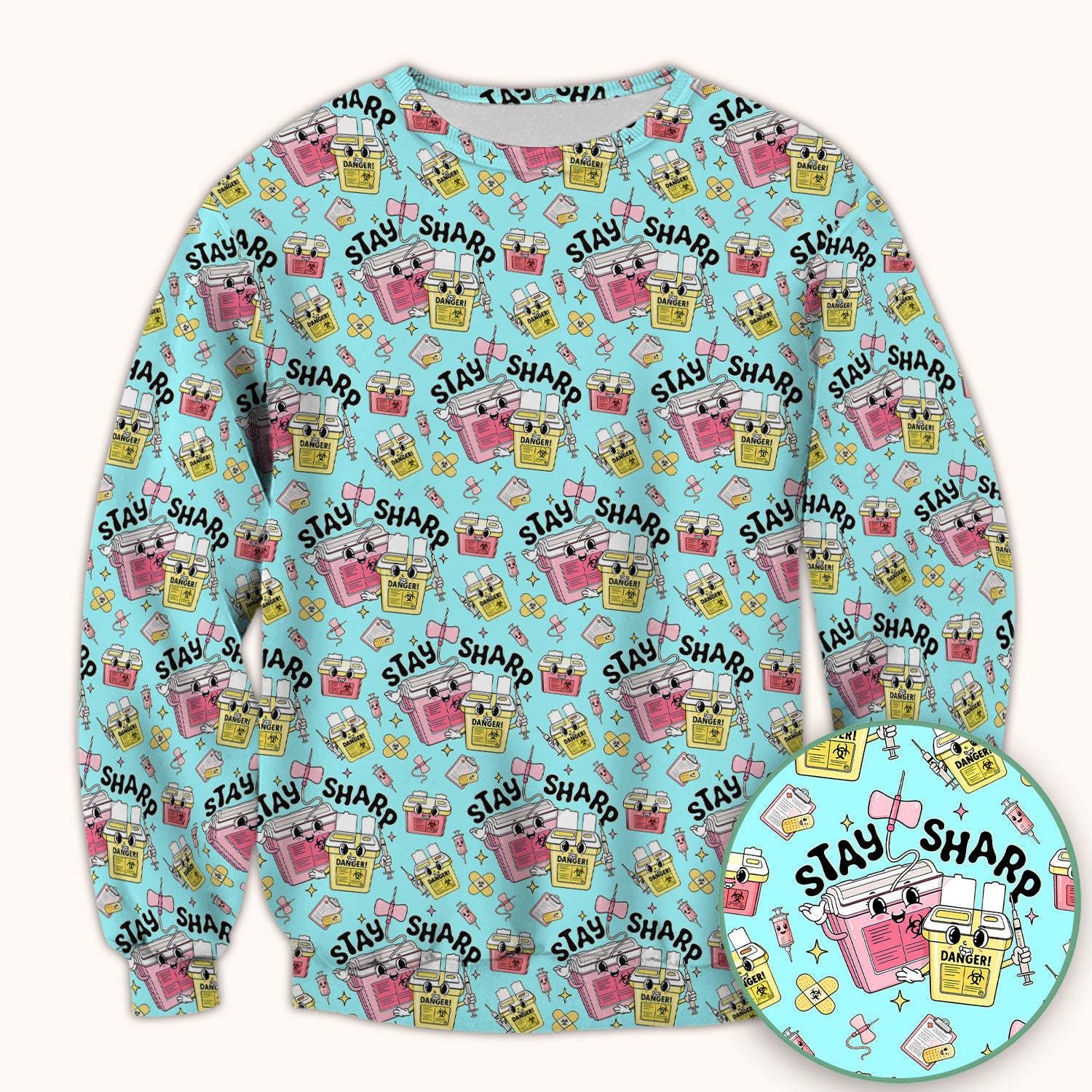 Stay Sharp Nurse Scrub Top, Cute Medical Pattern Scrubs, Breathable Fabrics Nursing Uniform