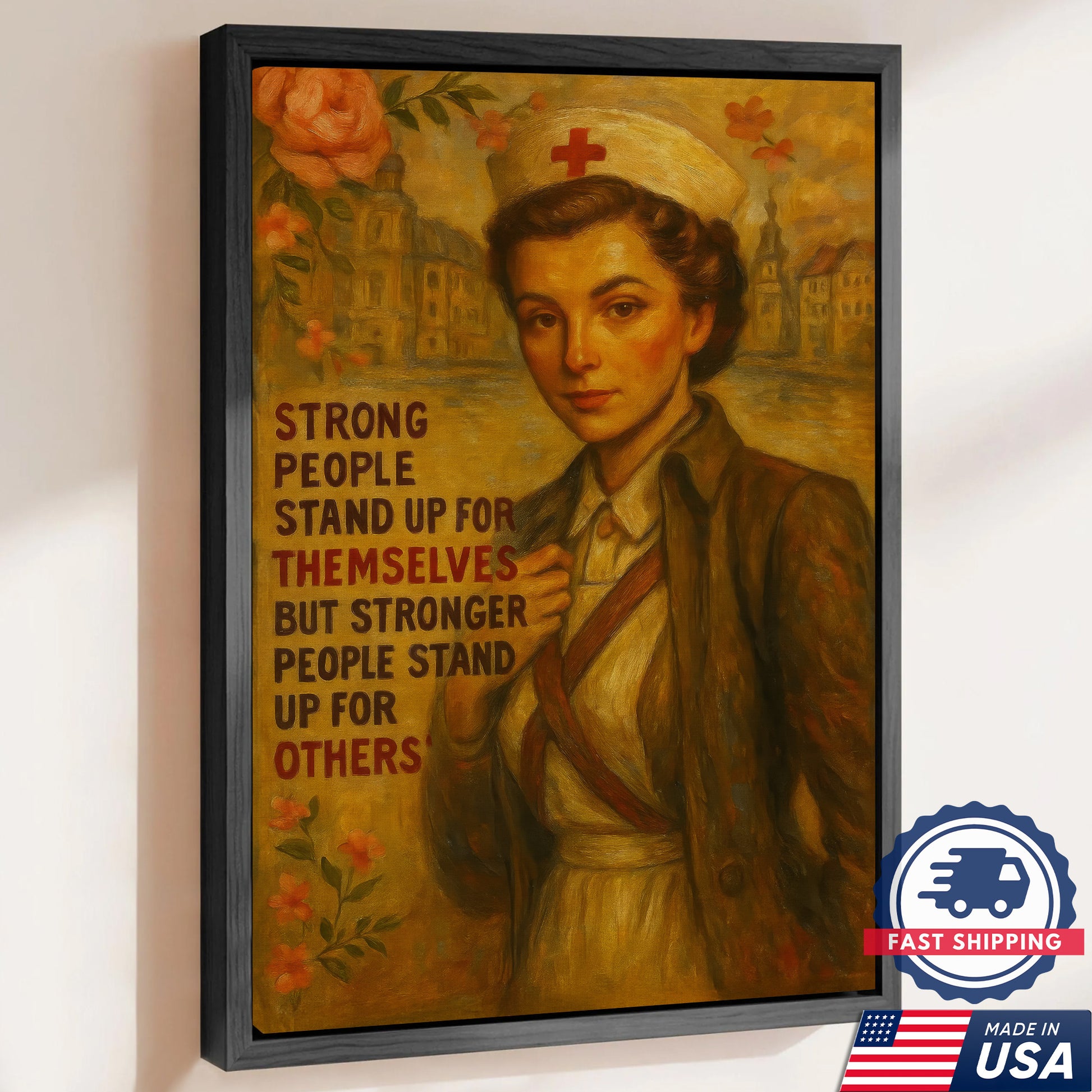 Strong People Stand Up For Others Nurse Canvas, Gift for RN LPN CNA Healthcare Staff