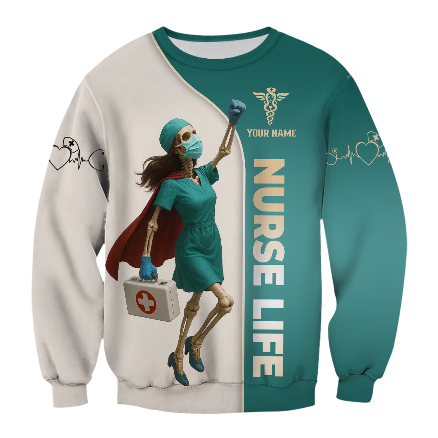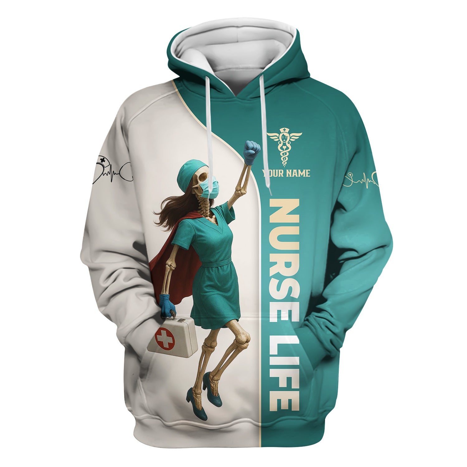 Superhero Nurse Shirt - Custom Skeleton Nurse Life Tee with Cape & Quote - Bold Gift for RN, LPN, CNA