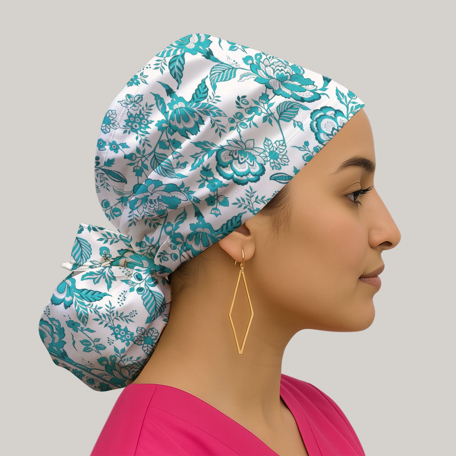 Toile De Jouy Scrub Cap For Women, Floral Pattern Nurse Hat, Comfortable Scrubs For Nursing
