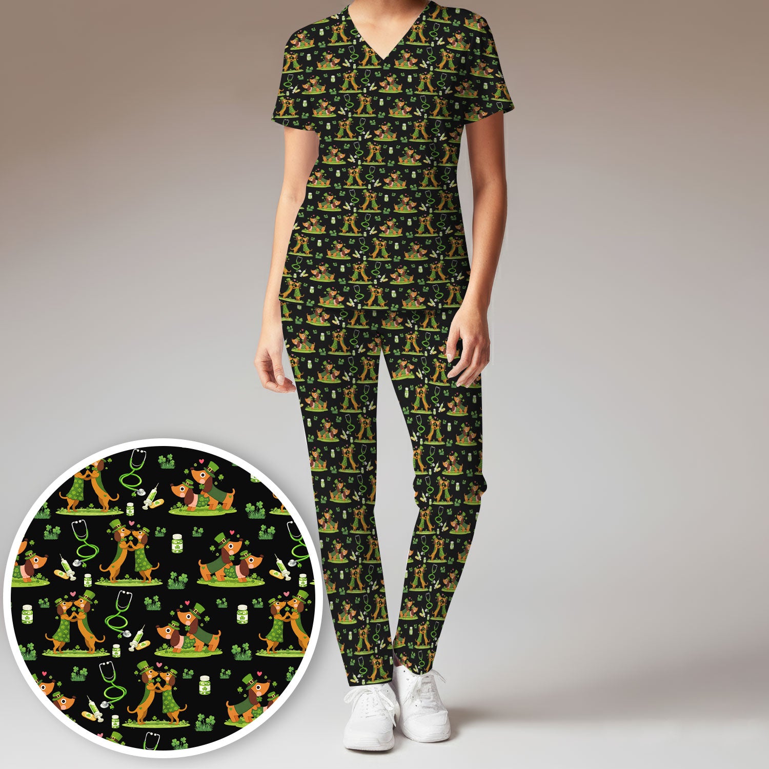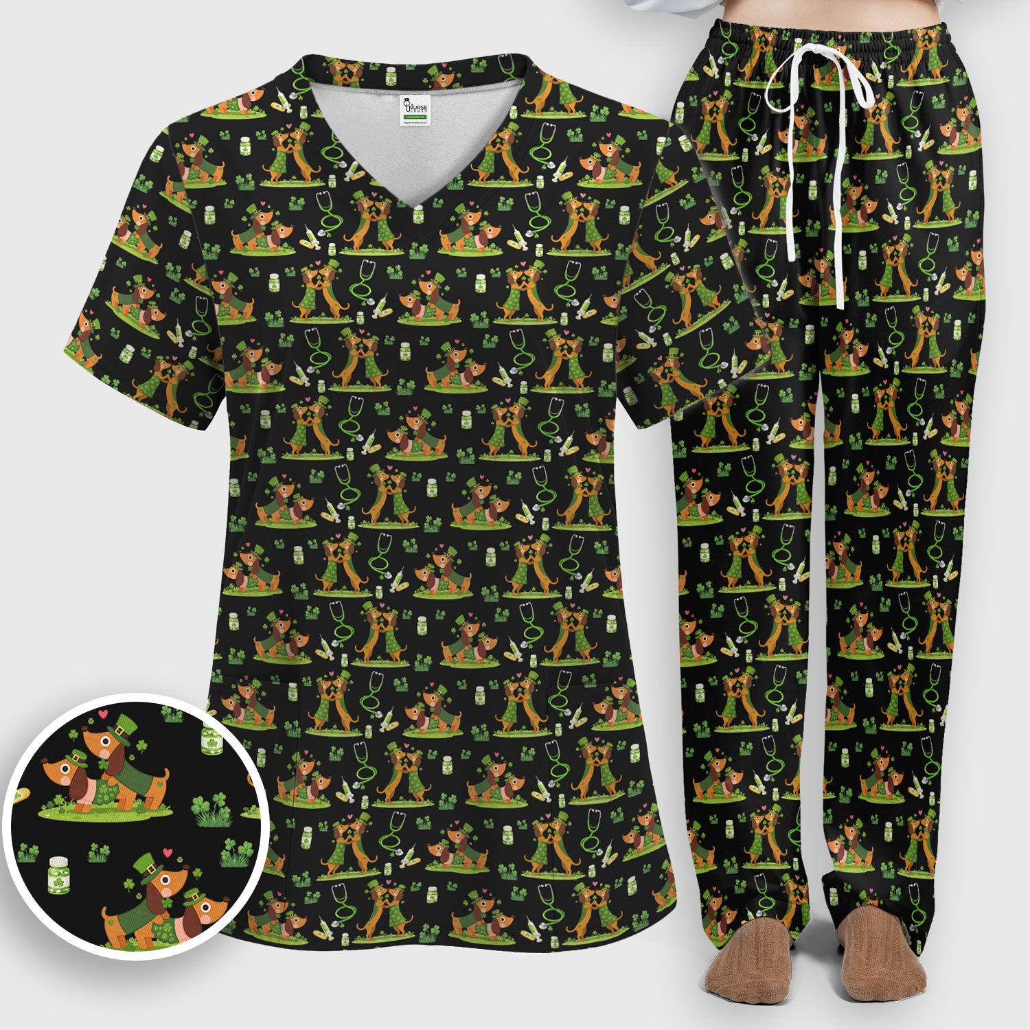 Valentine Cute Dachshund Nurse Set, Dog Heart Pattern, Breathable Nursing Uniform