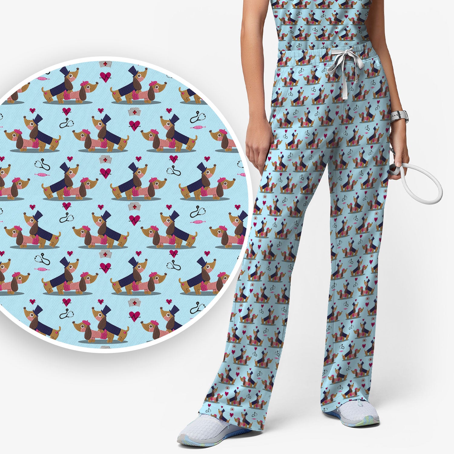 Valentine Dachshund Nurse Scrub Set - Funny Couple Gift for Women