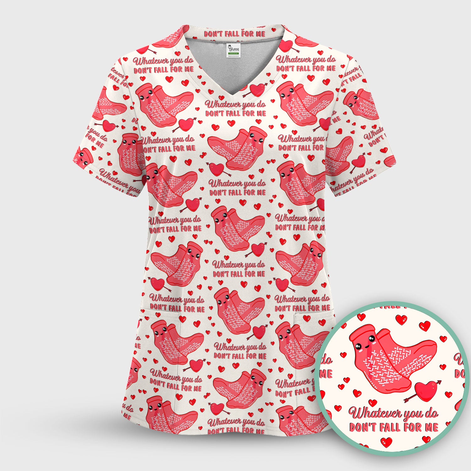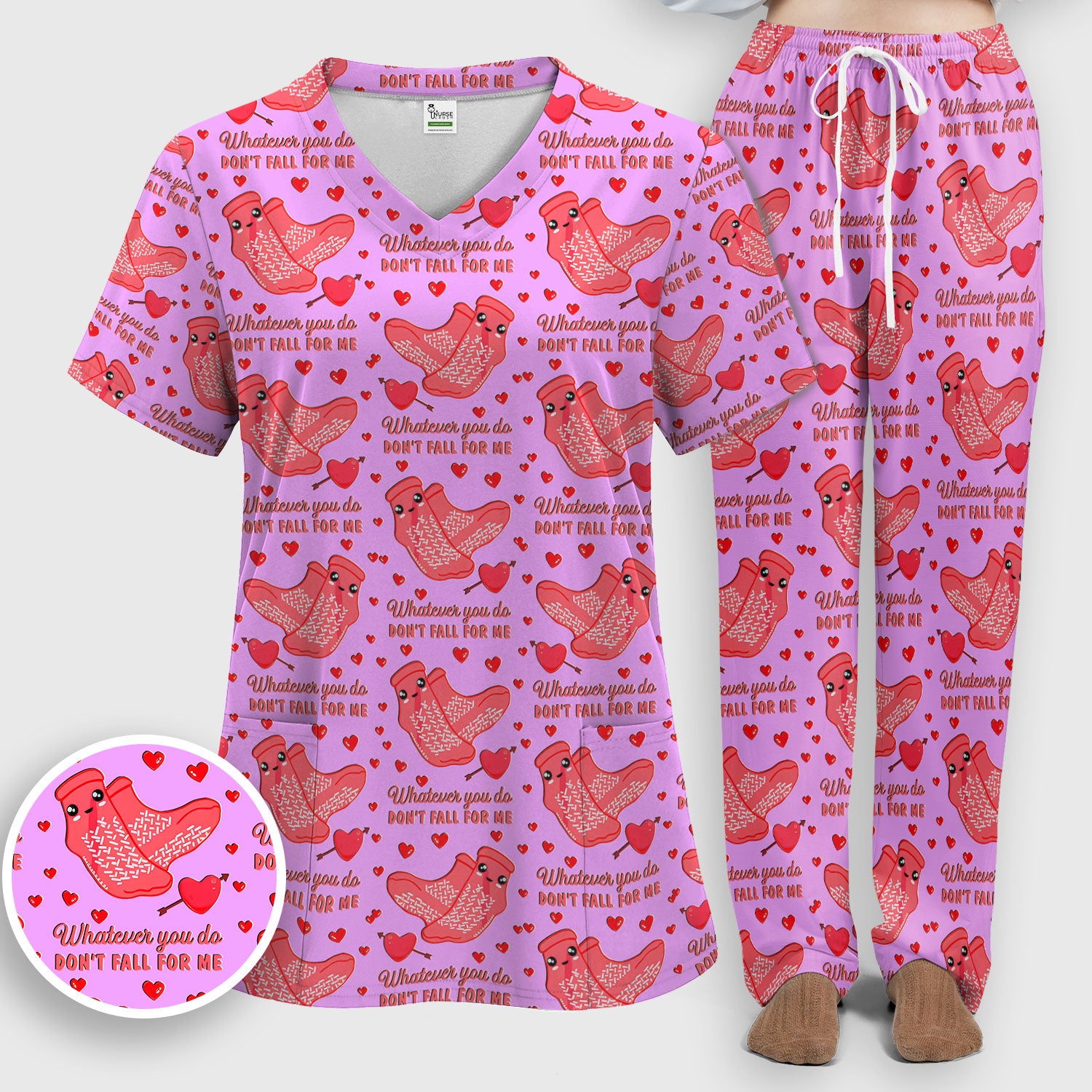 Valentine Funny Love Quote Scrub Set, Scrub Pants and V Neck Top