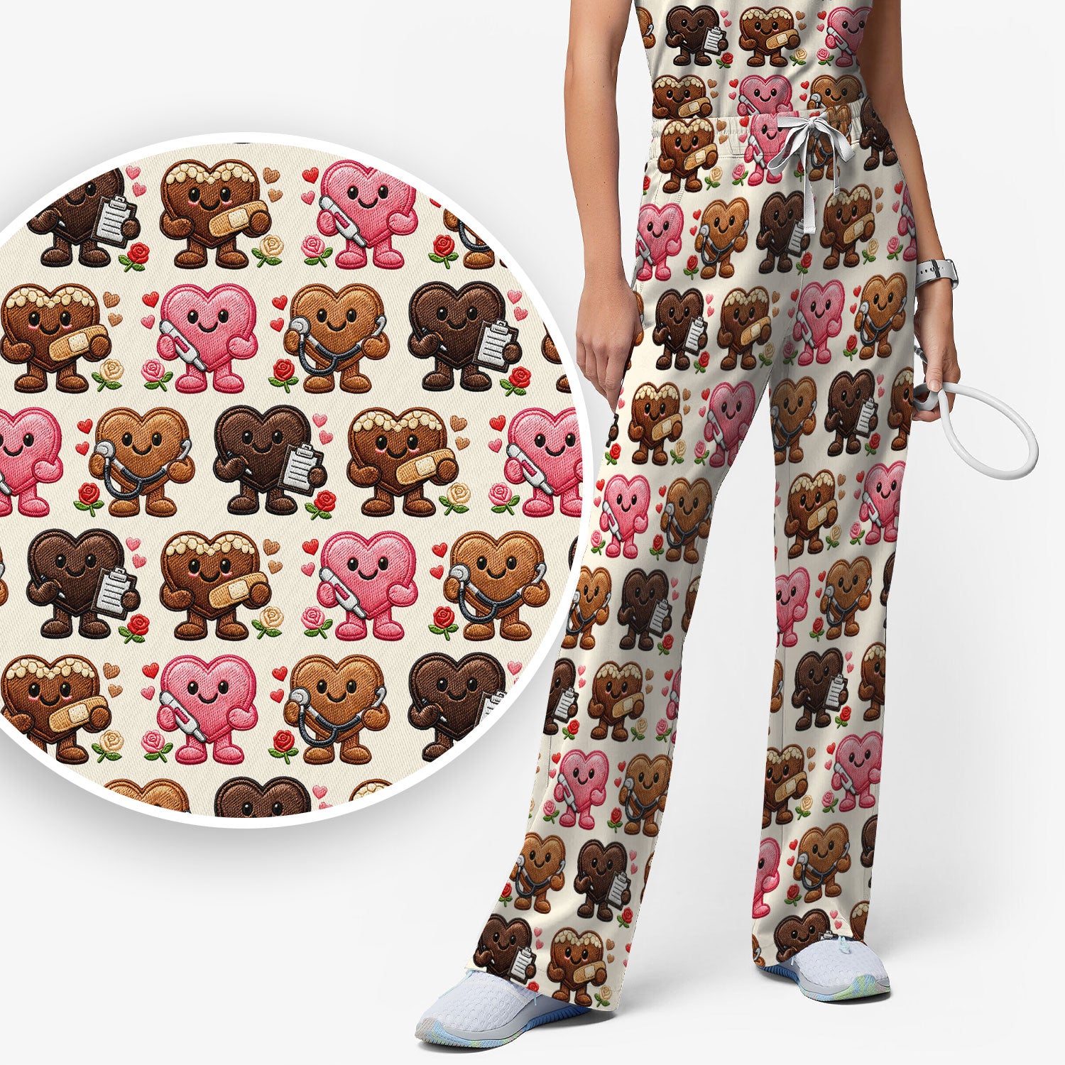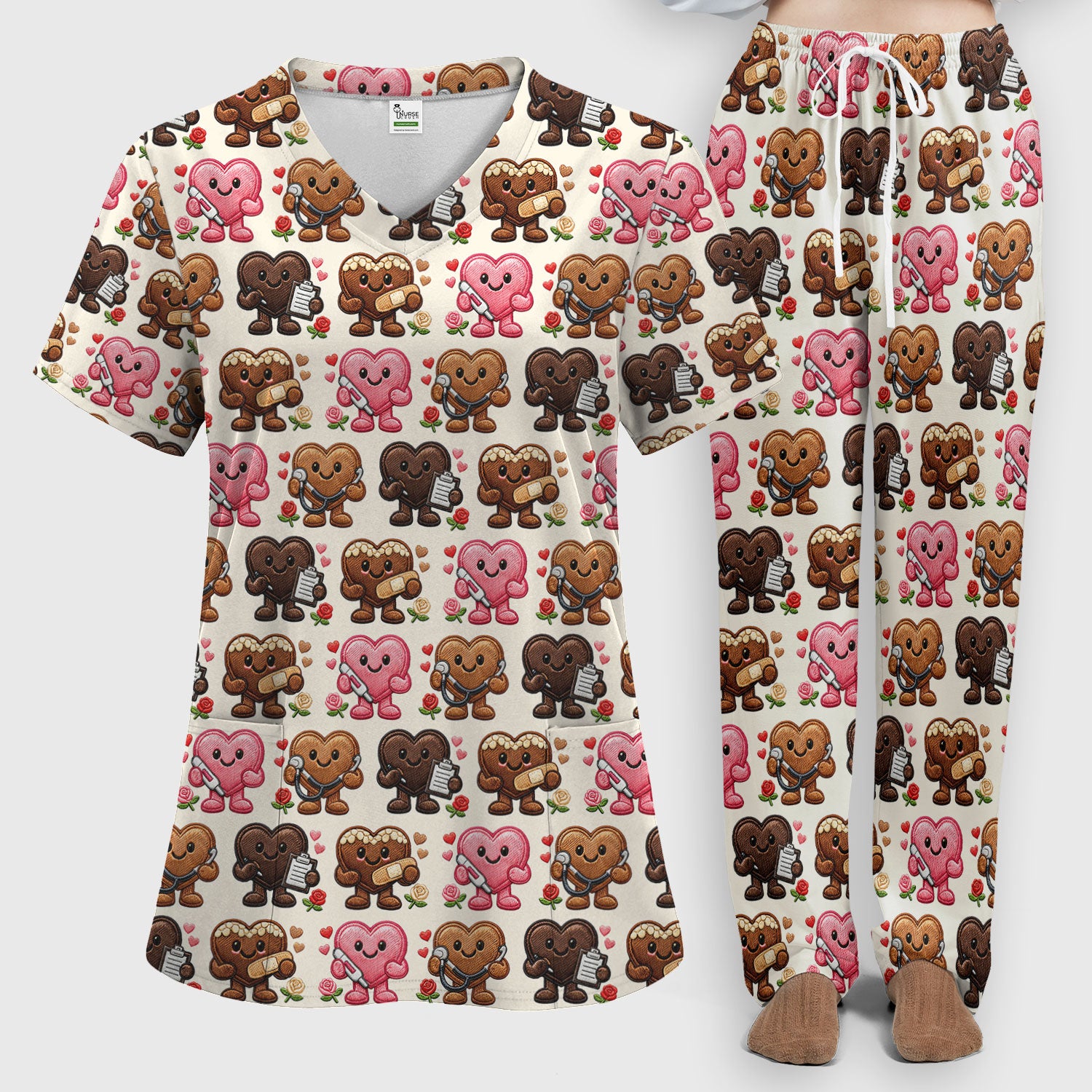 Valentine Heart Nurse Scrub Set, Cute Medical Love Pattern Shirt, Breathable Fabrics Nursing Uniform