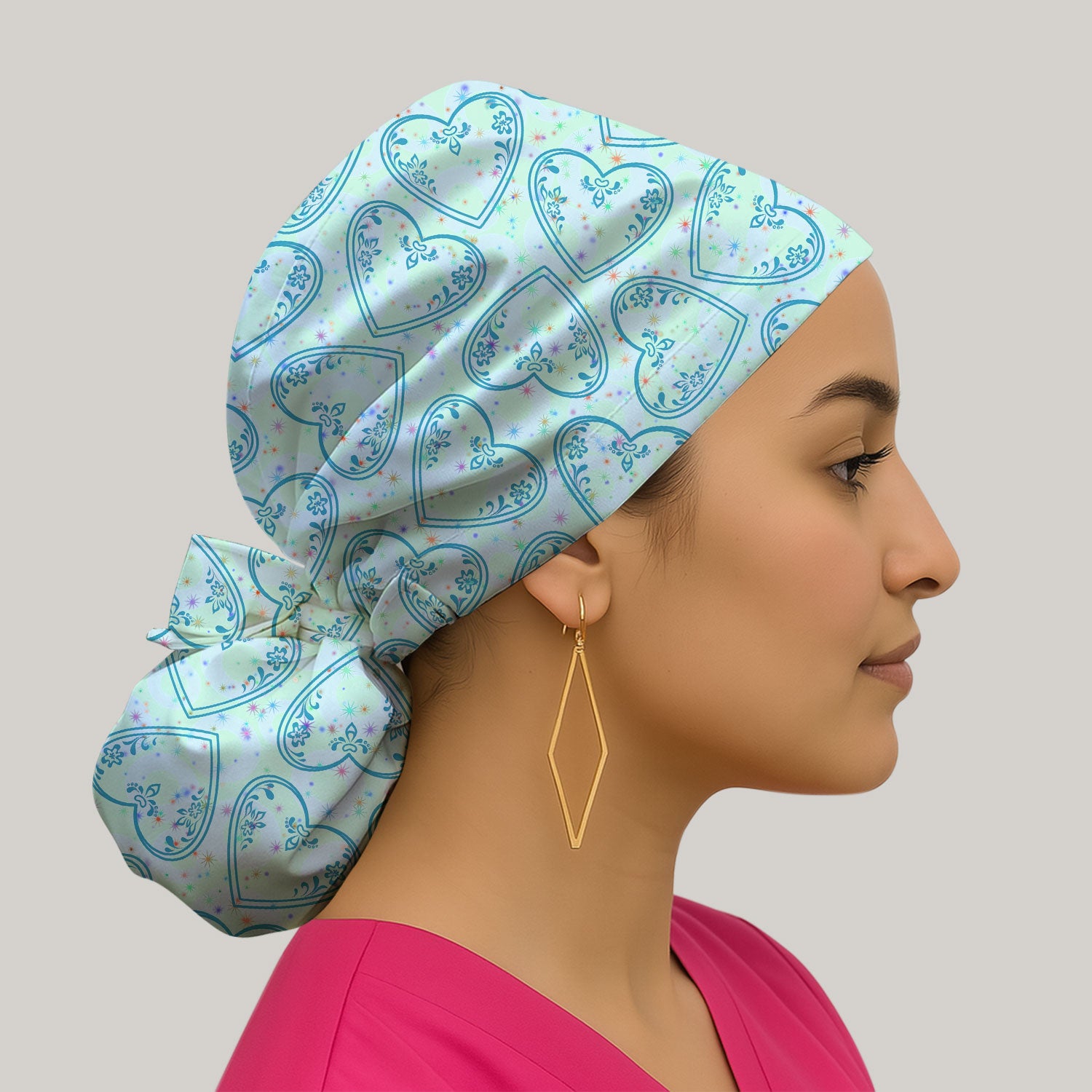 Valentine Heart Scrub Cap For Women, Hearts Pattern Nurse Hat, Comfortable Scrubs For Nursing