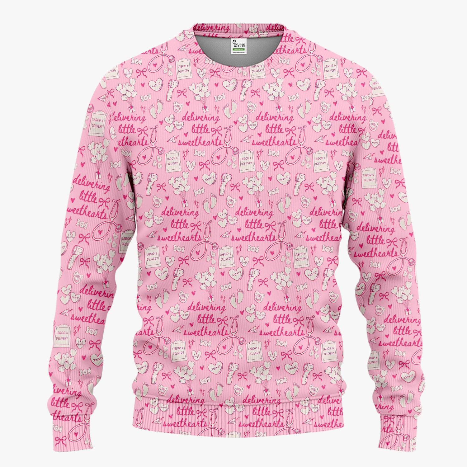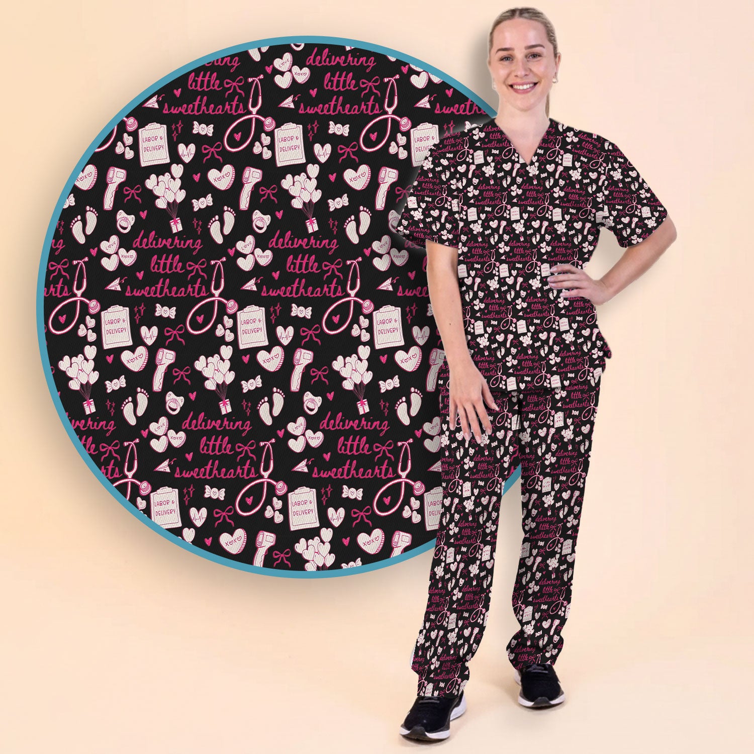 Valentine Labor And Delivery Scrub Set, XOXO Pattern Scrub Shirt, Breathable Fabrics Nursing Uniform For Women