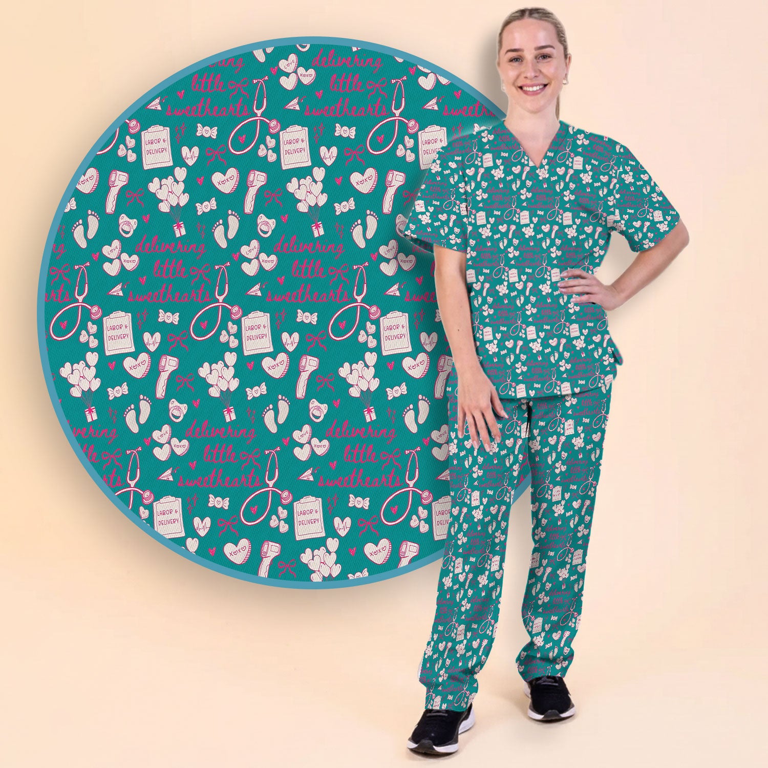 - Scrub Top Only – Classic V-neck scrub top with a roomy, easy-to-move fit.