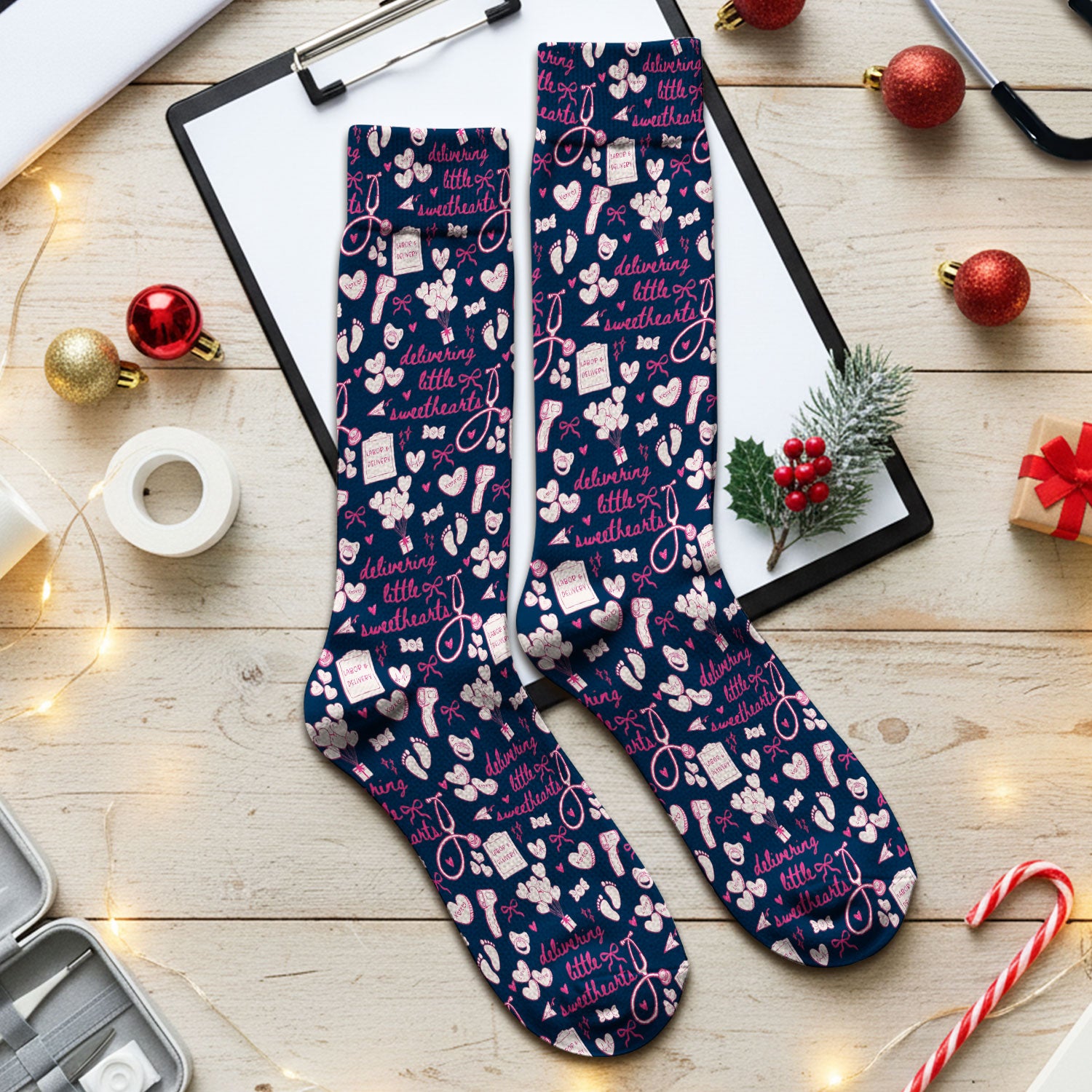 Built with a reinforced interior lining and anti-pilling knit structure, these Christmas nurse socks maintain their shape wash after wash. They are easy to clean, reusable, and ideal as a holiday nurse gift, nurse appreciation gift, or thoughtful stocking stuffer for any medical professional.