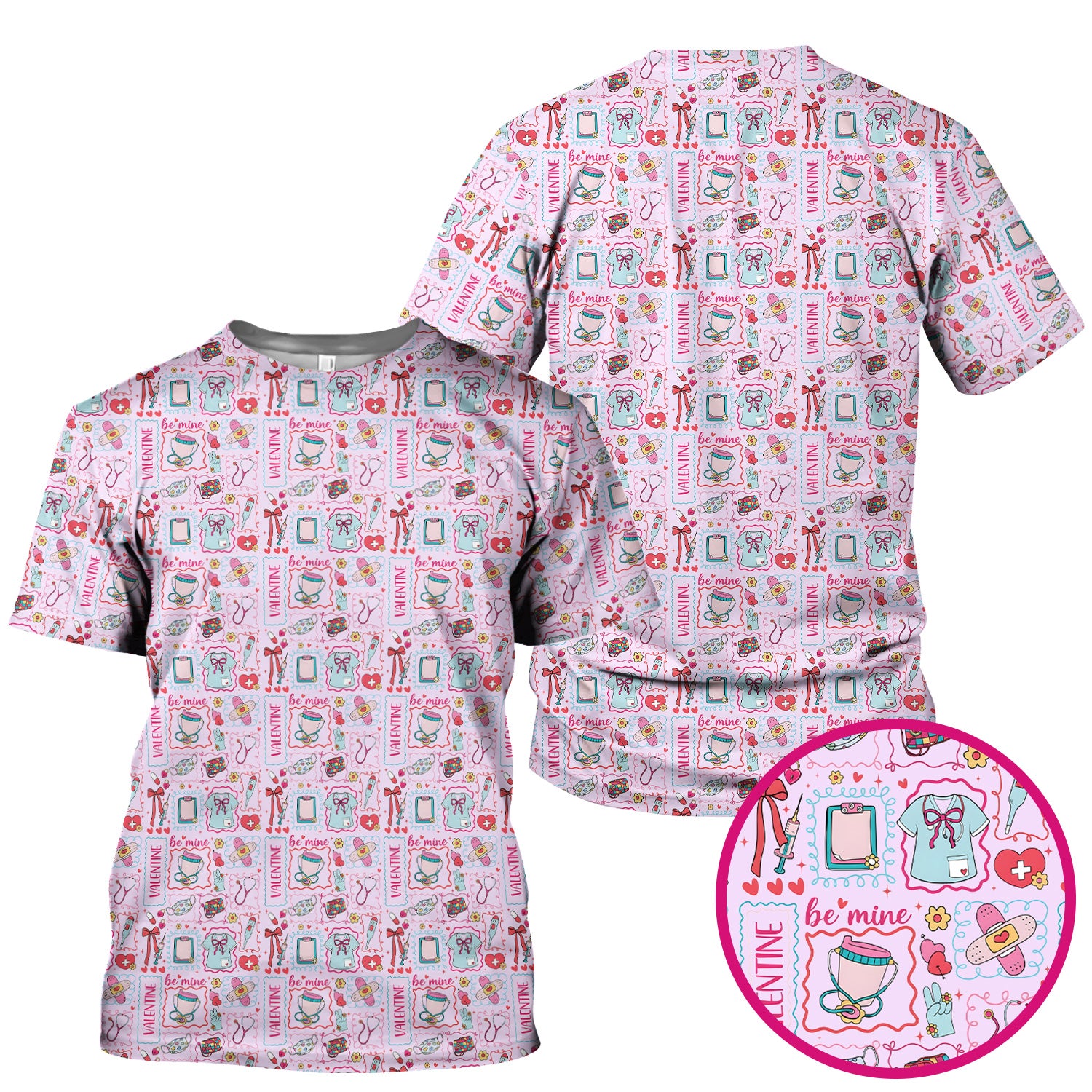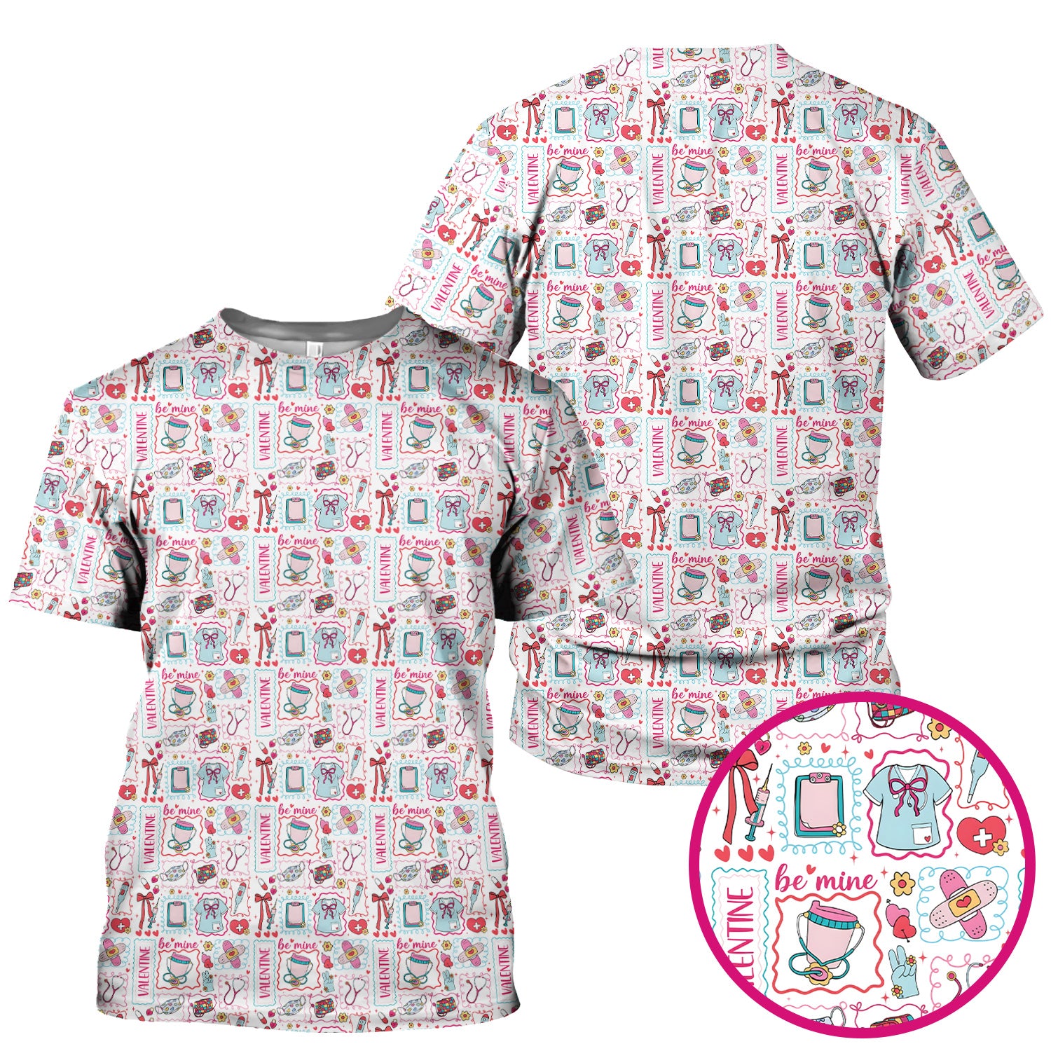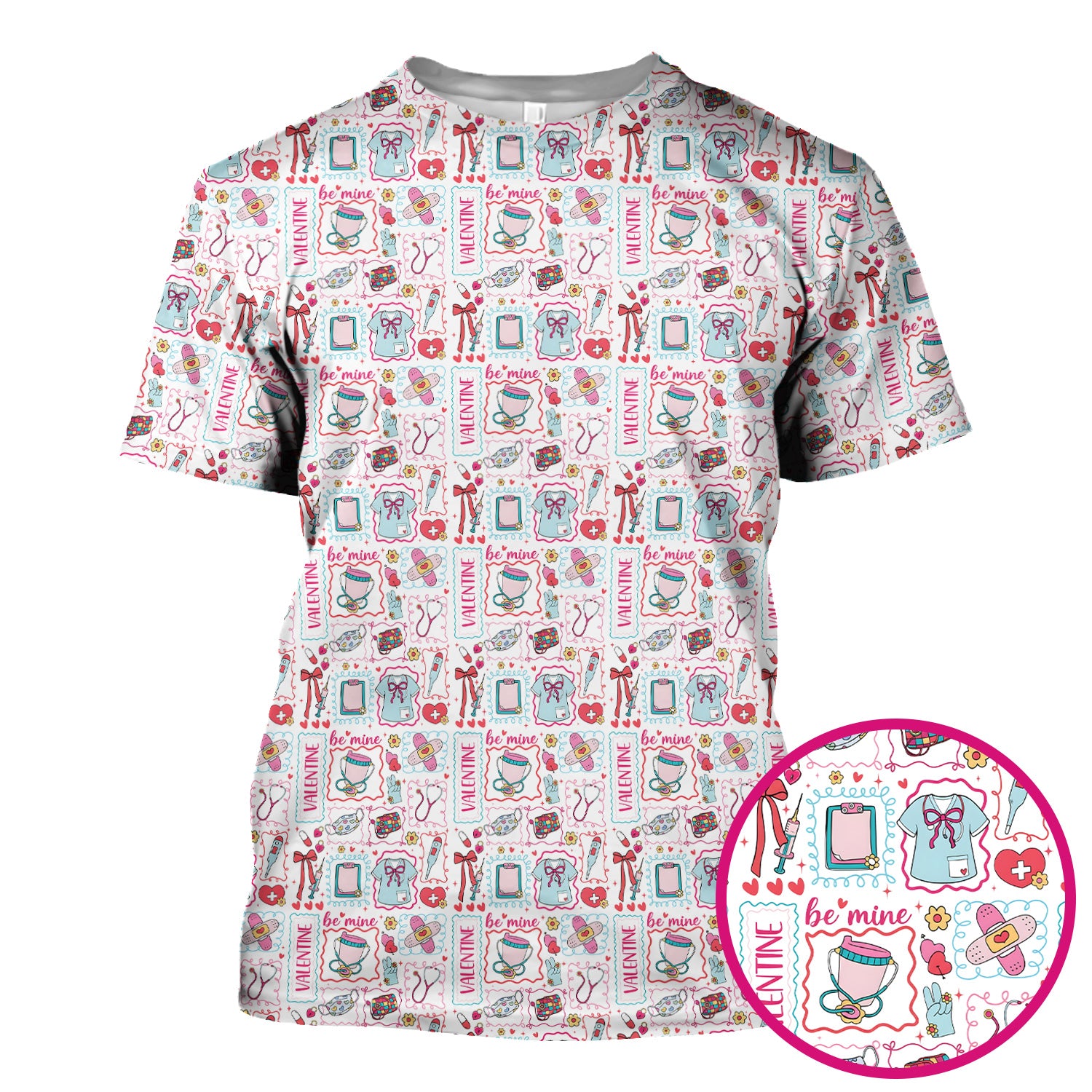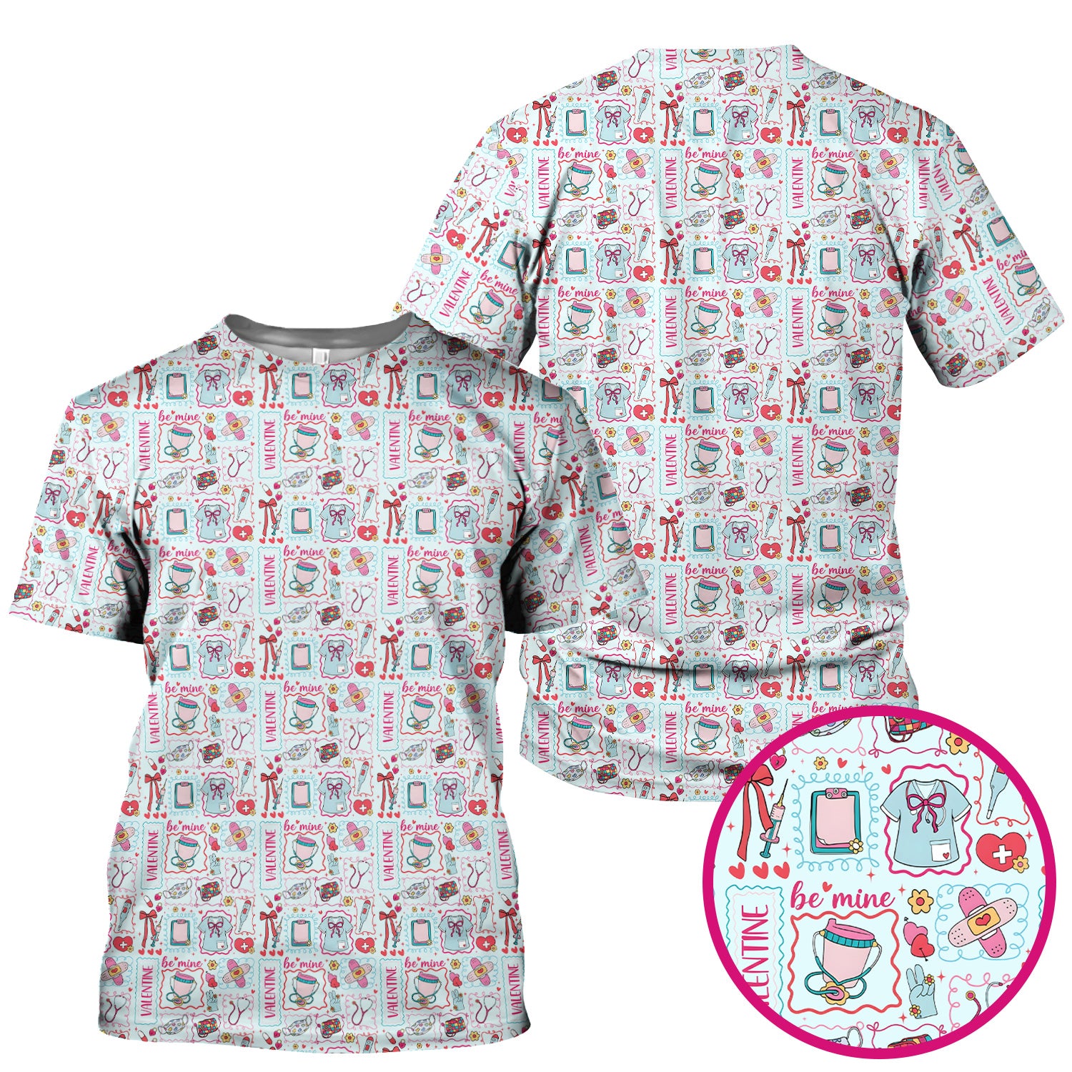 Valentine Medical Hearts Bandages Syringes Scrub Top, Comfortable Scrubs for Nurses
