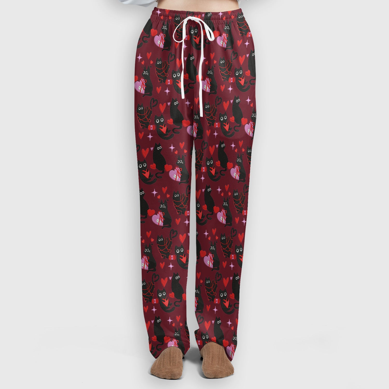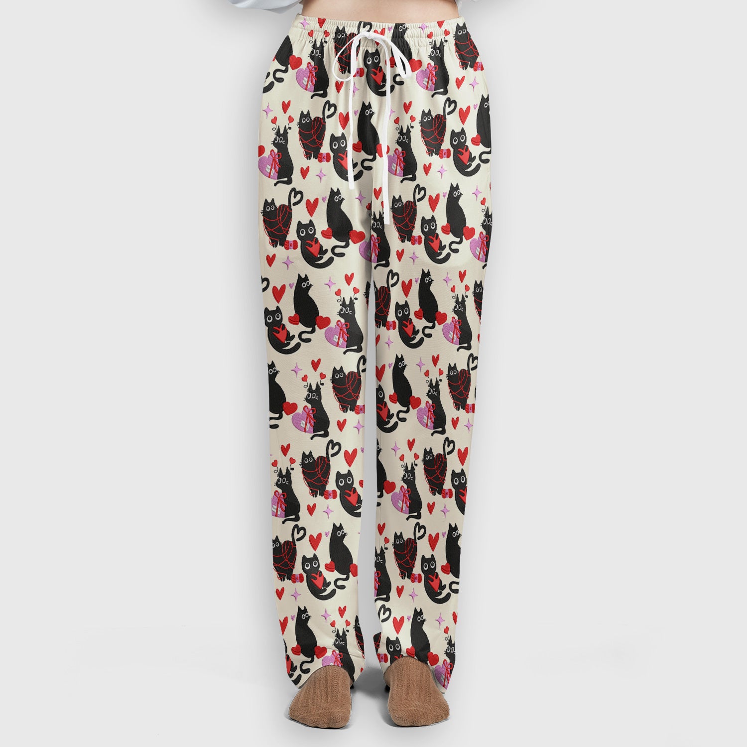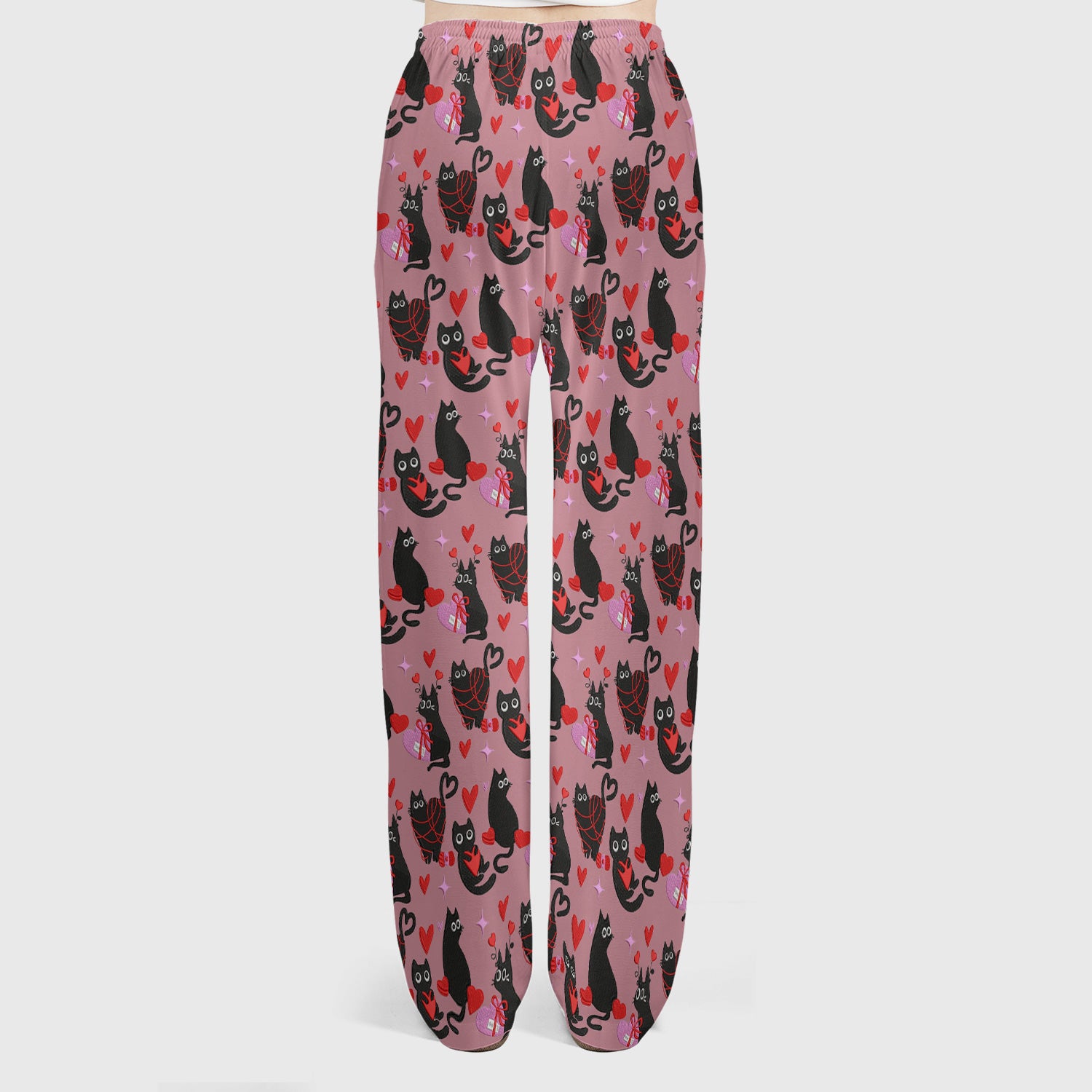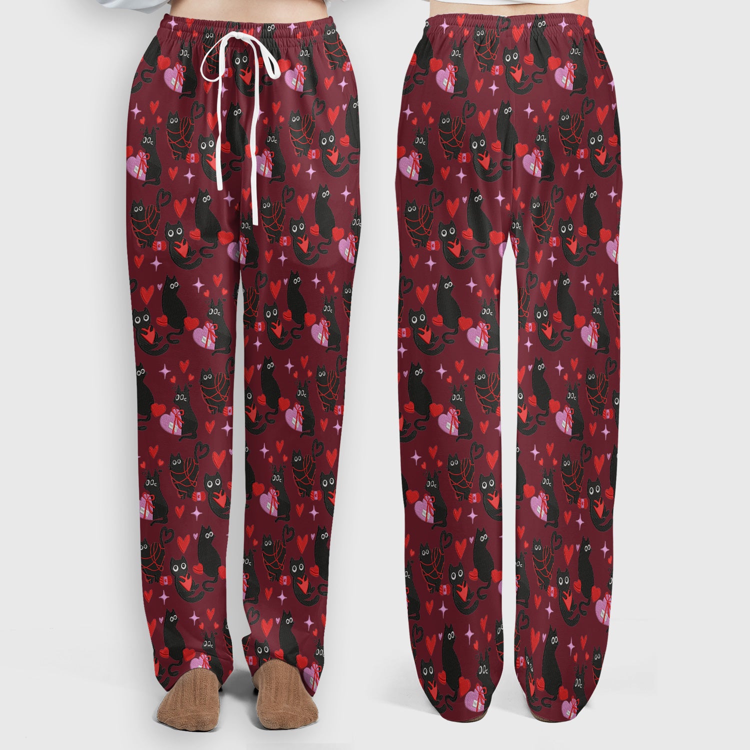 Valentine’s Day Scrub Set, Cute Black Cat With Heart Pattern Nurse Shirt, Breathable Fabrics Nursing Uniform