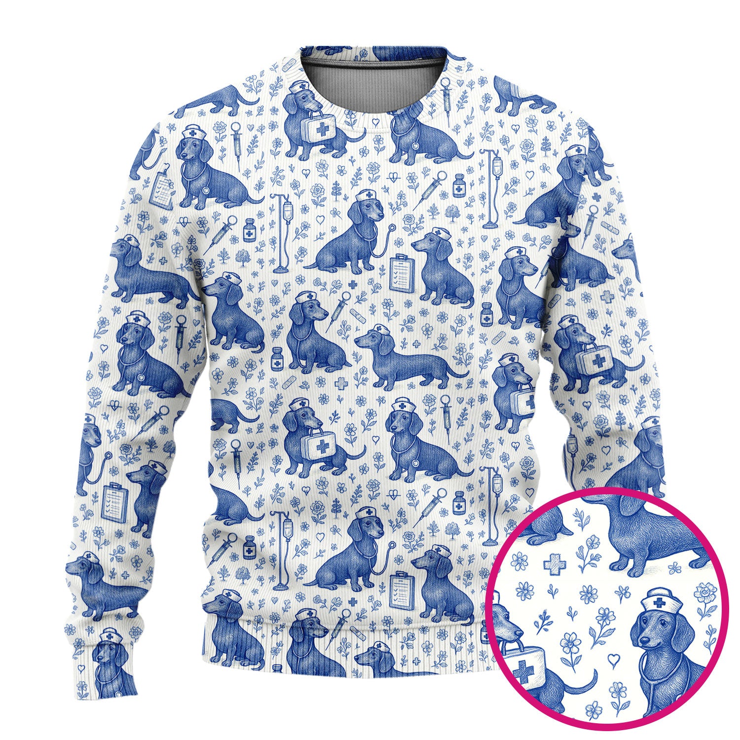 Vintage Dachshund Scrub Set - Artistic Dog Pattern Medical Scrubs - Cute Pet Lover Nurse Gift for Women