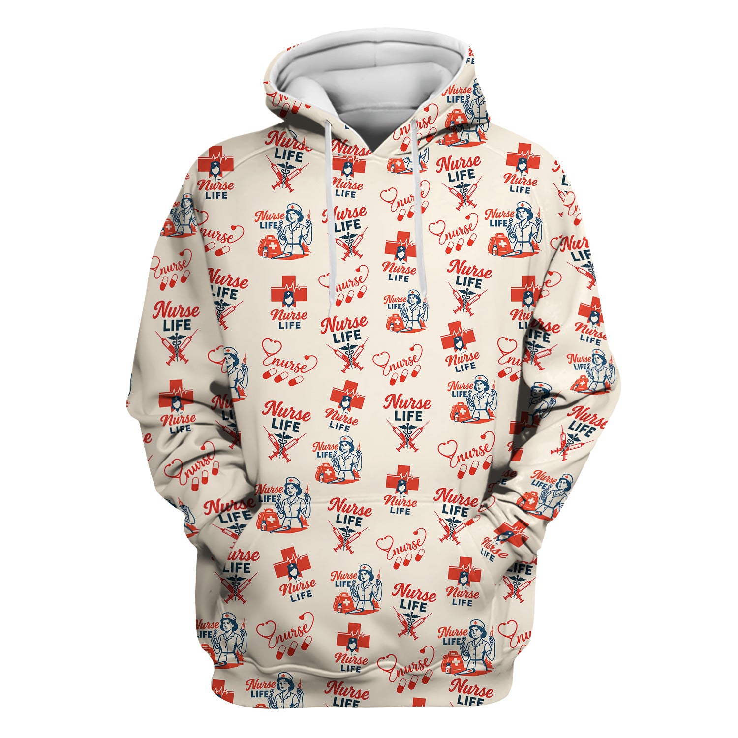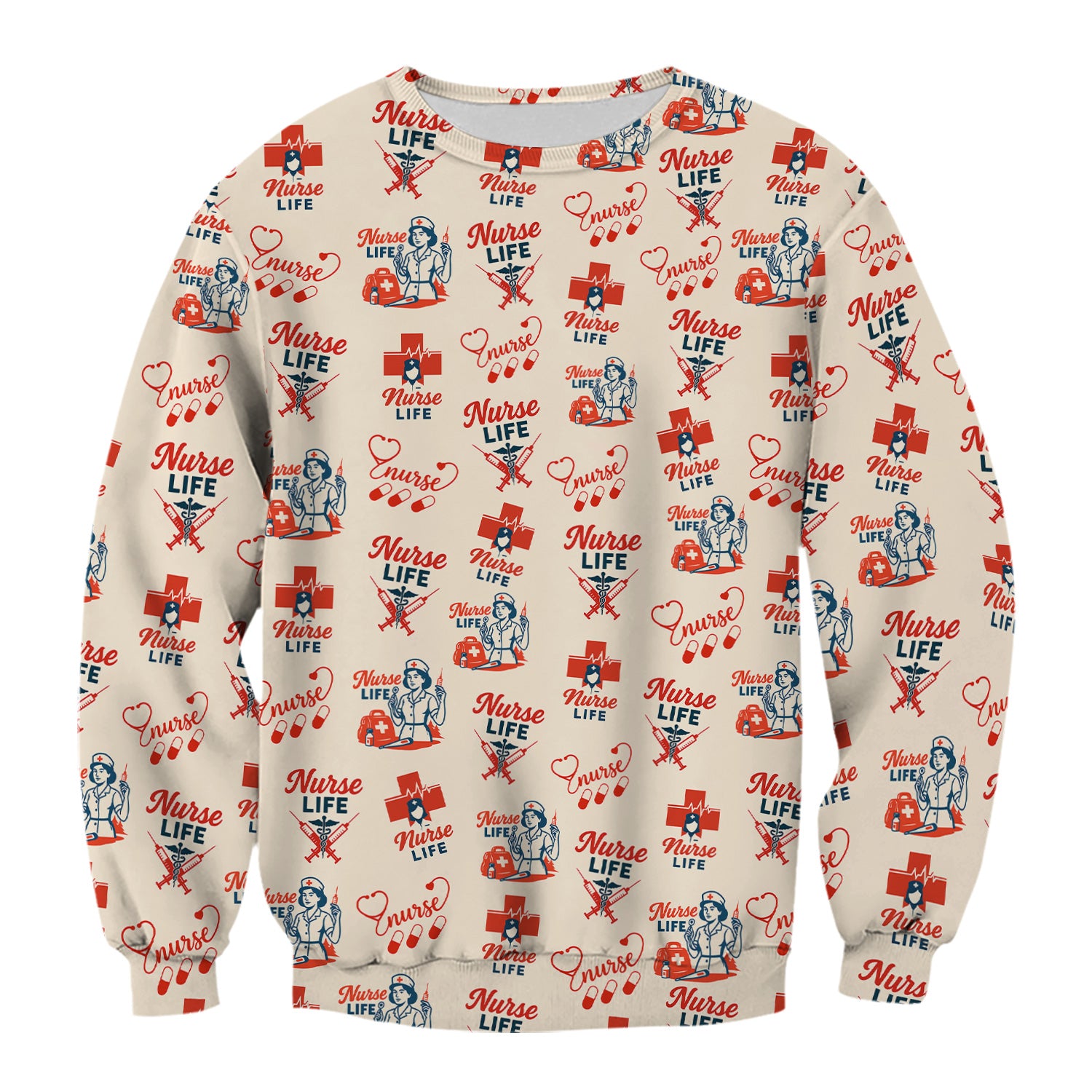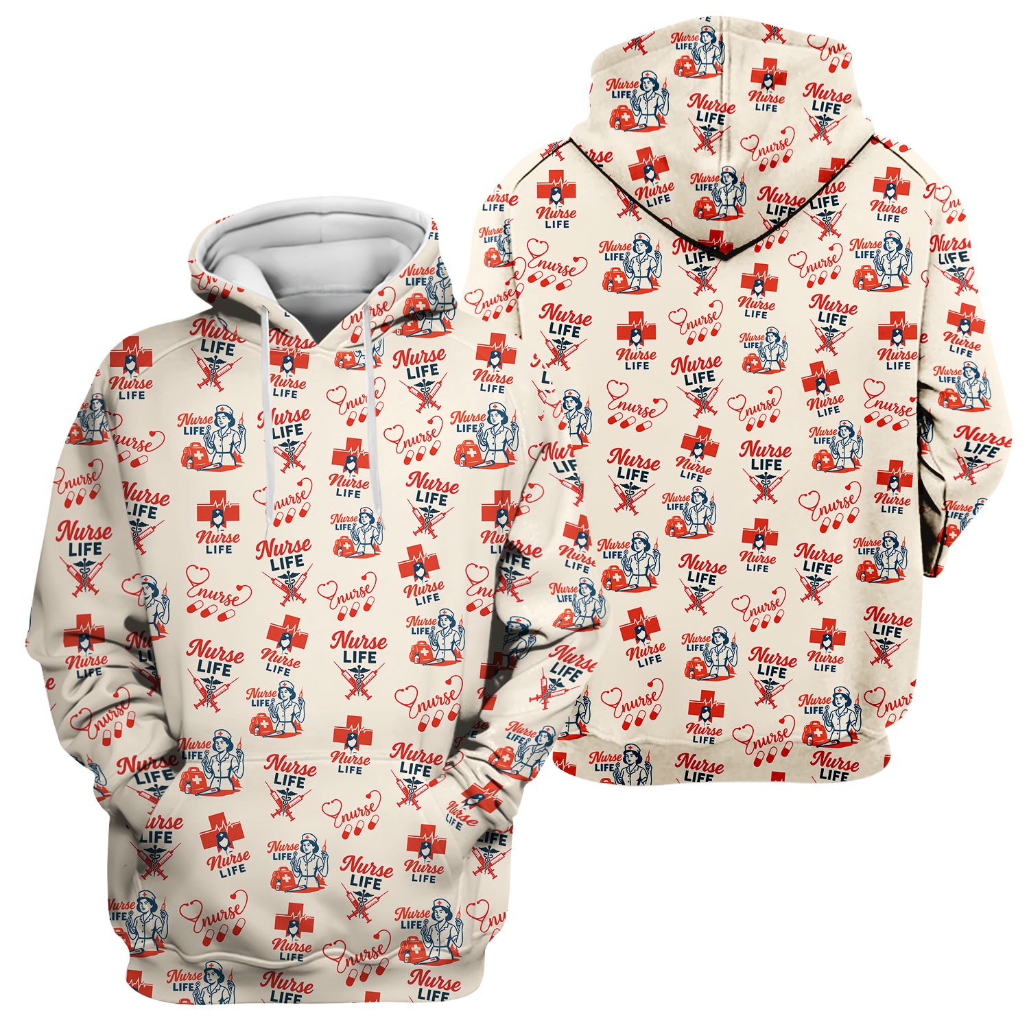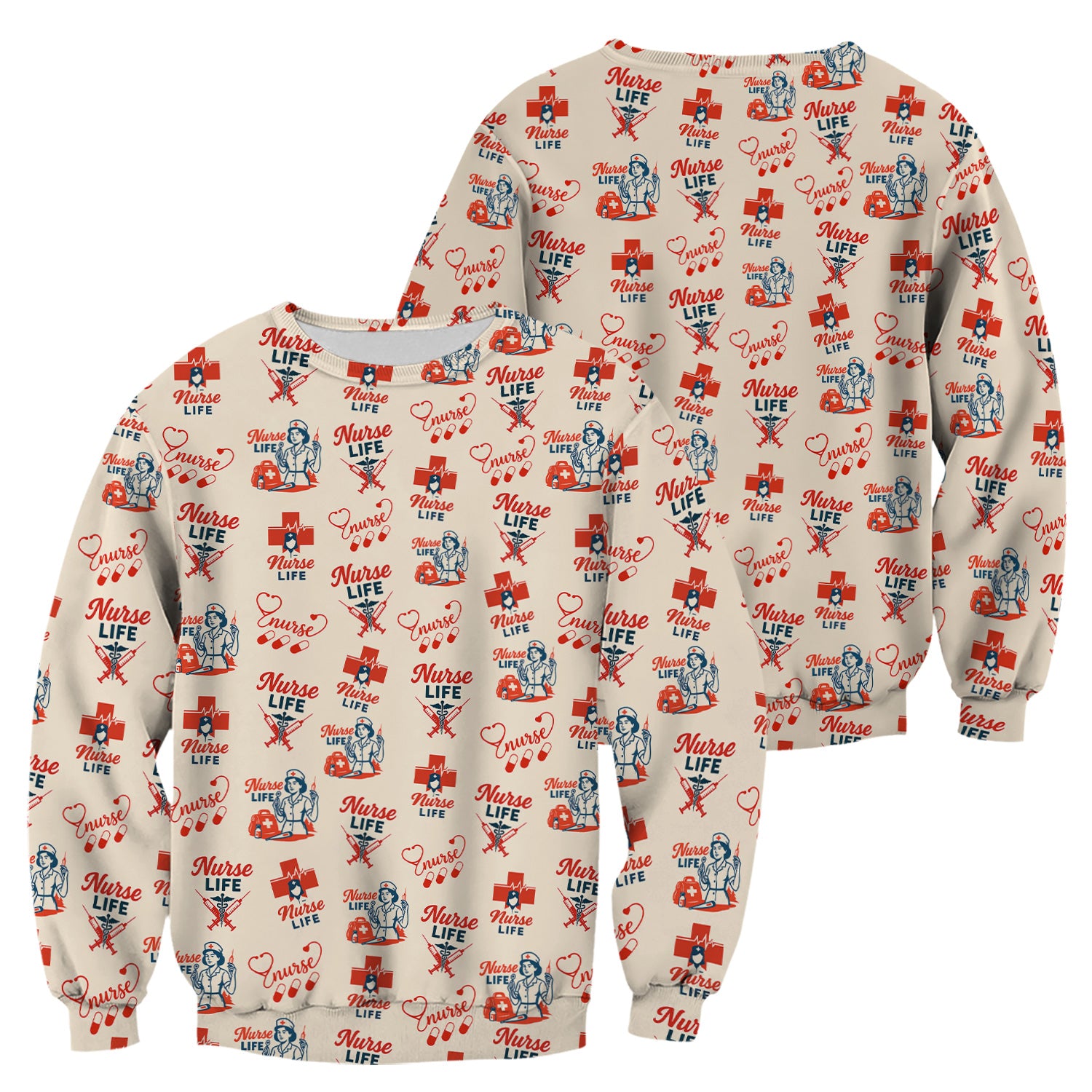 Vintage Nurse Life T-Shirt - All-Over Print Medical Icons Graphic Tee - Medical Gift for RN, LPN, CNA