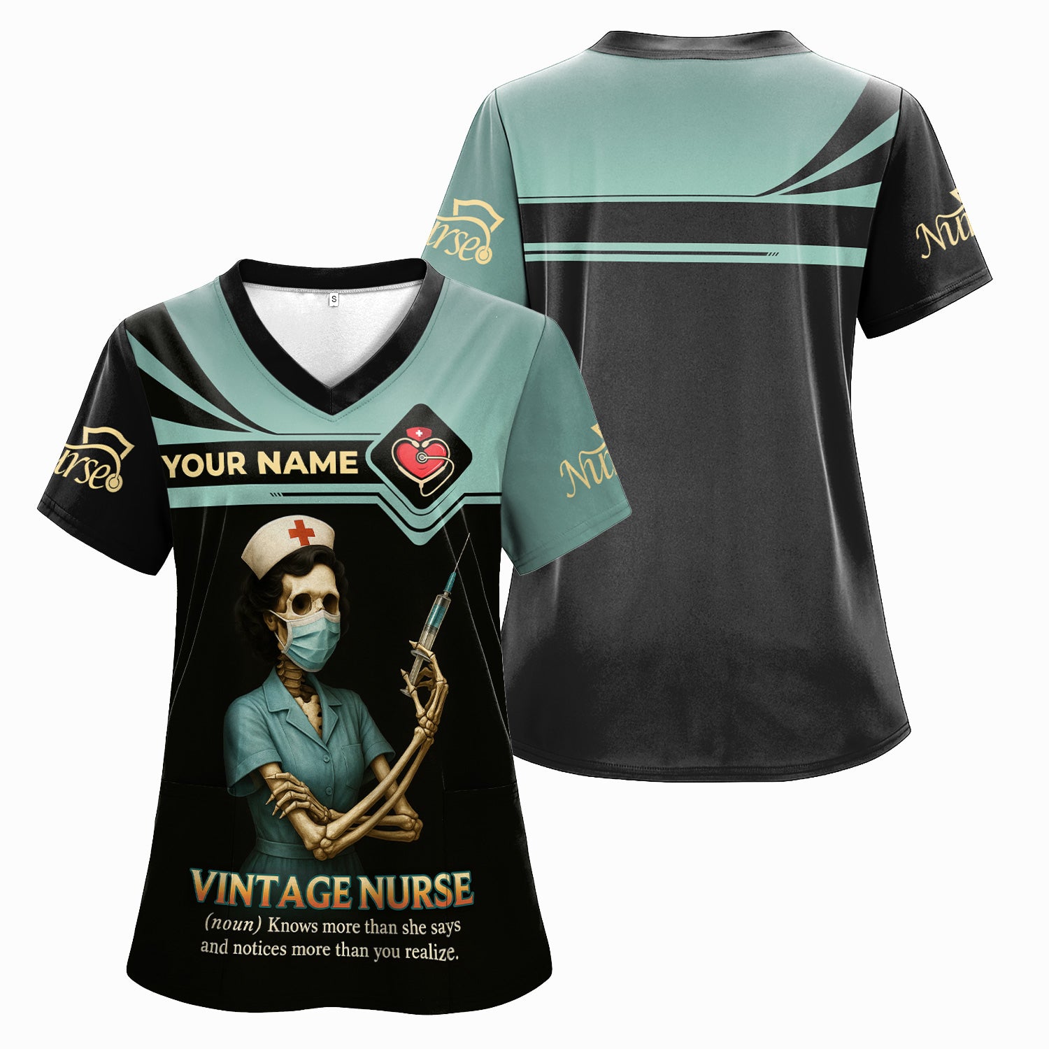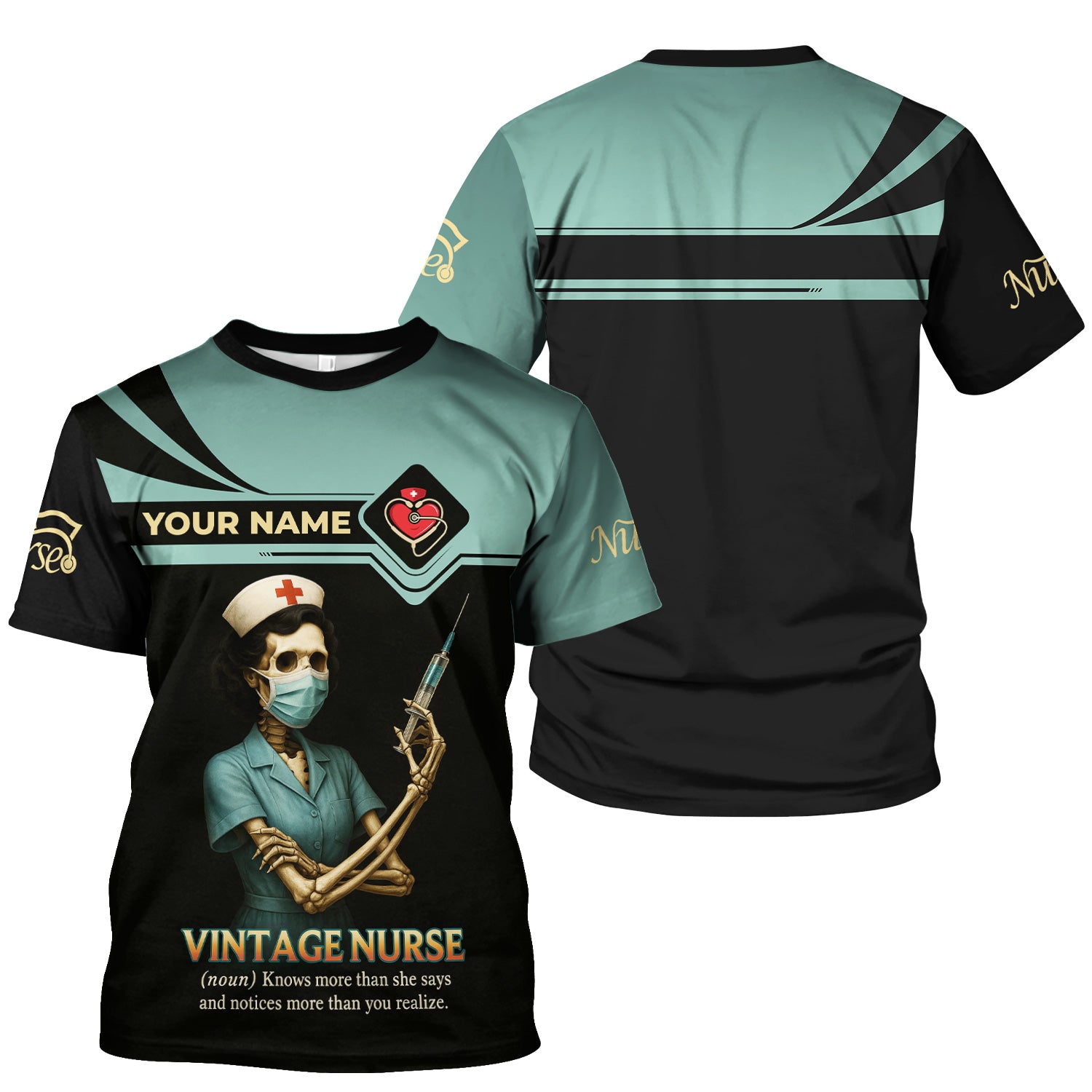 Vintage Nurse Shirt - Personalized Funny Skeleton Nurse Tee with Name - Great Gift for Nurses