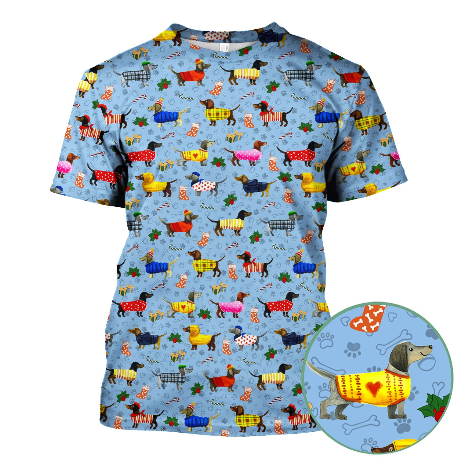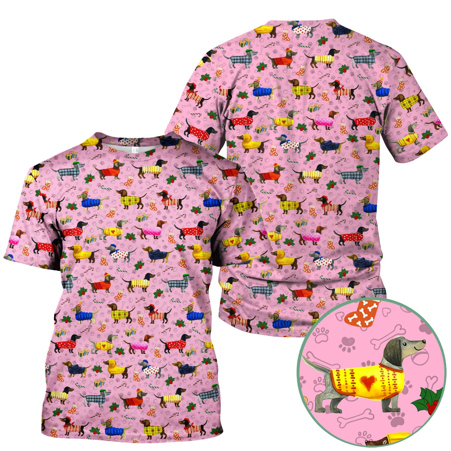 Wiener Dog Med Scrubs - Comfortable Scrub Tops for Women - Doxies with Paw Prints Nurse Uniform - Christmas Gift for LPN RN CNA