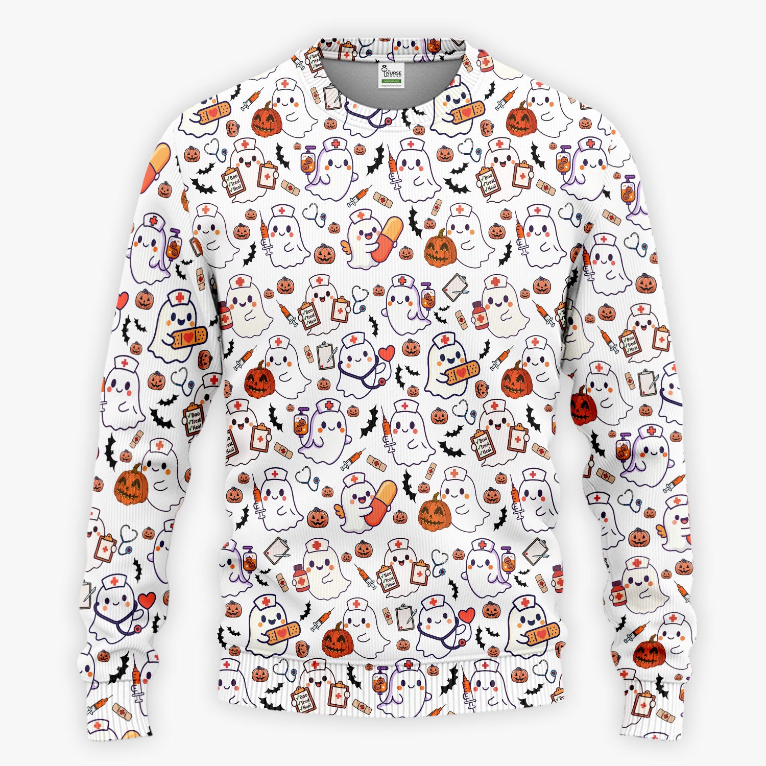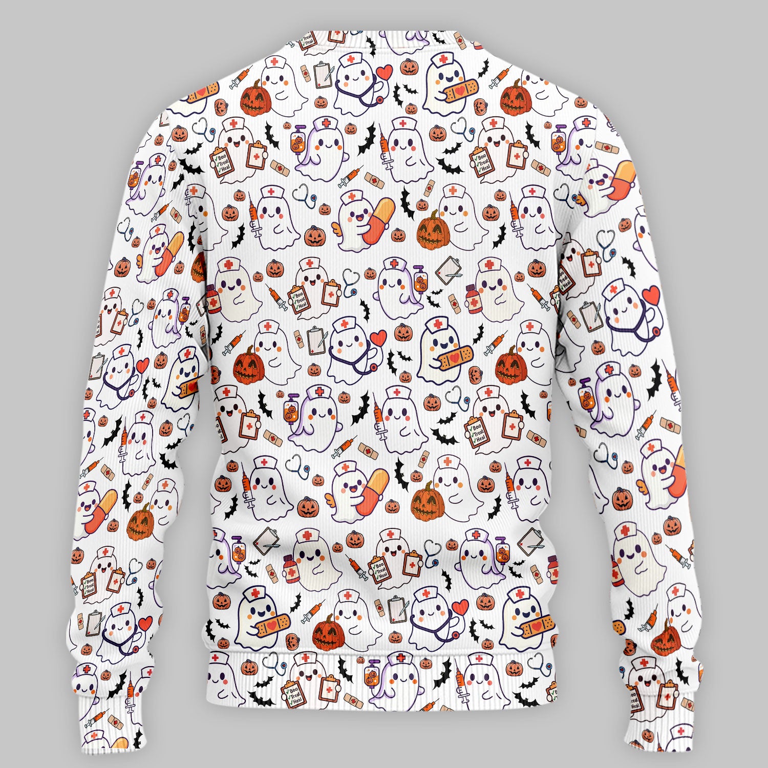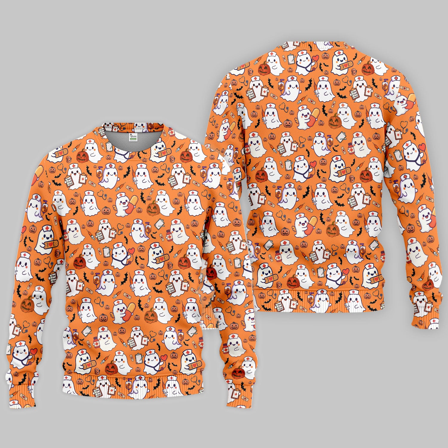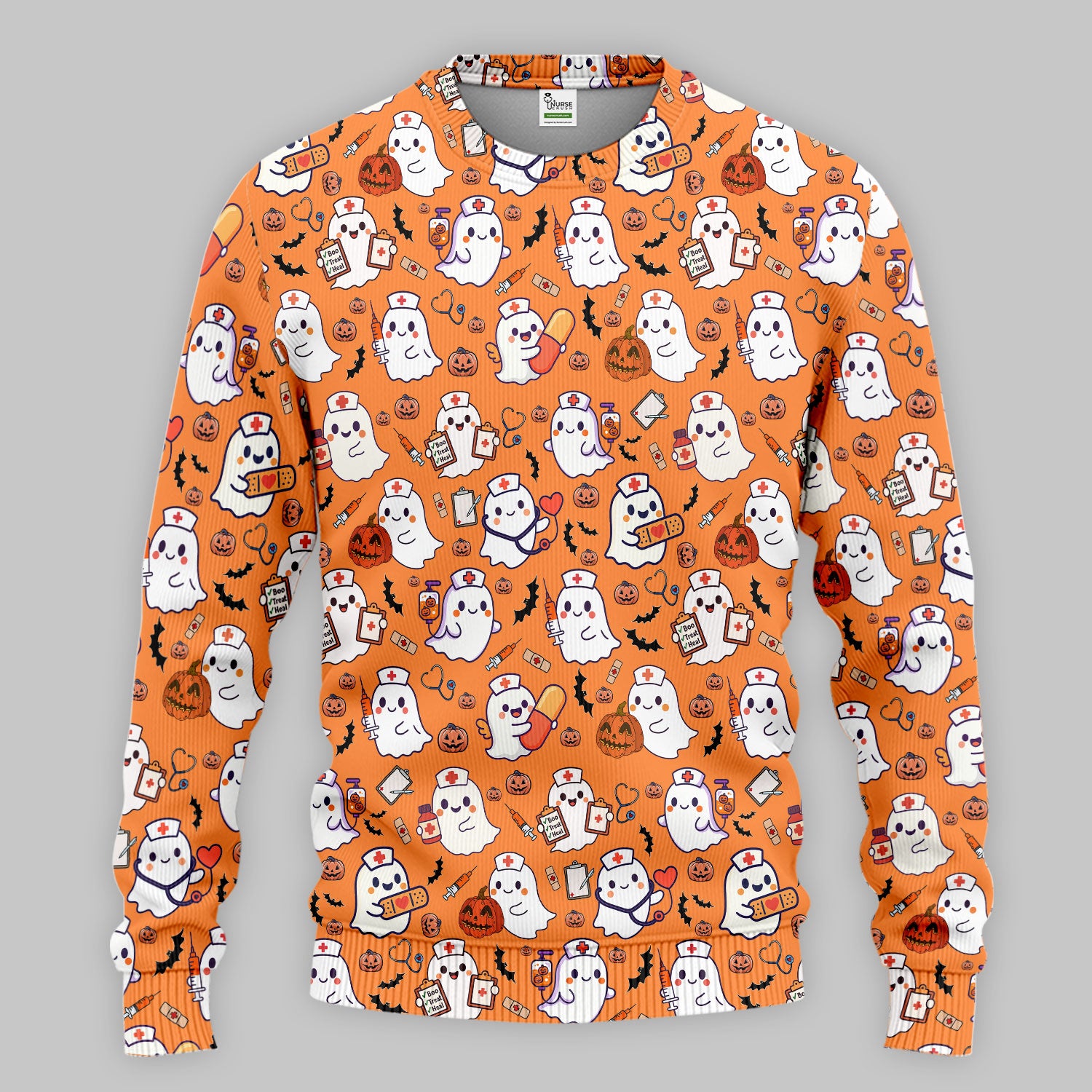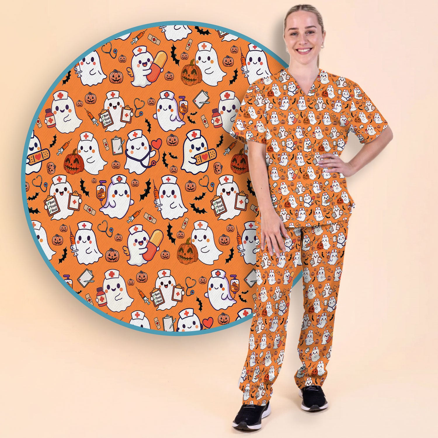 Women's Scrub Sets Halloween Gift - Comfortable Scrubs for Nurses - Pumpkin Ghost Scrub Pants and V Neck Top